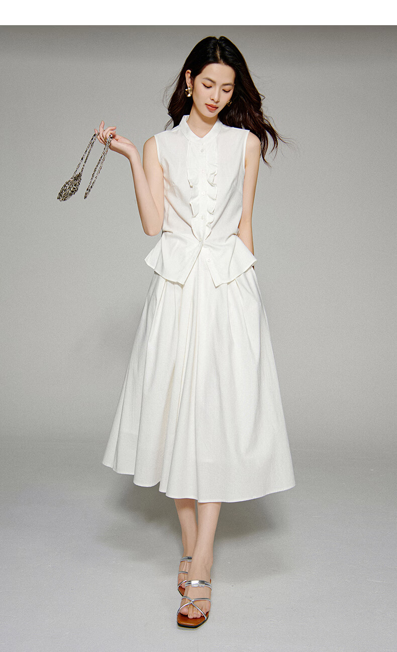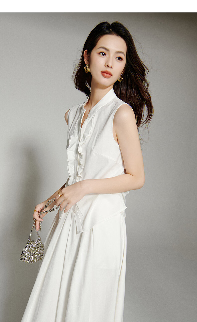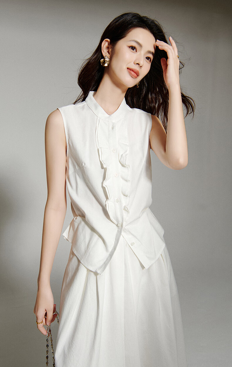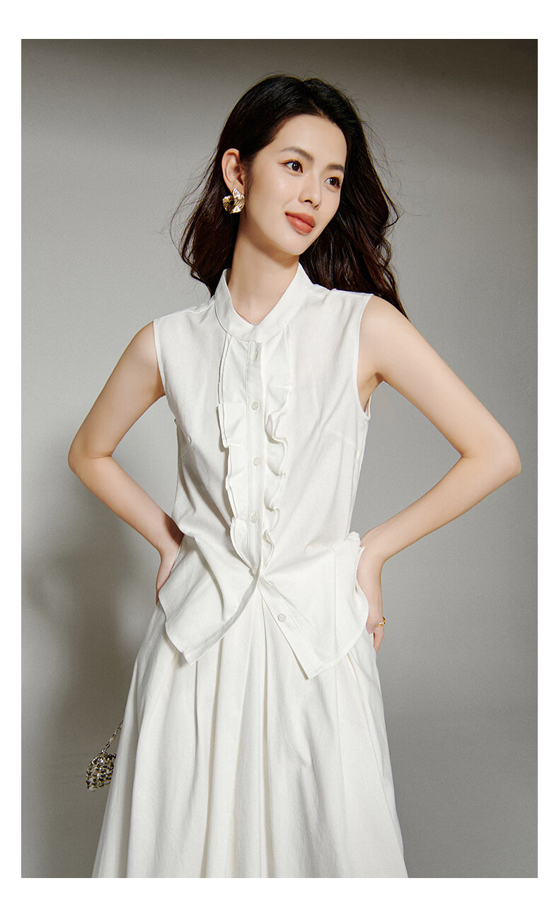晚白【新品】2026年春款经典简洁立领棉麻上衣亲肤透气舒适无袖衬衫女 白色 S