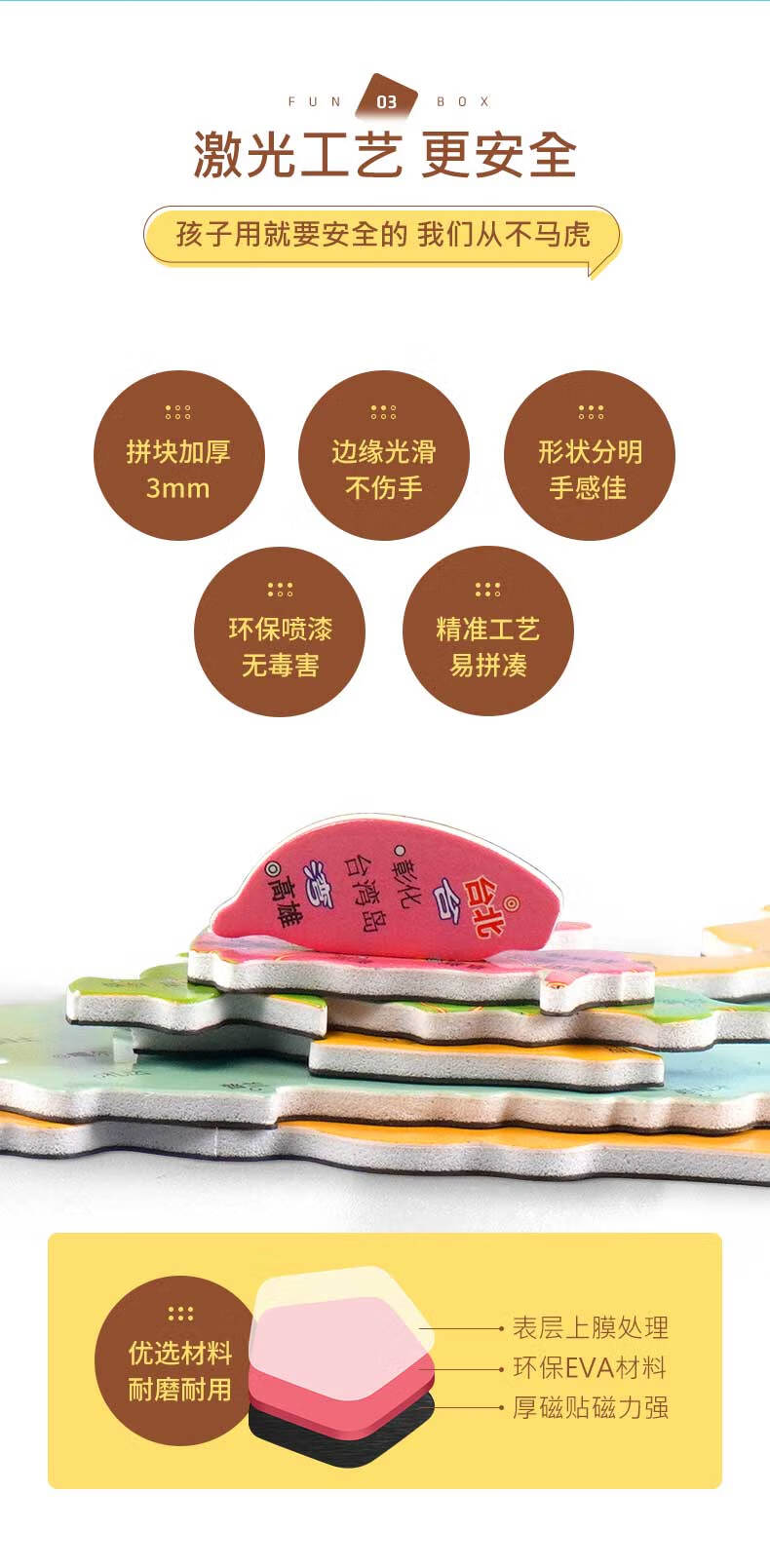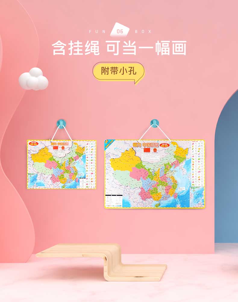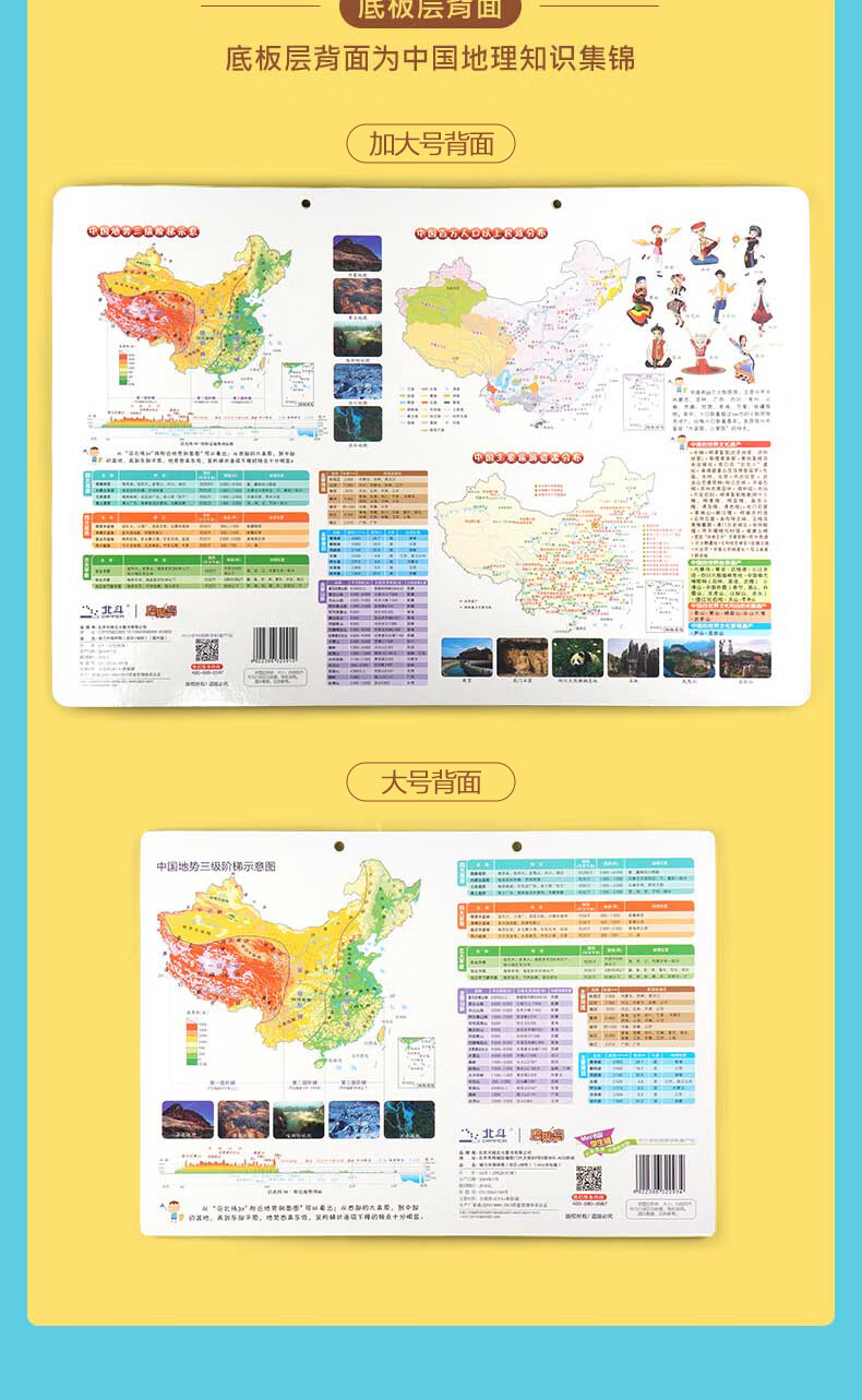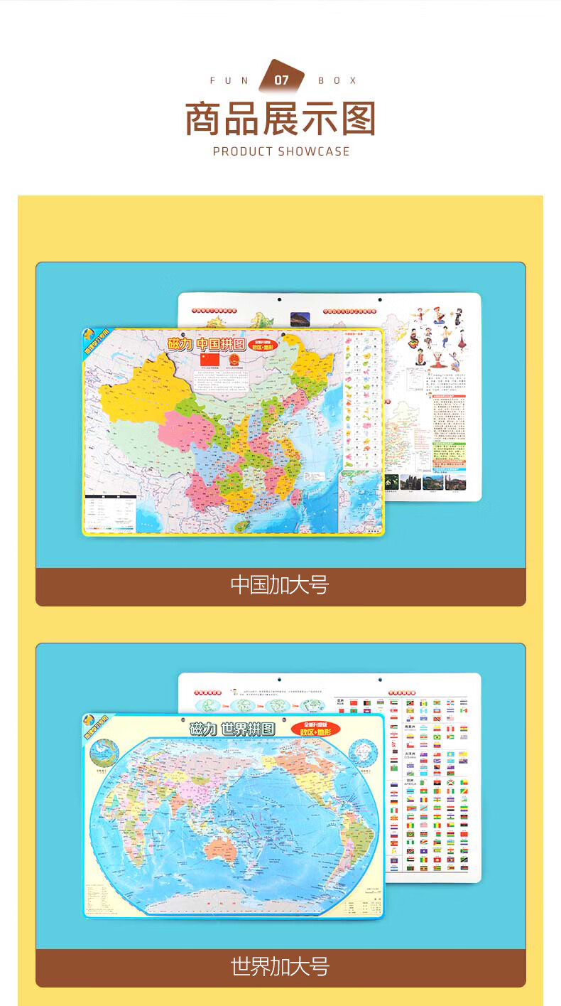 启妙岛北斗大号磁力中国世界地图拼图磁套装中学生政区地形地理42*29cm