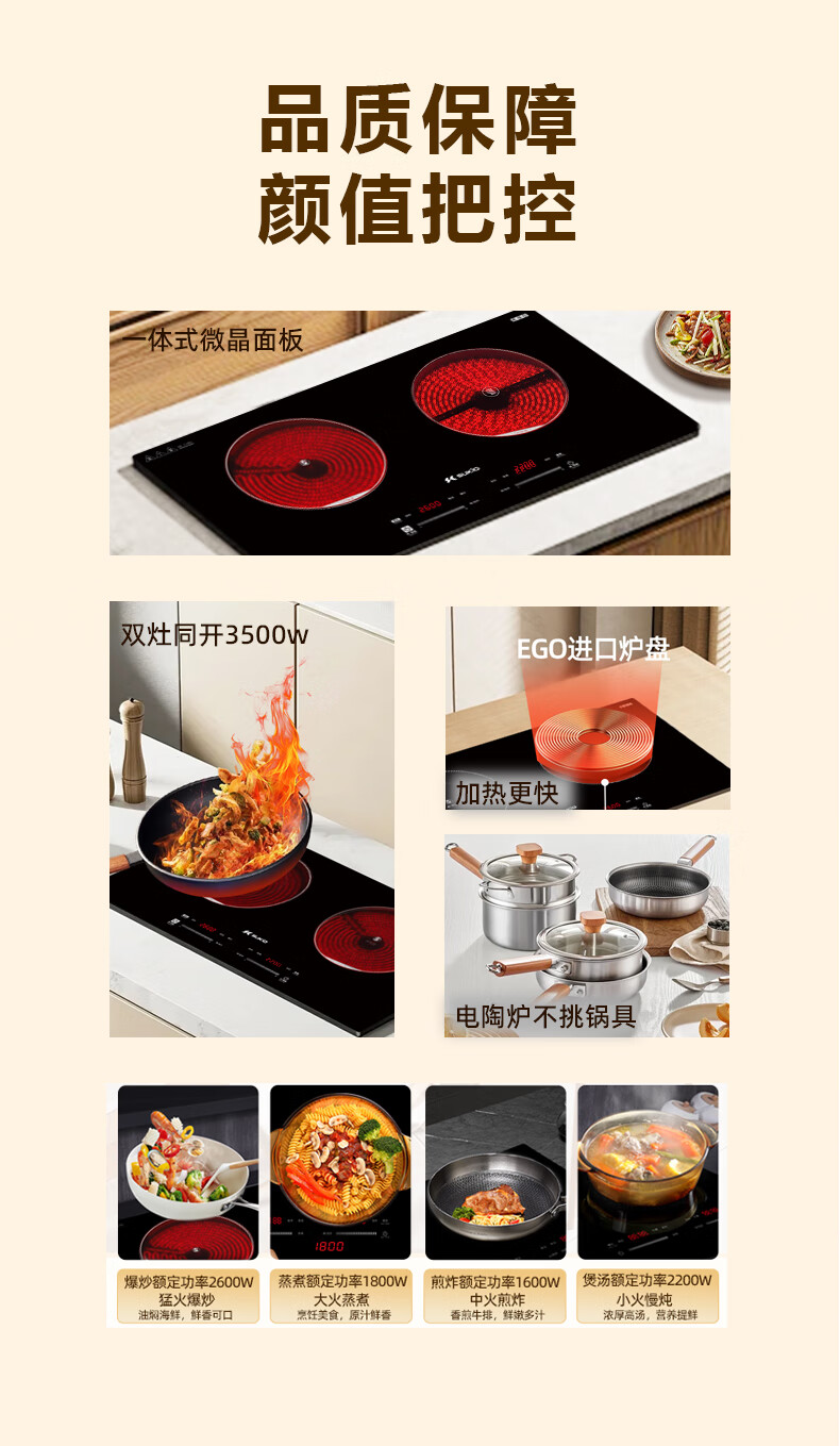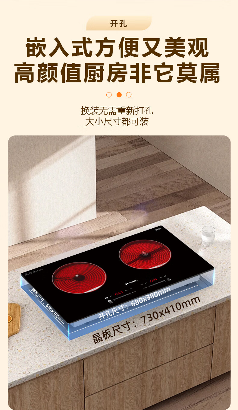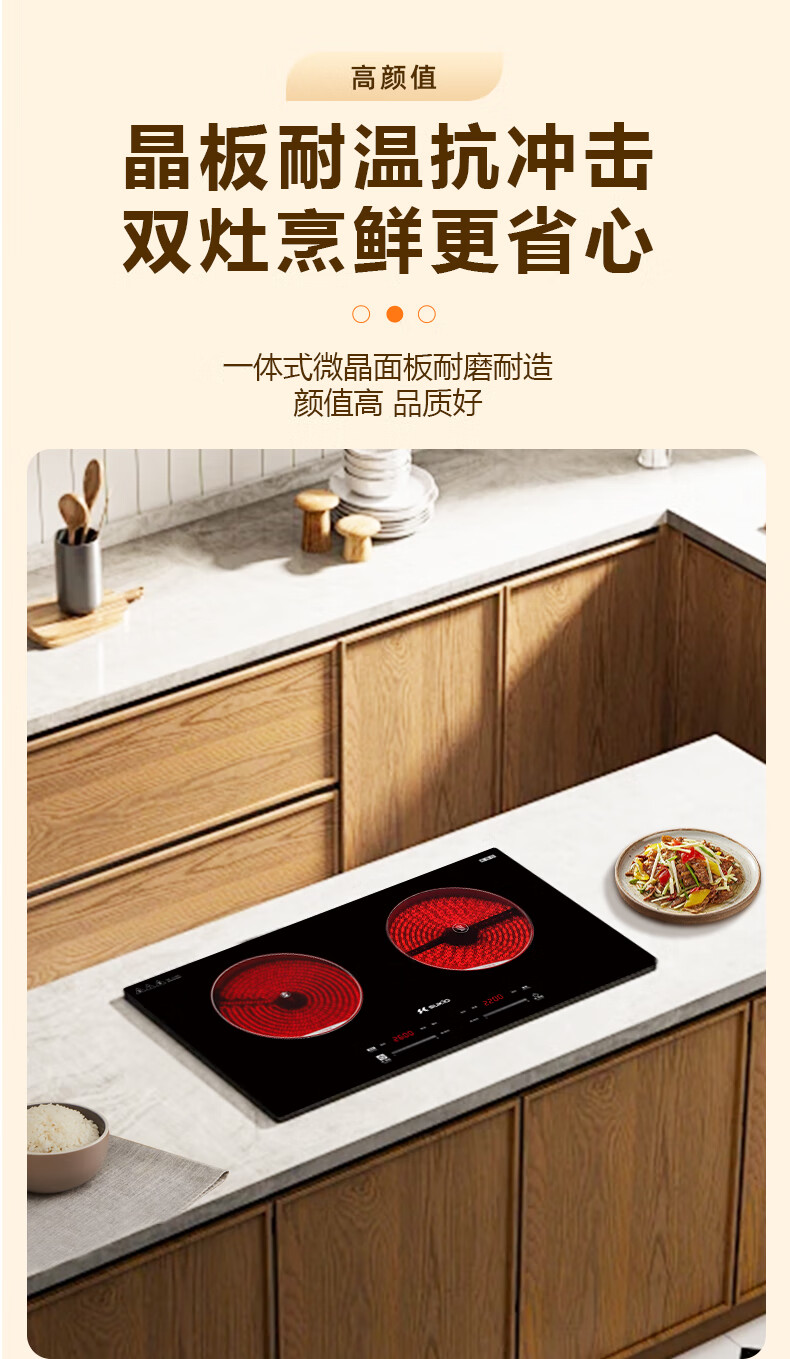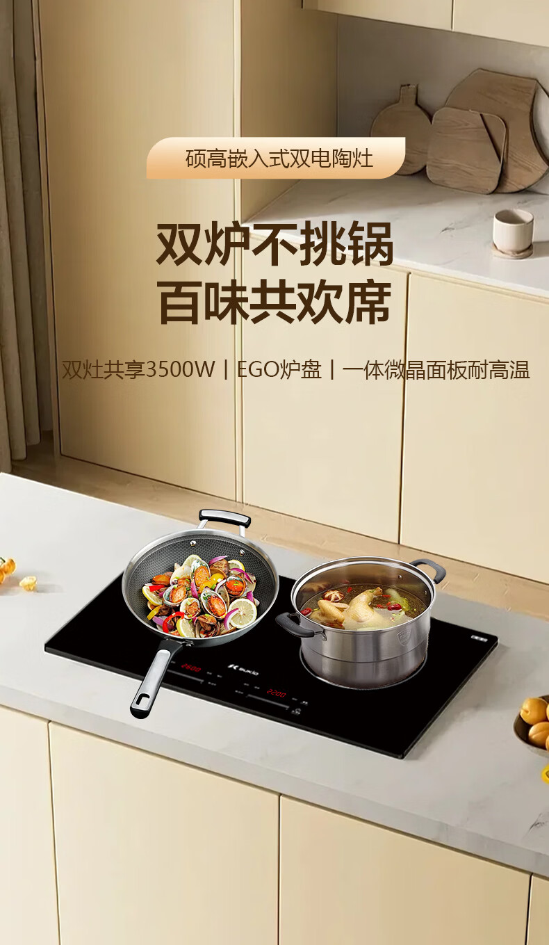 硕高电磁炉电陶炉 家用嵌入式双灶同开 3500w大功率 电炉炒菜煎炸不挑锅具 双灶电陶炉SK-35HLB03F18