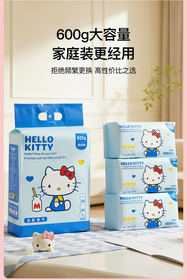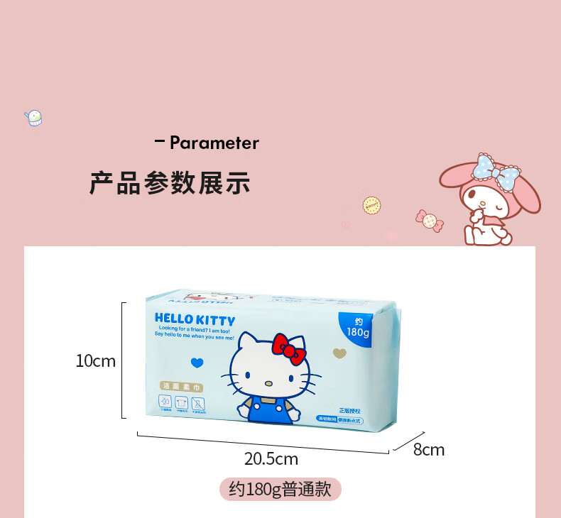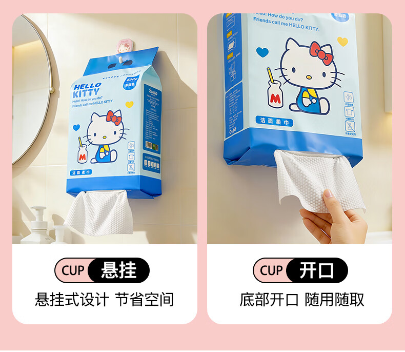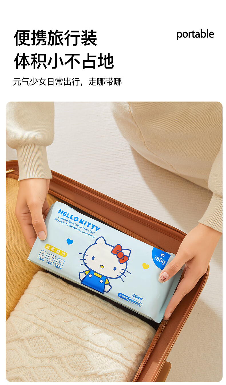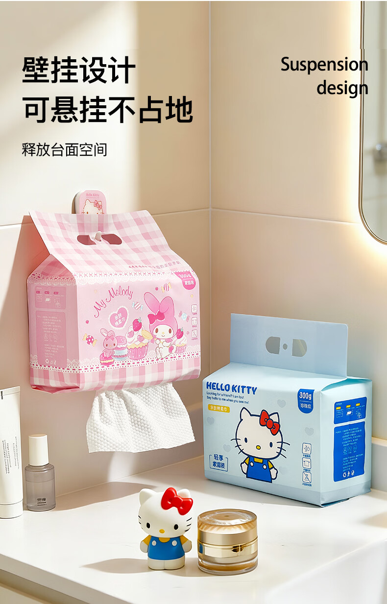 MARSICA三丽鸥洗脸巾一次性纯棉壁挂式抽取式加大加厚悬挂式擦脸巾棉柔巾 经典款【便携旅行】5包约300抽