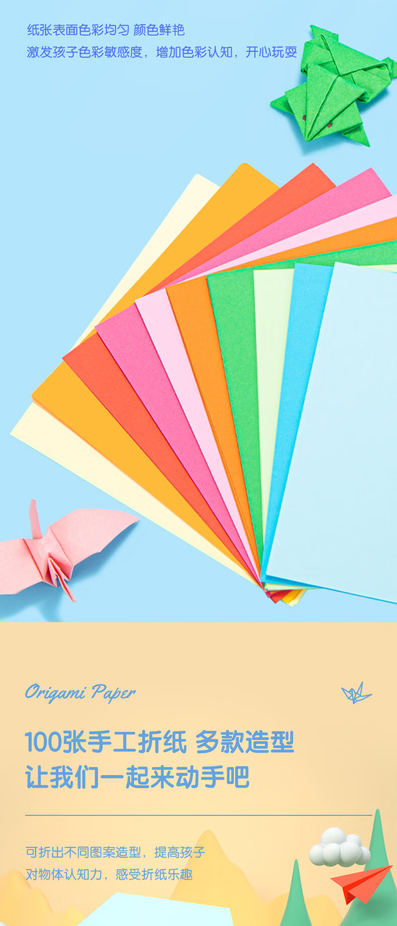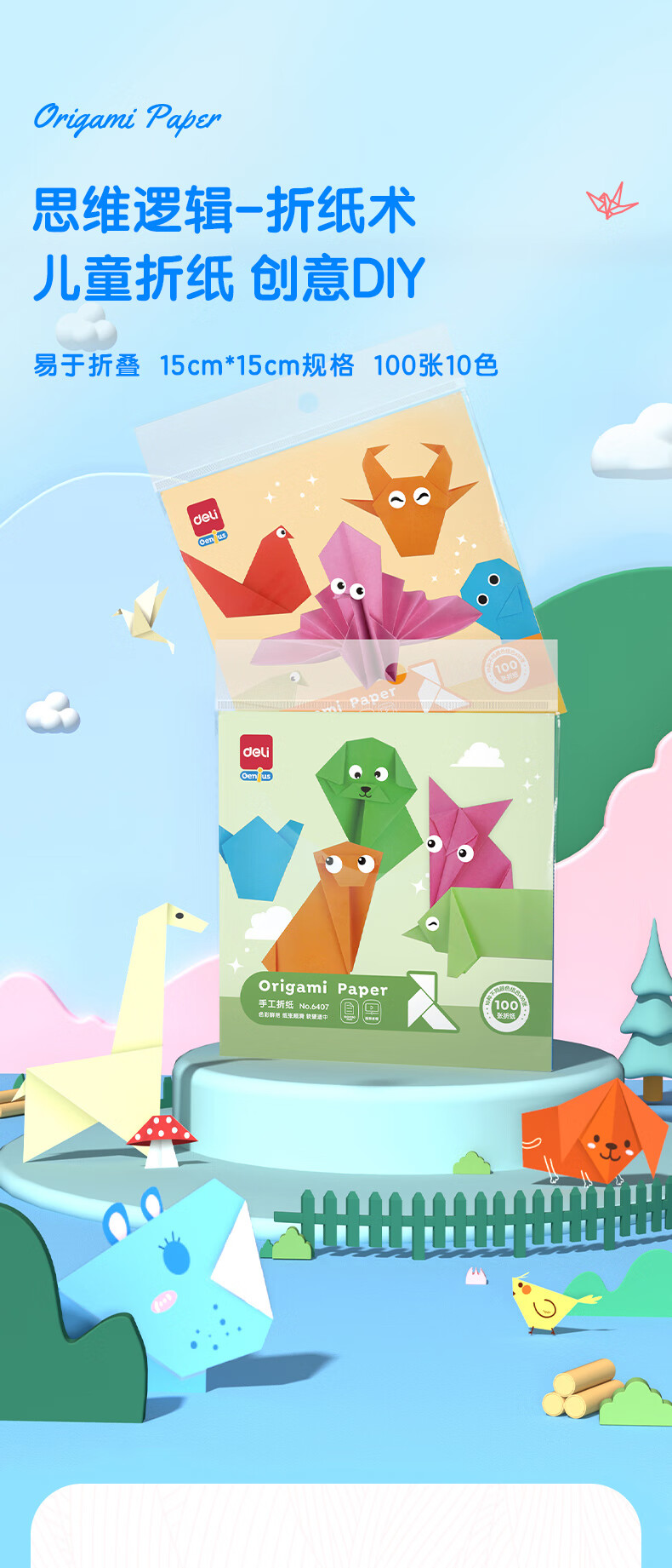 得力(deli)100张15*15cm彩色手工DIY折纸千纸鹤幼儿园剪纸彩纸软卡纸手工手绘纸儿童生日礼物开学文具