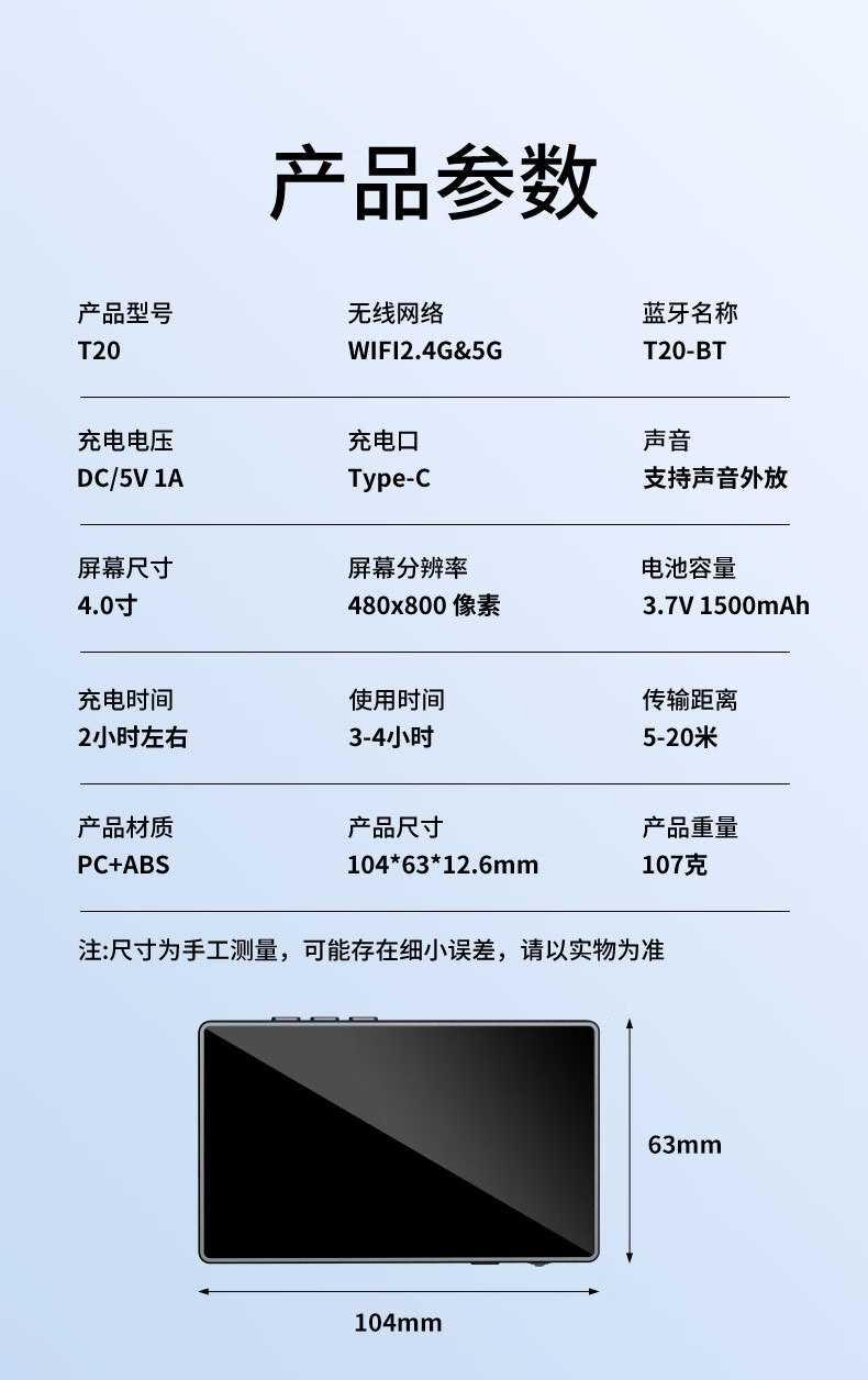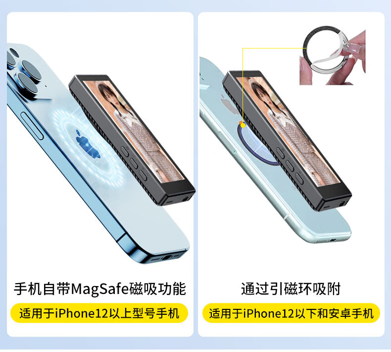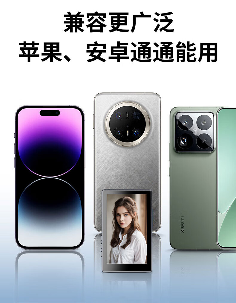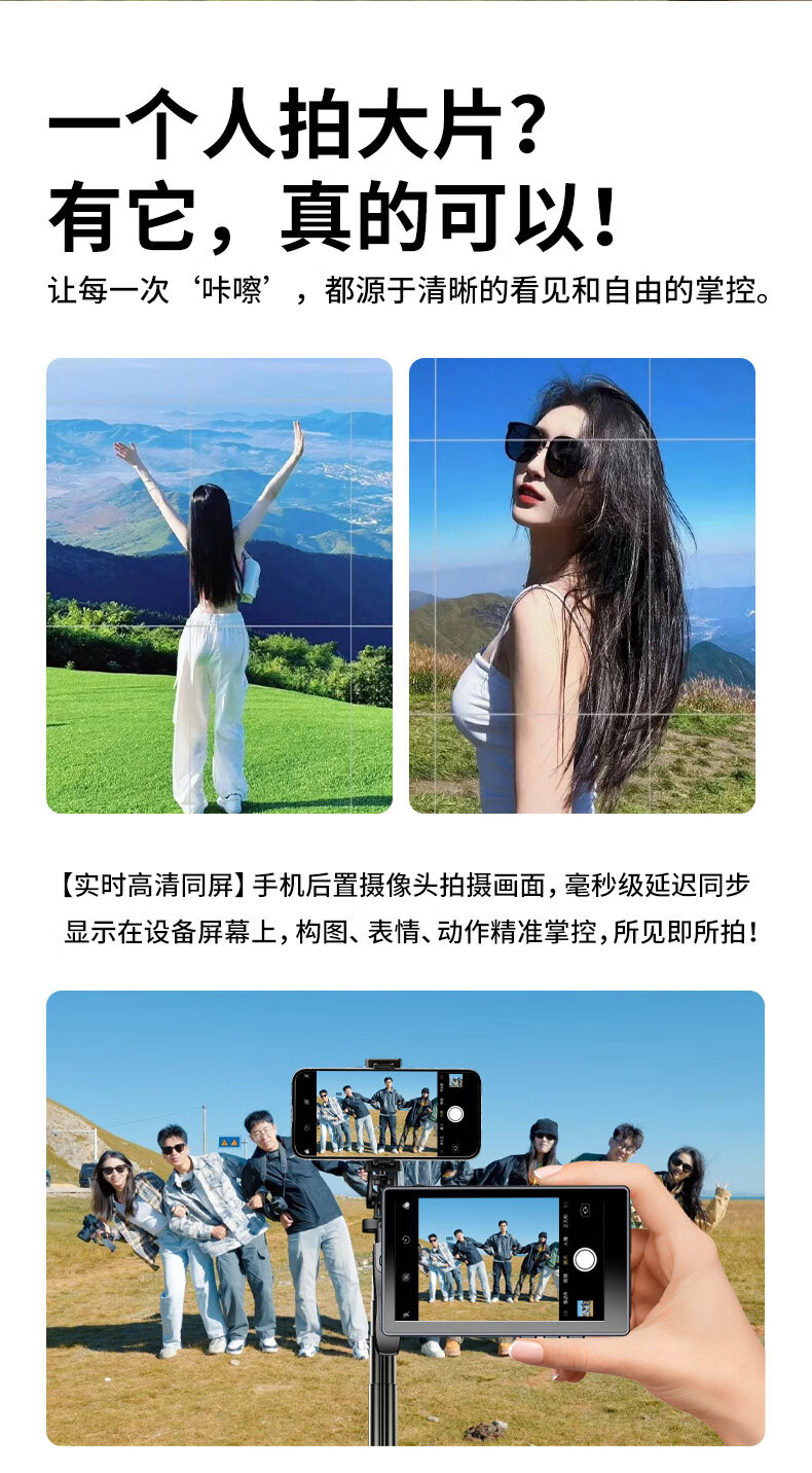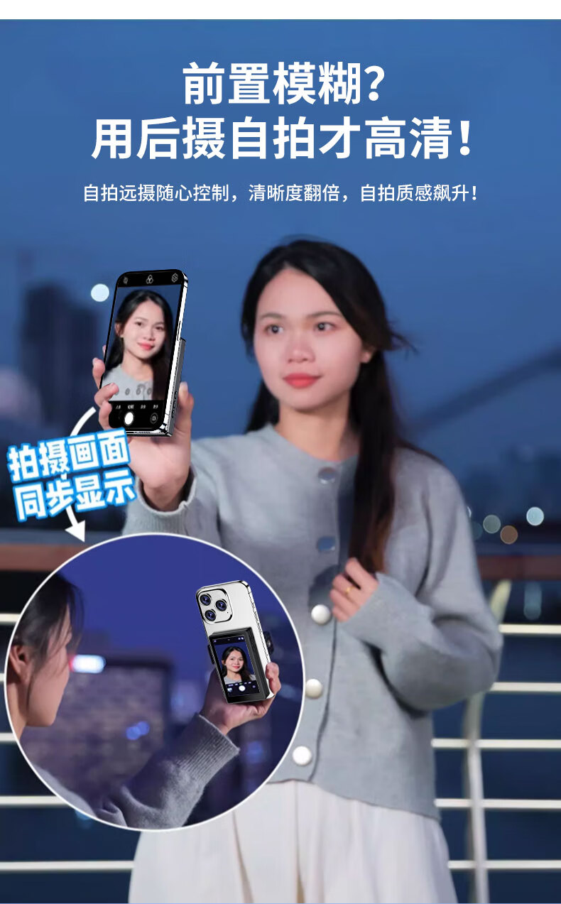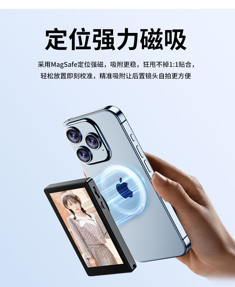 靓点拍自拍屏手机磁吸后置摄像头自拍拍照神器显示屏高清显示器拍拍宝 T20同屏器+1.8米自拍杆