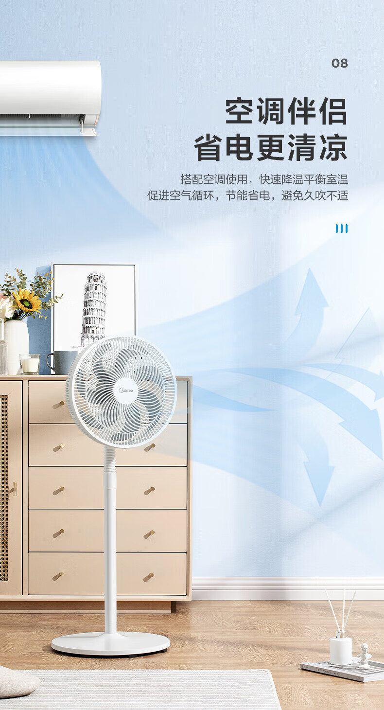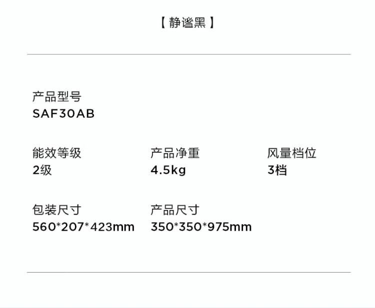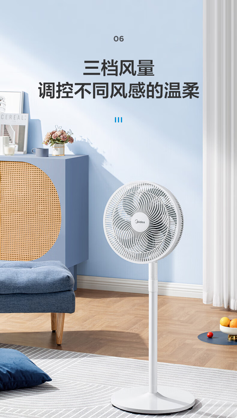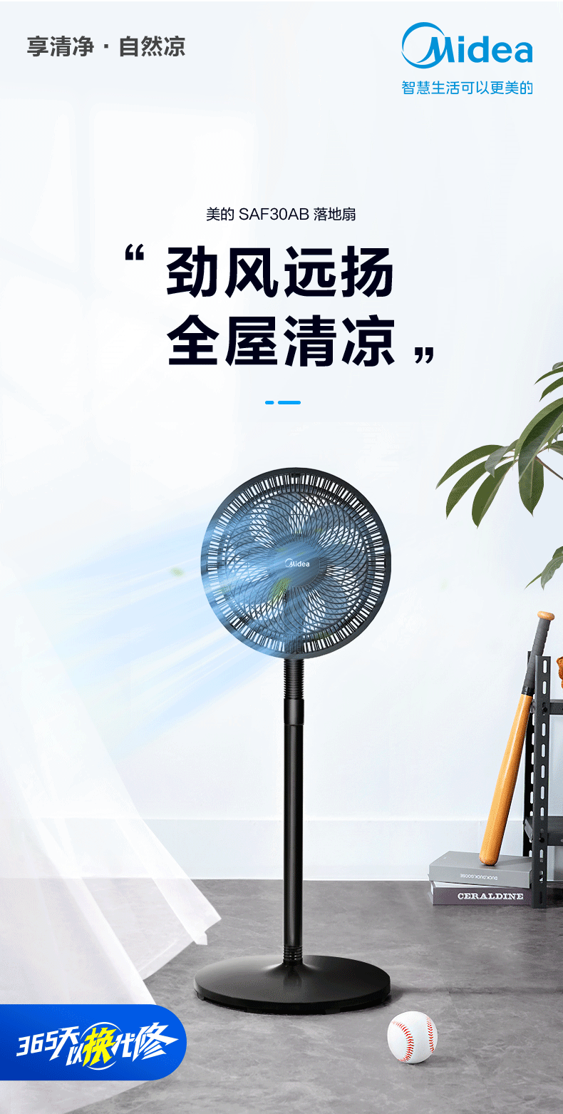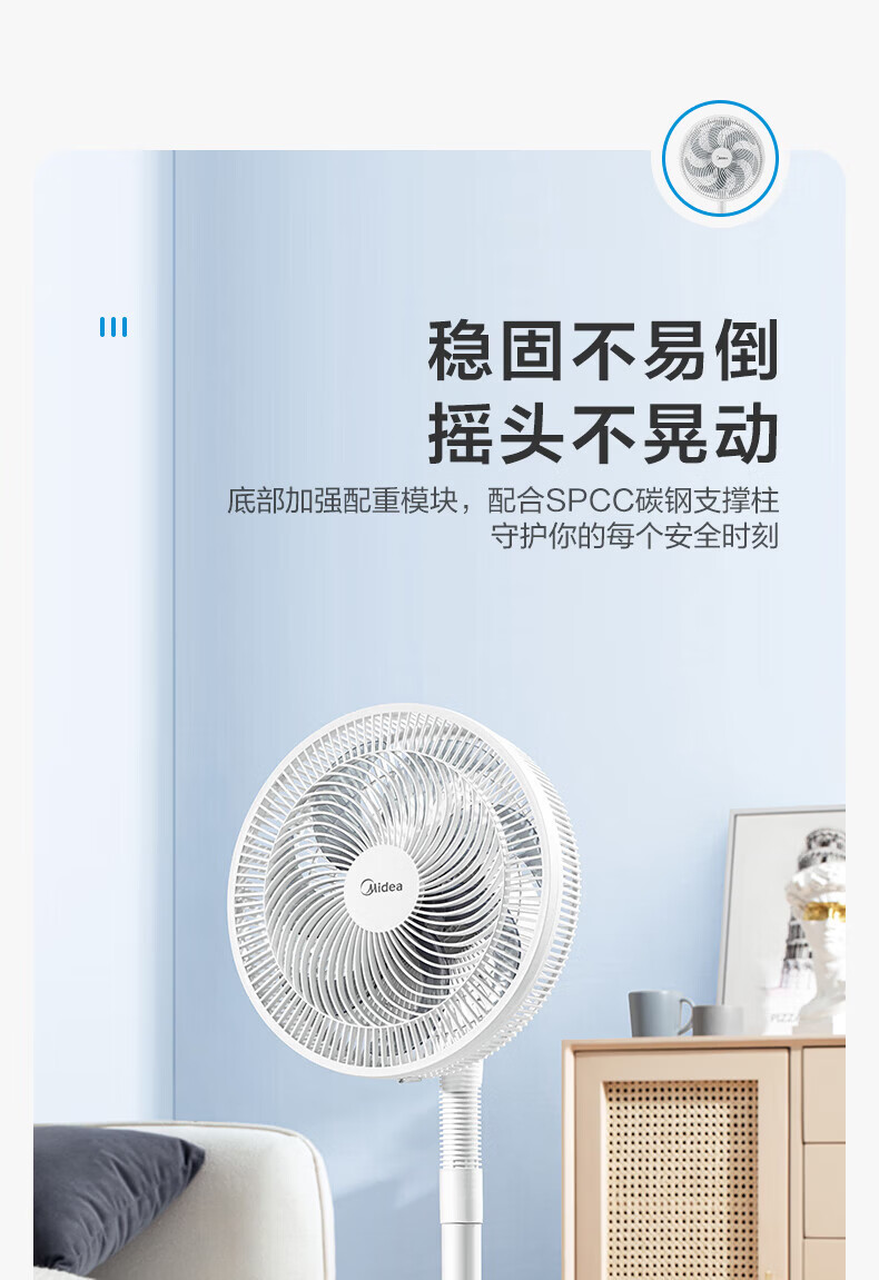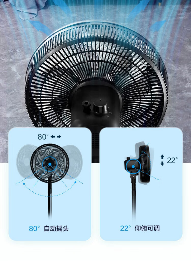 美的电风扇家用风扇落地扇 大风力客厅卧室宿舍工业车间大风量 循环自然风 【黑色】30cm扇叶