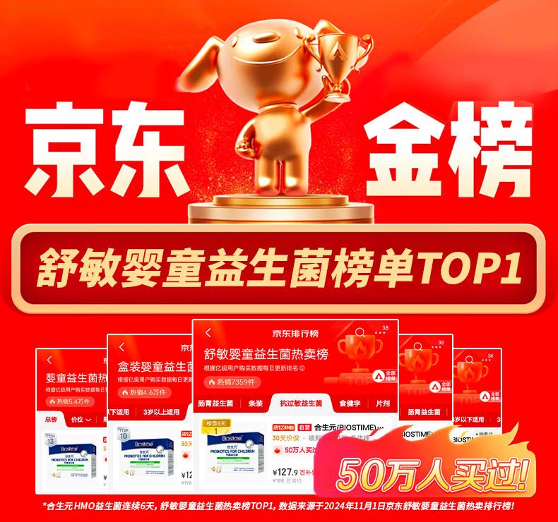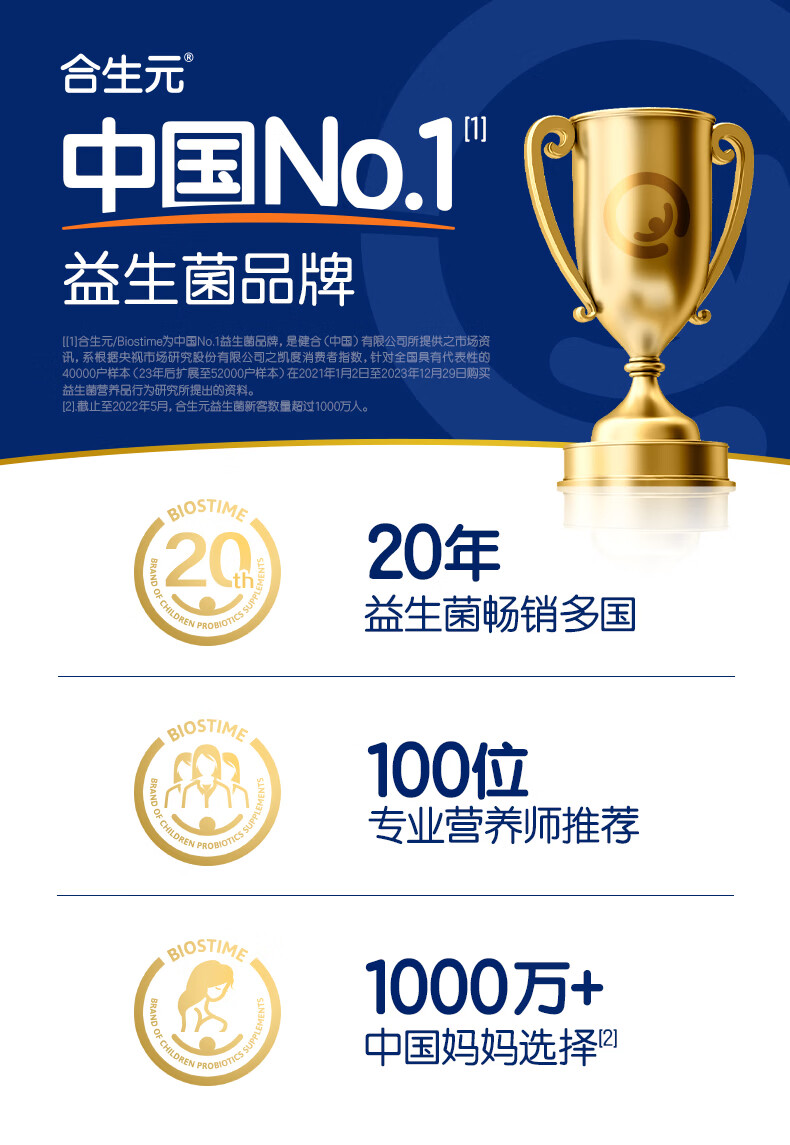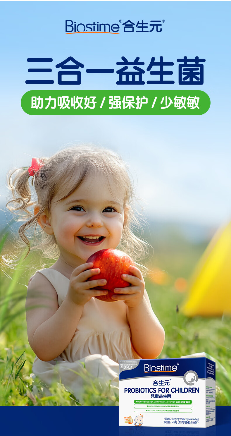 合生元(BIOSTIME)HMO儿童益生菌呵护肠胃提自护力少敏感益生菌60袋