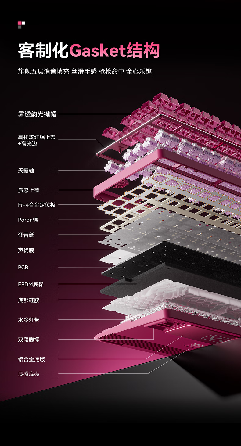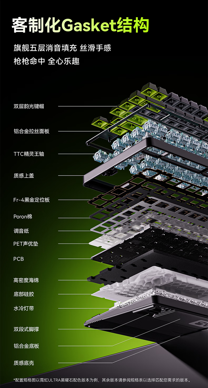 VGN 霓虹磁轴键盘超竞版 75电竞客制化Gasket全键热插拔RGB无畏契约 超低延迟游戏麻将音水冷灯带 霓虹【Ultra】 TTC精灵王轴 三模 曜石黑