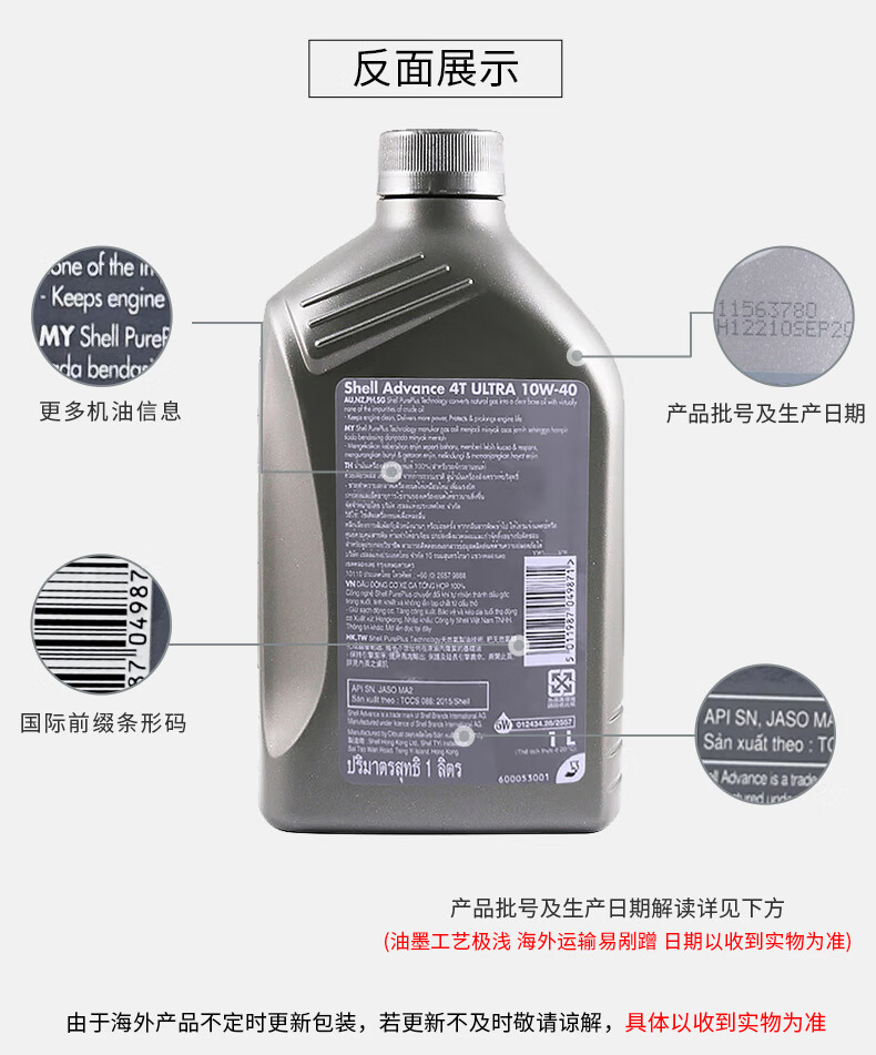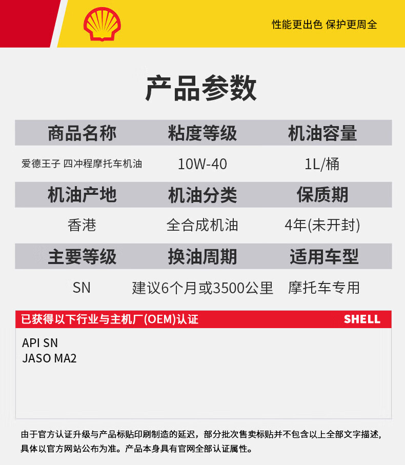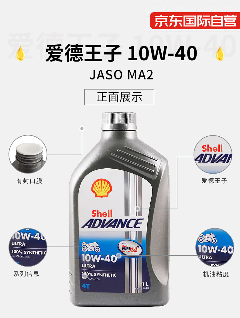 壳牌(Shell)爱德王子 10W-40 四冲程摩托车机油 1L 新加坡原装进口