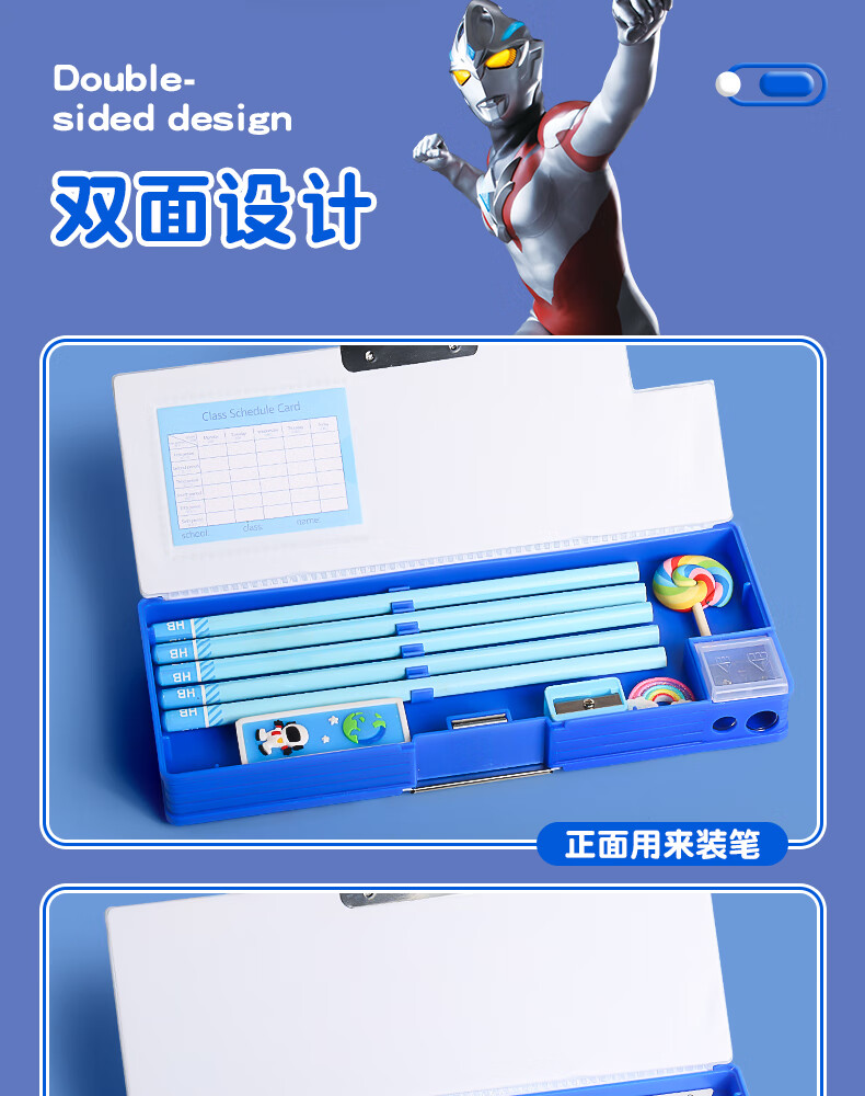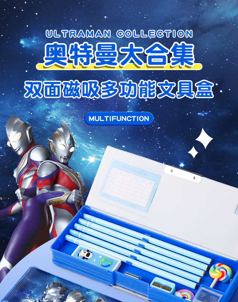 语季奥特曼文具盒简约款男孩铅笔盒小学一年级男生铅笔袋大容量双面磁扣款儿童多功能笔盒文具套装礼品 奥特曼合集文具盒【单笔盒赠课程表】
