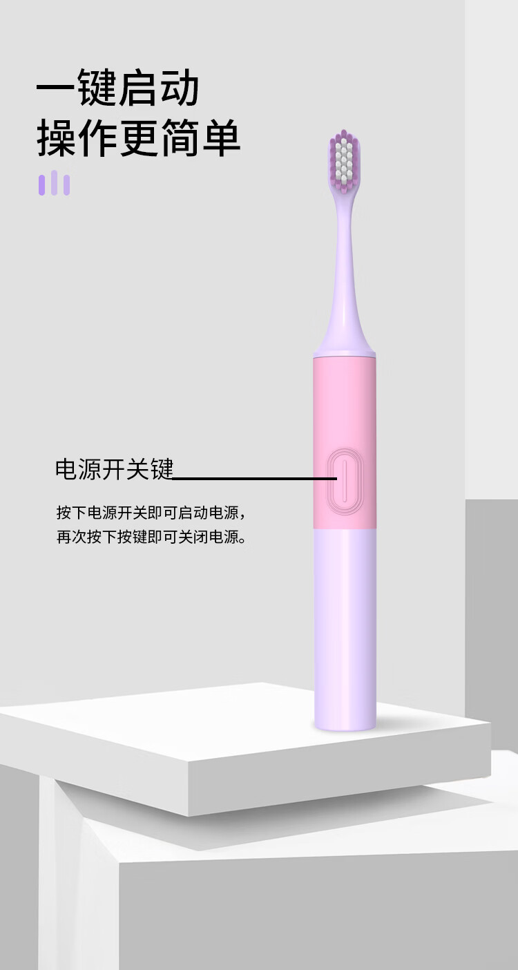 简洁电动牙刷成人男士女士声波震动防水旅游出行便携装送收纳盒年货节礼物情人节情侣款送男生/女友 【焕新升级】j2软刷粉色