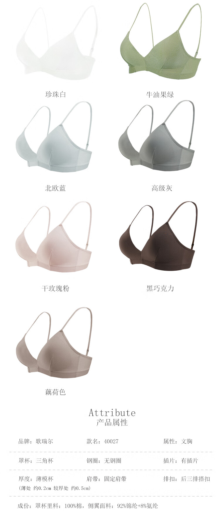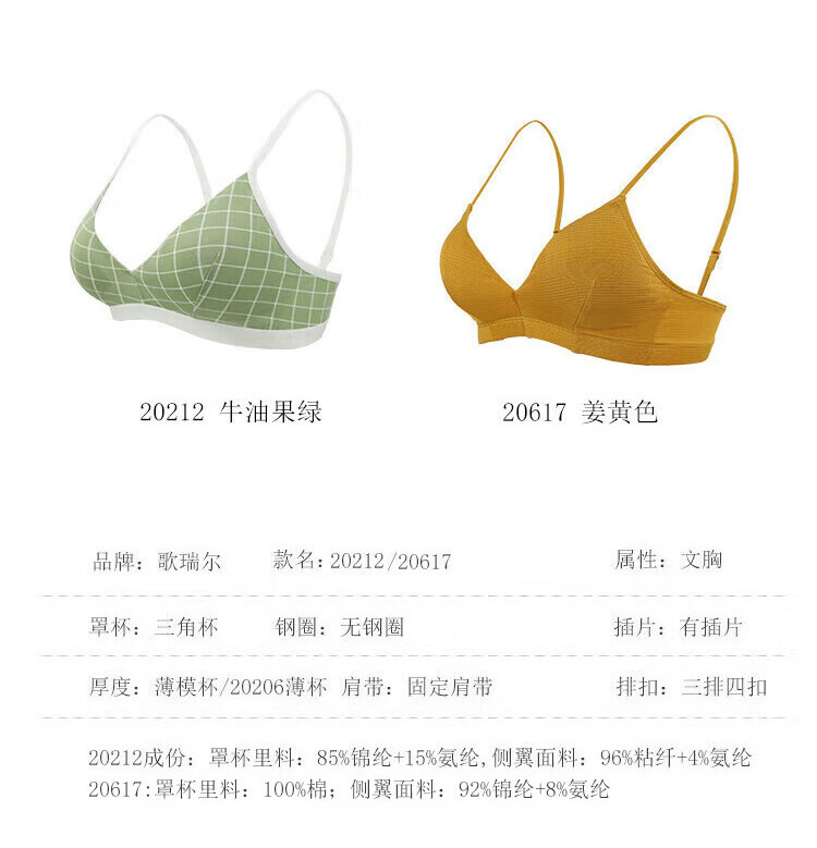 Gainreel歌瑞尔出行必备舒适柔软法式三角杯文胸运动风文胸罩透气舒适亲肤内衣 姜黄色 20617 70A