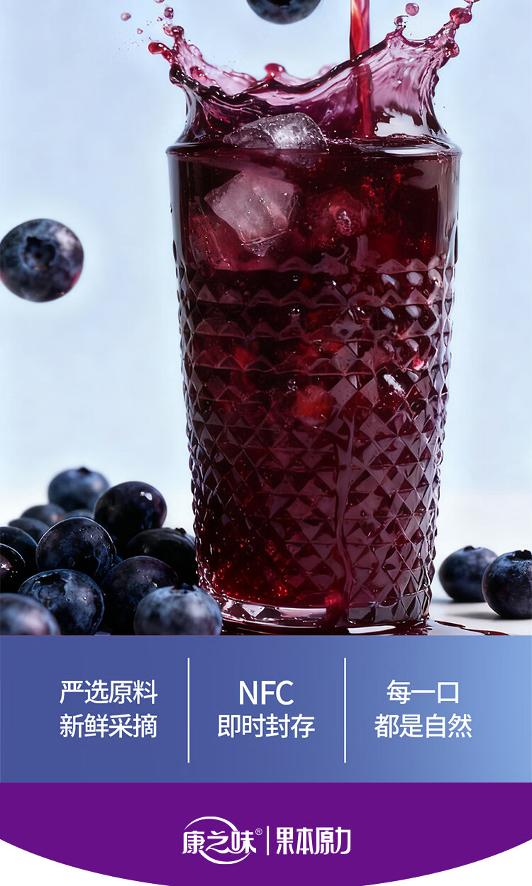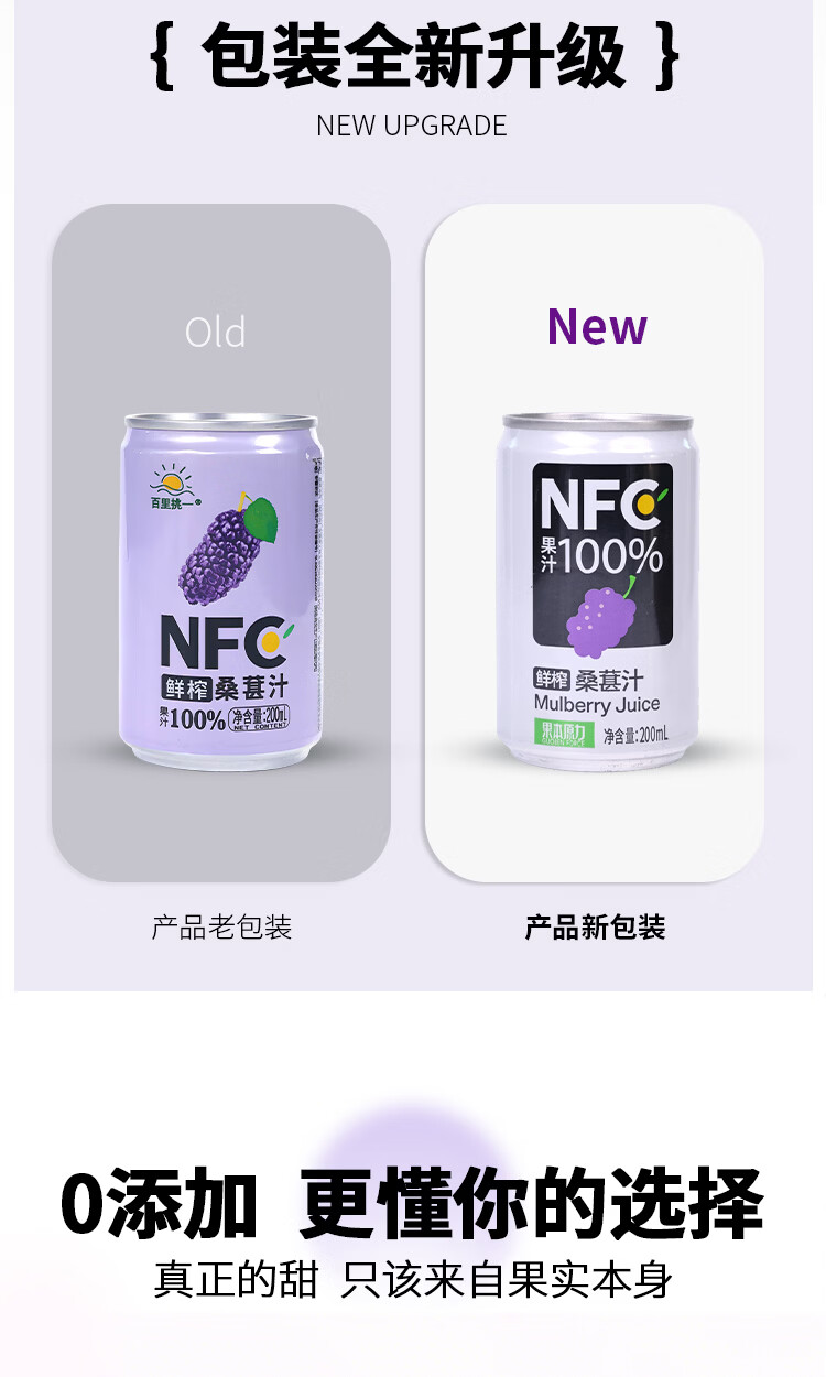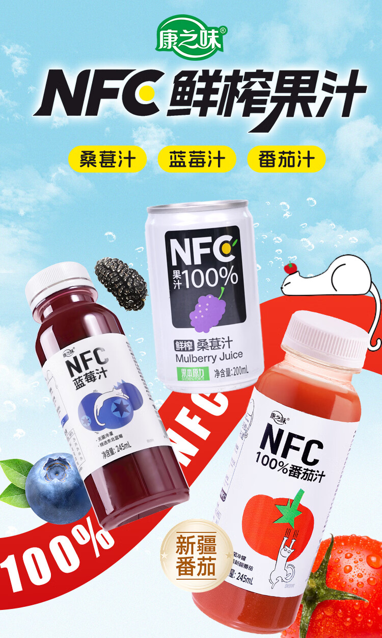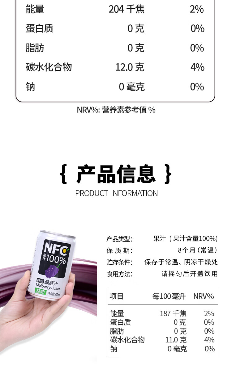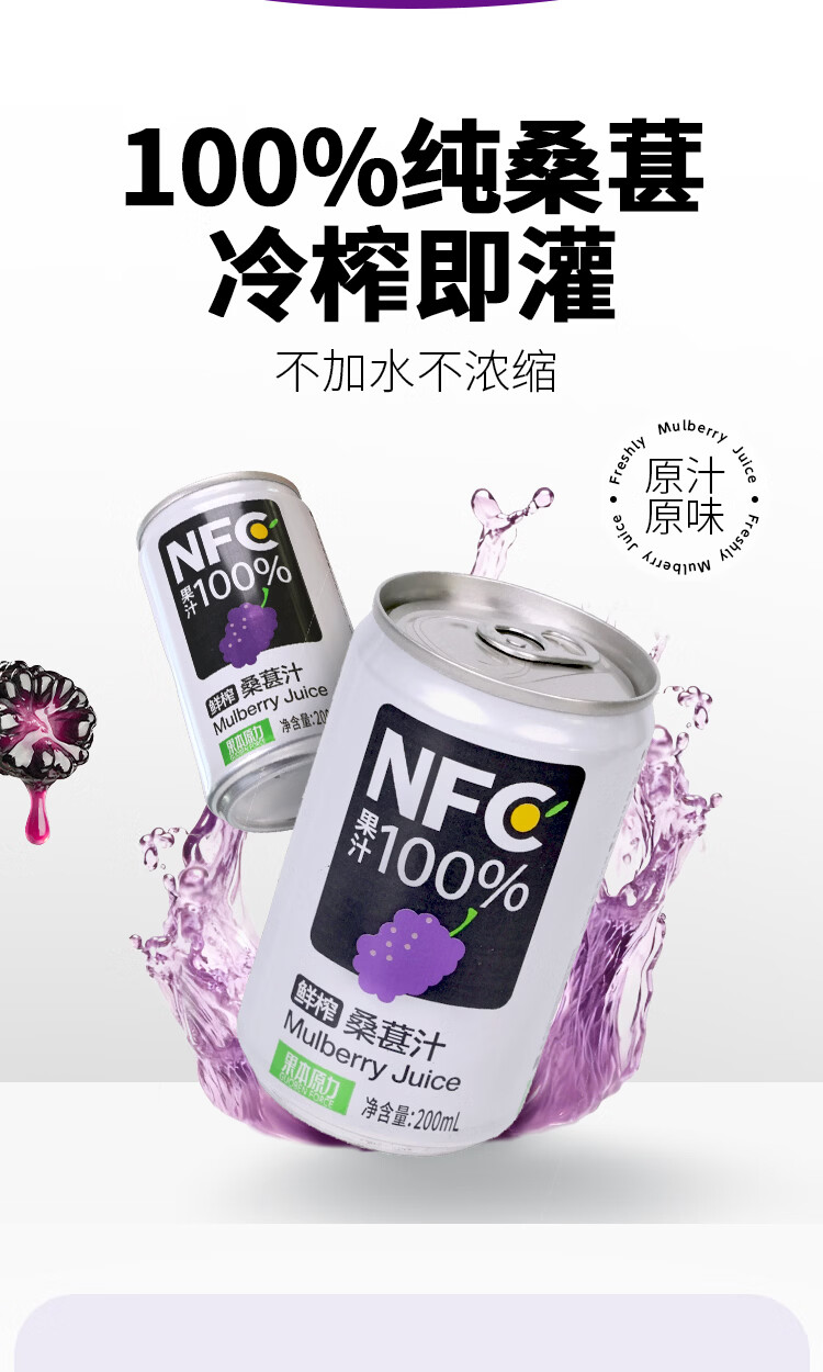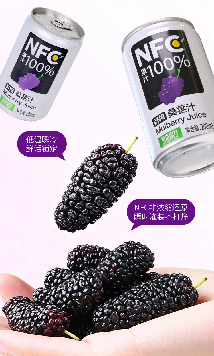 康之味NFC桑葚汁100%果汁饮料原榨桑葚果汁无添加非浓缩鲜果饮品 NFC桑葚汁200ml*8听