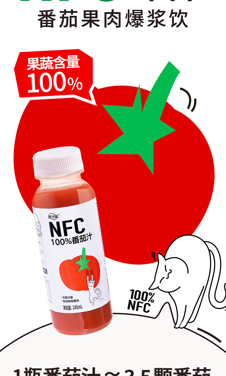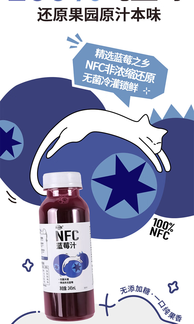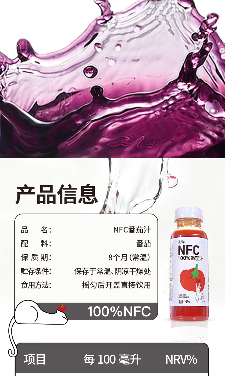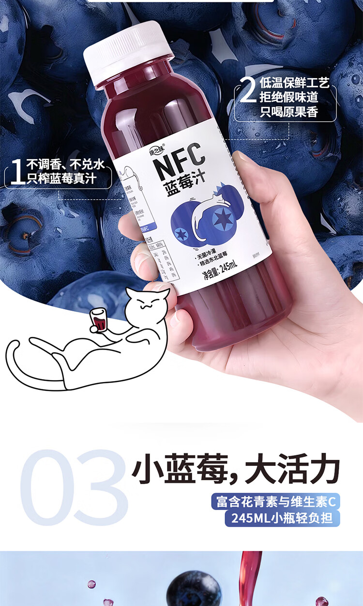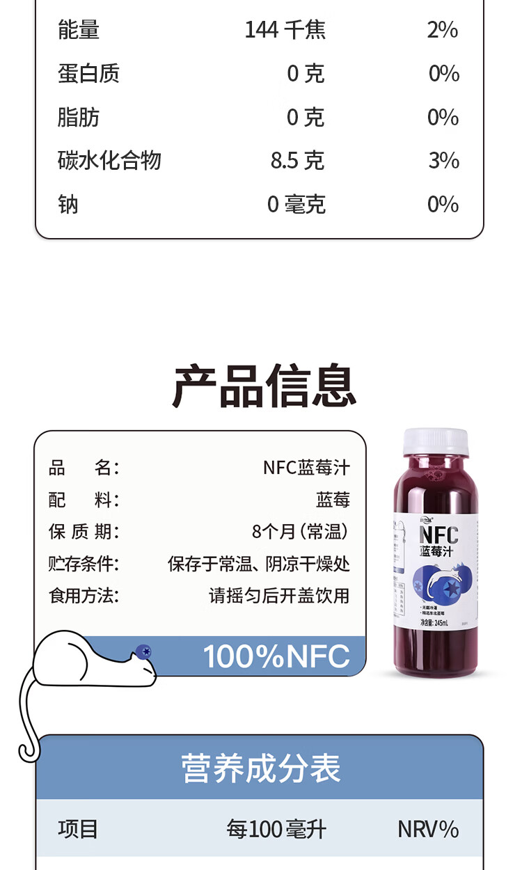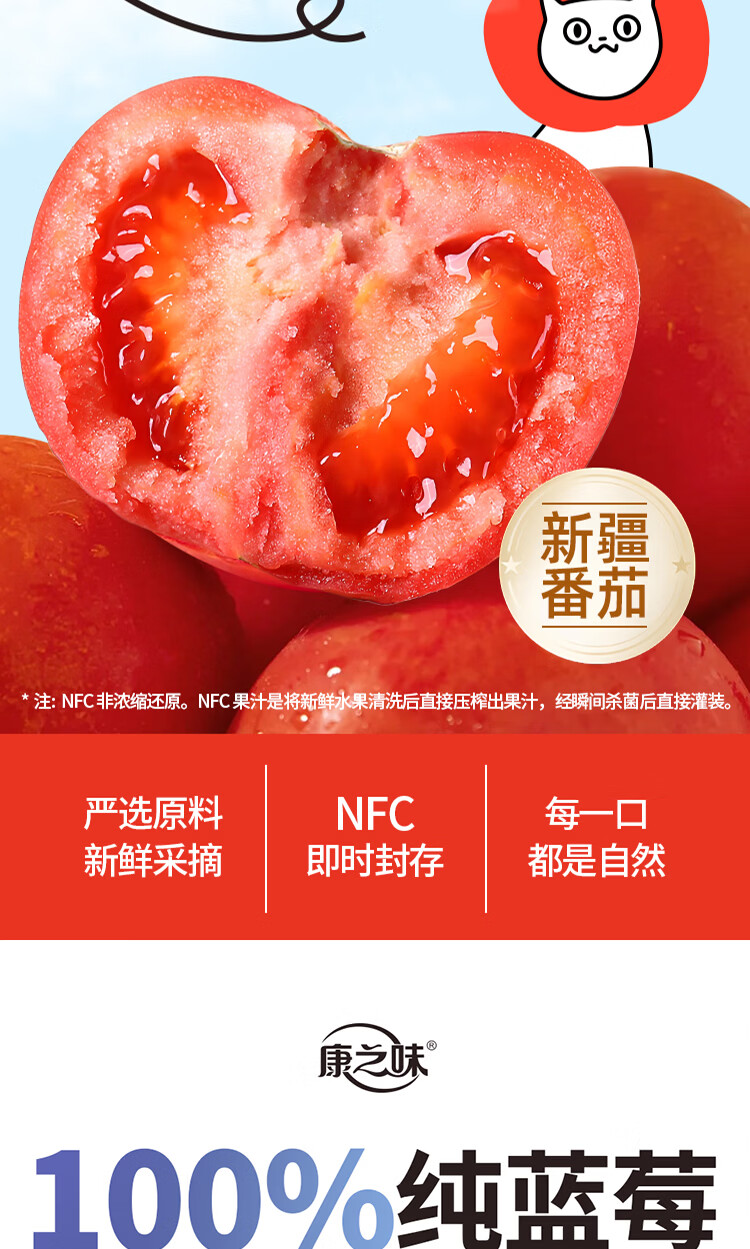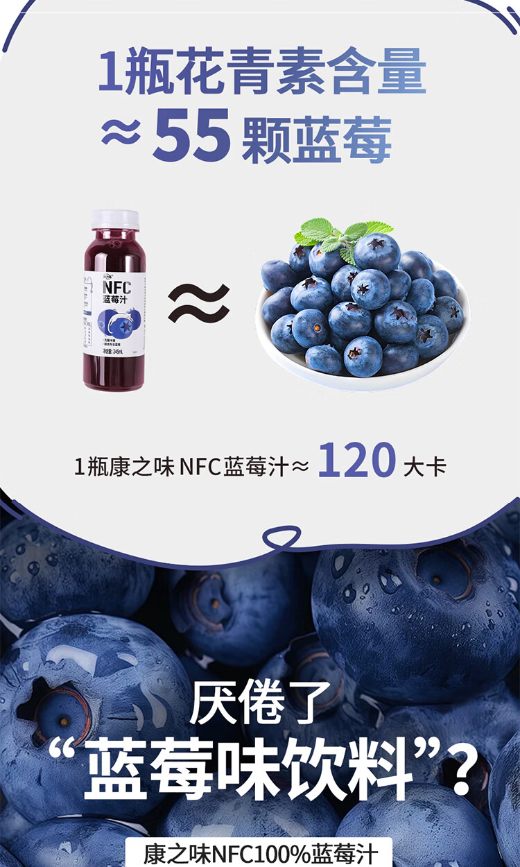 康之味NFC桑葚汁100%果汁饮料原榨桑葚果汁无添加非浓缩鲜果饮品 NFC桑葚汁200ml*8听