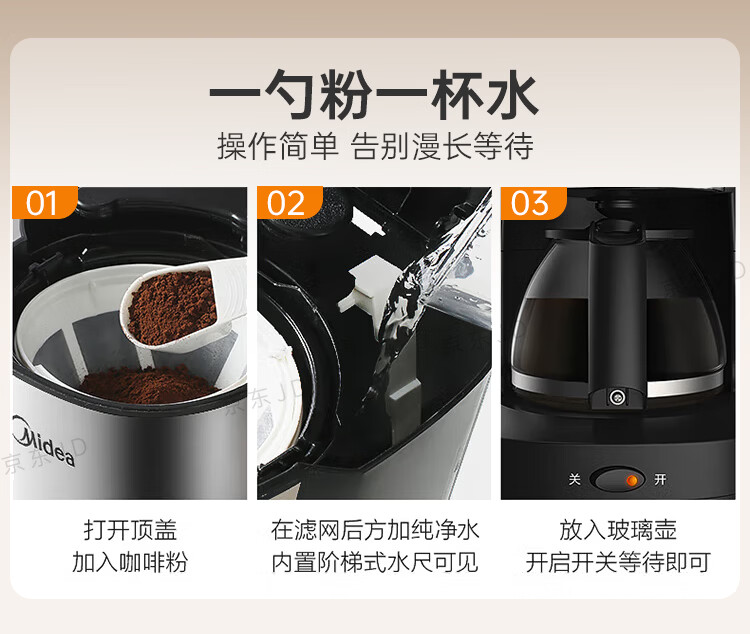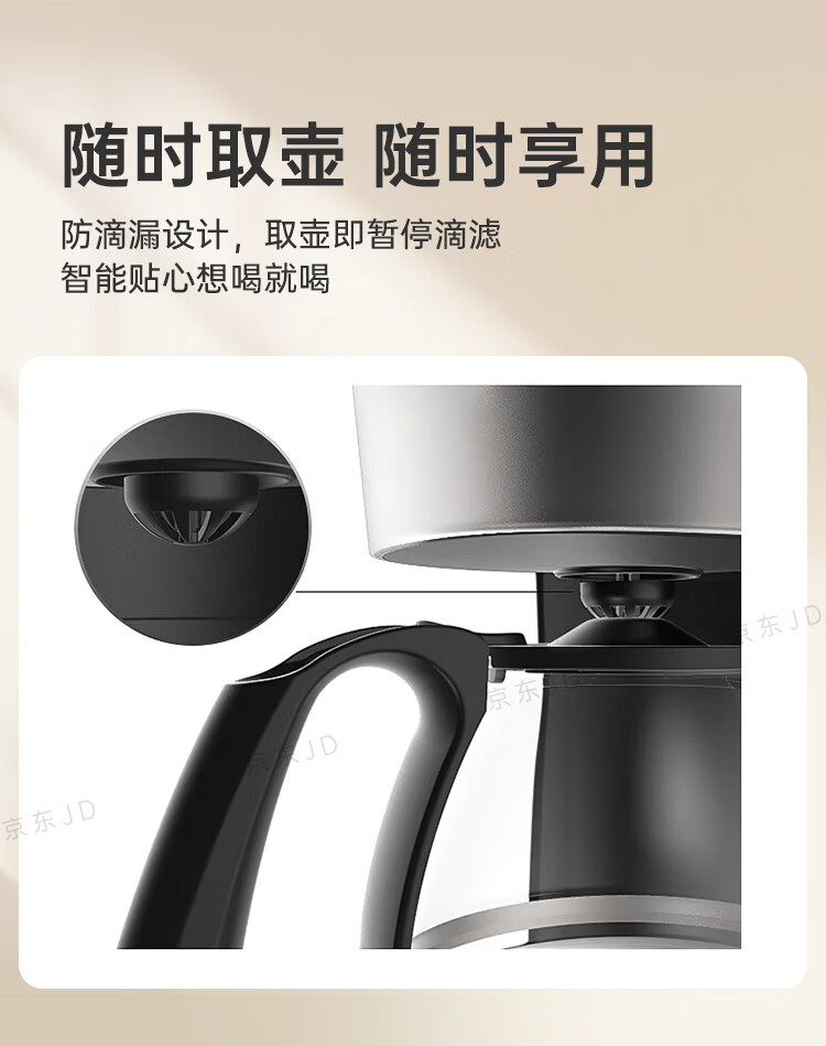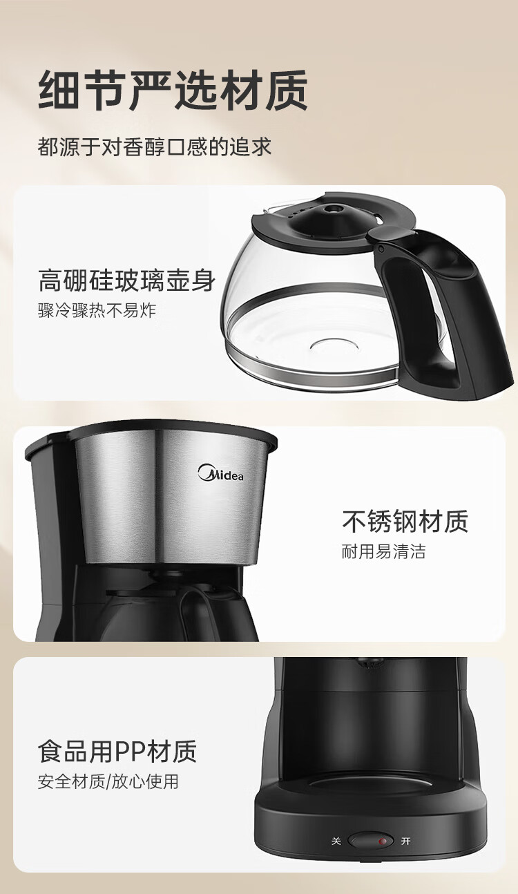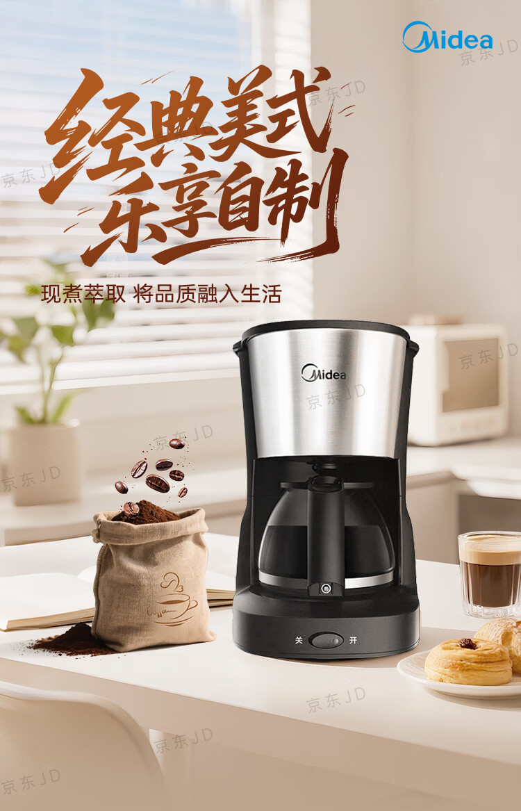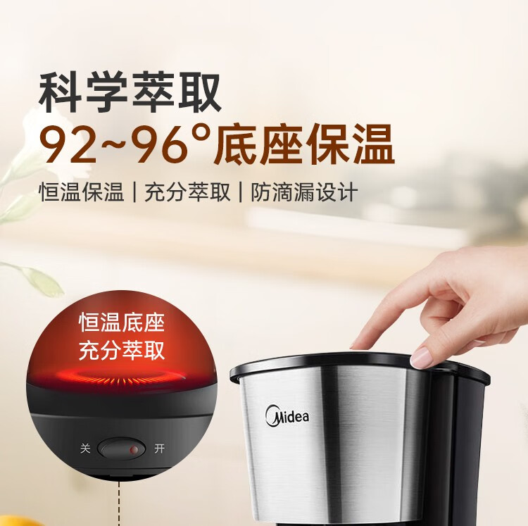 美的(Midea)滴滤美式咖啡机咖啡壶半自动家用滴漏恒热萃取小型电热水壶泡茶杯煮茶器茶壶 【银黑色】MA-KFD-regular101