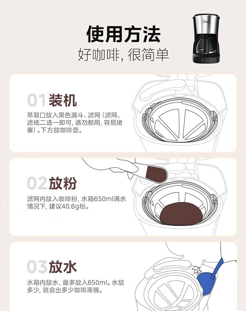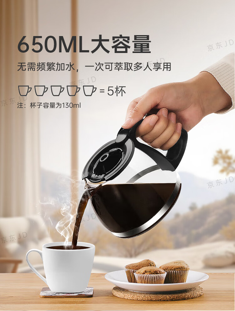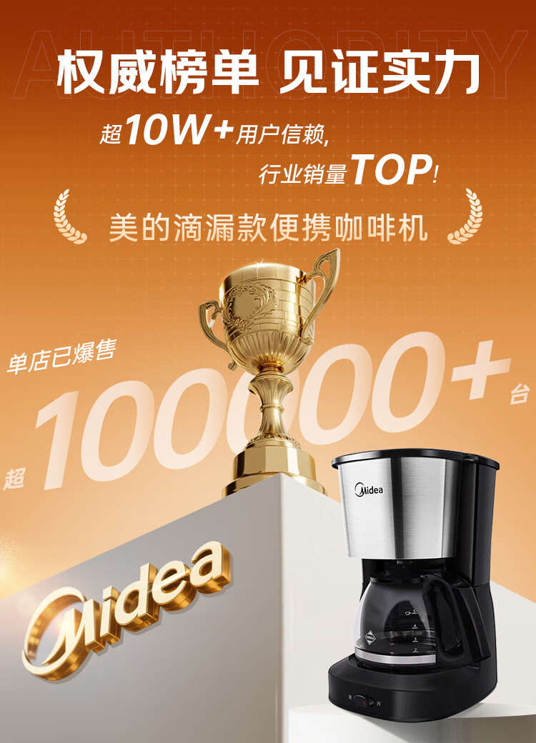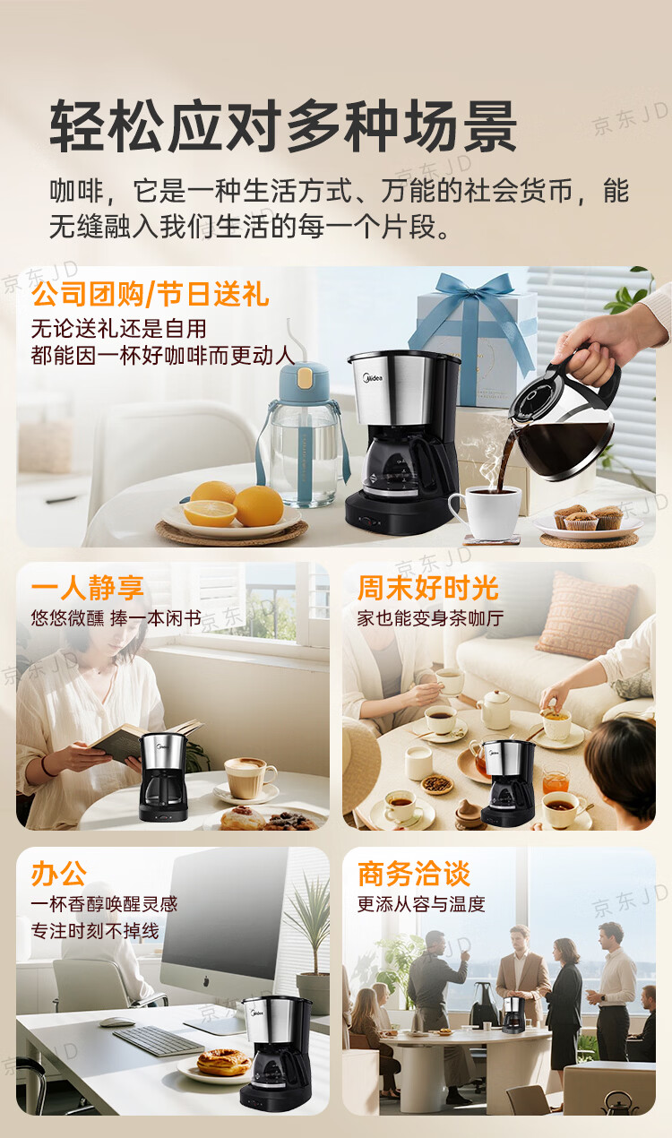 美的(Midea)滴滤美式咖啡机咖啡壶半自动家用滴漏恒热萃取小型电热水壶泡茶杯煮茶器茶壶 【银黑色】MA-KFD-regular101