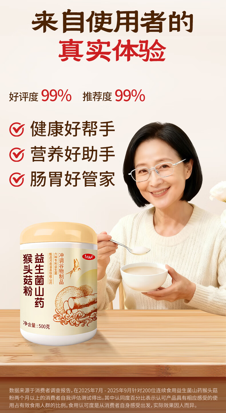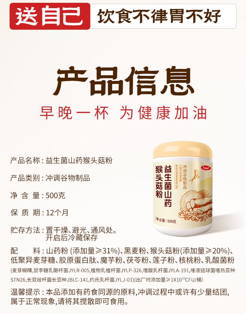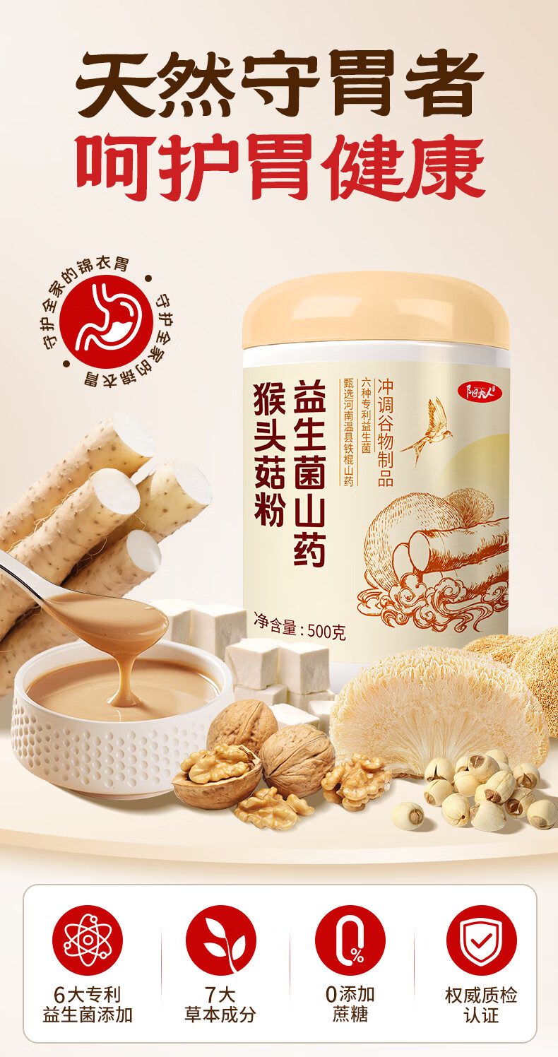 阳夫人益生菌铁棍山药猴头菇养胃粉健脾养胃护胃胃黏膜复早餐冲饮修食品 【周期装】 500g*3罐 【90%顾客的选择】