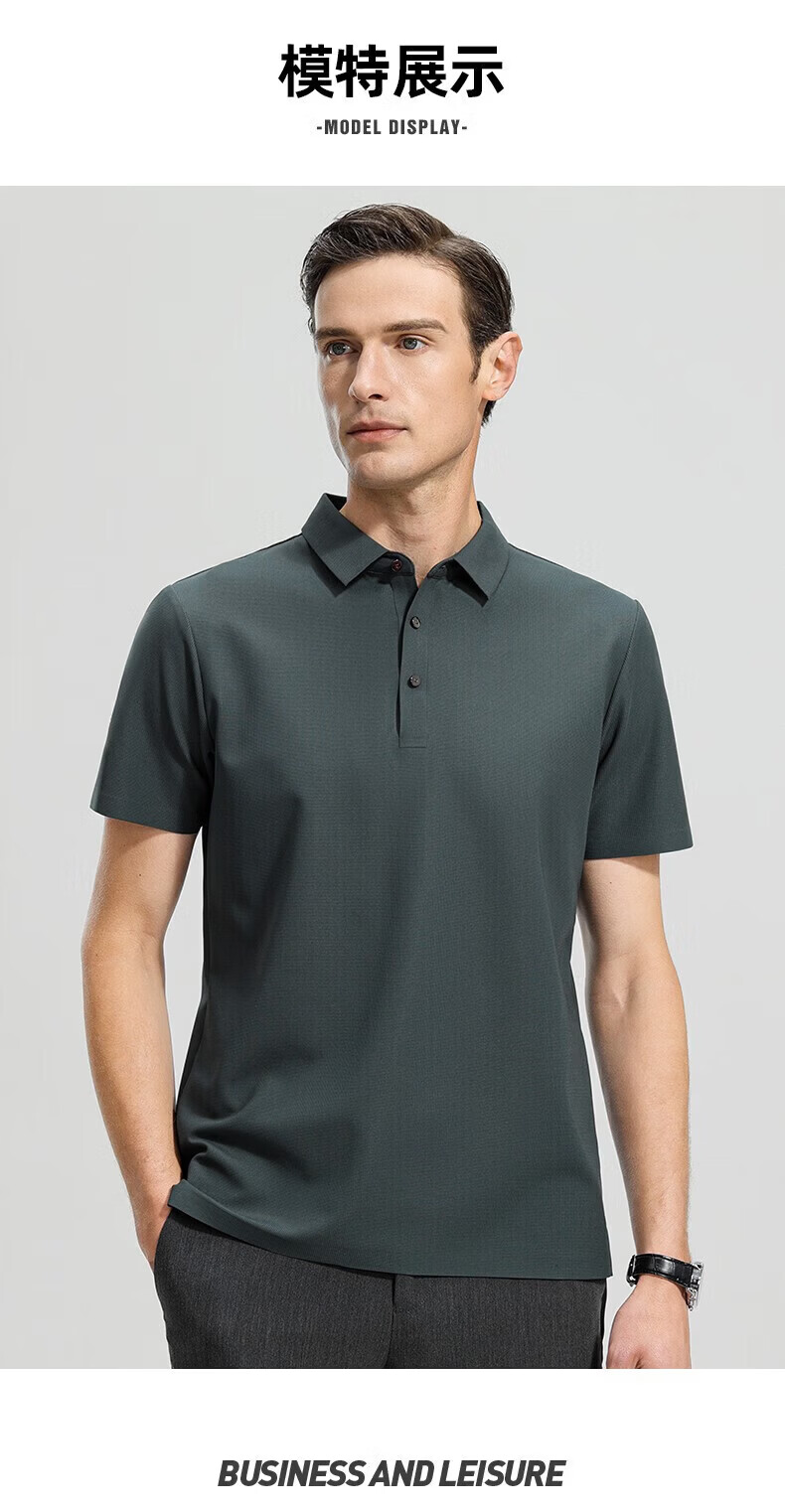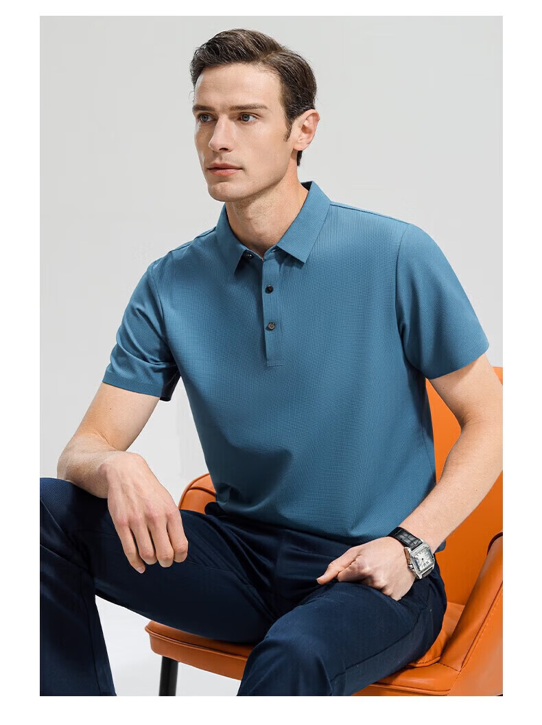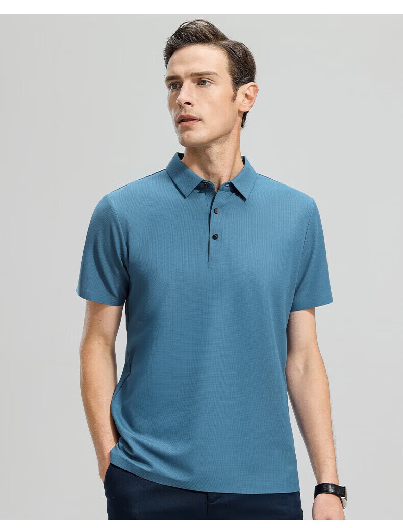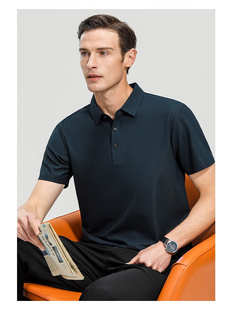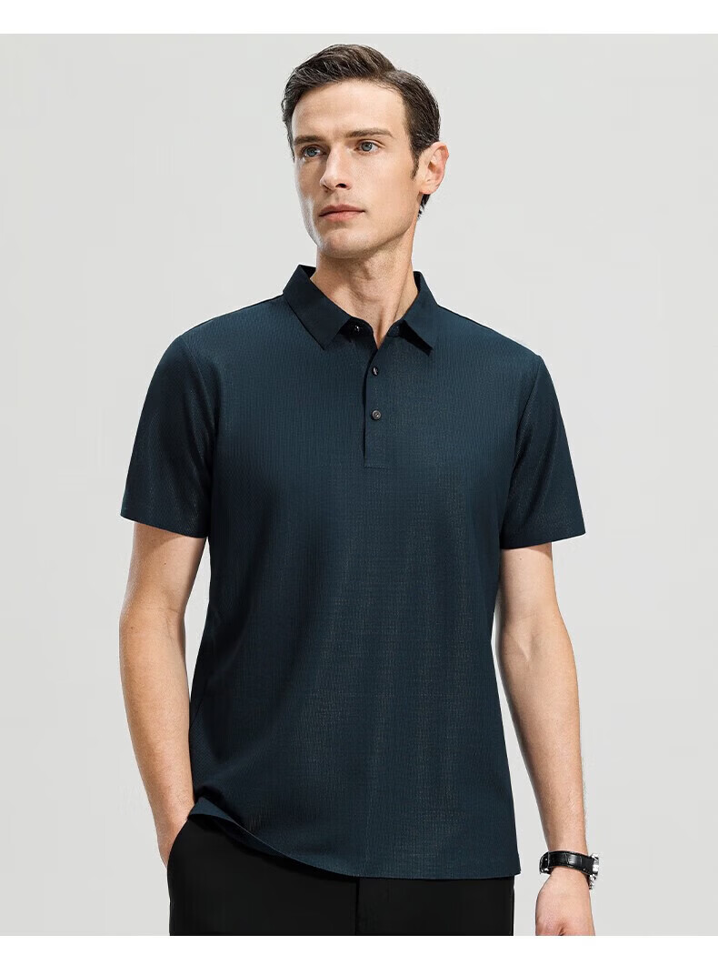罗蒙(ROMON)高弹华夫格短袖t恤男夏季新款纯色易打理T恤衫中青年翻领上衣 藏青 M 170(建议90-115斤)