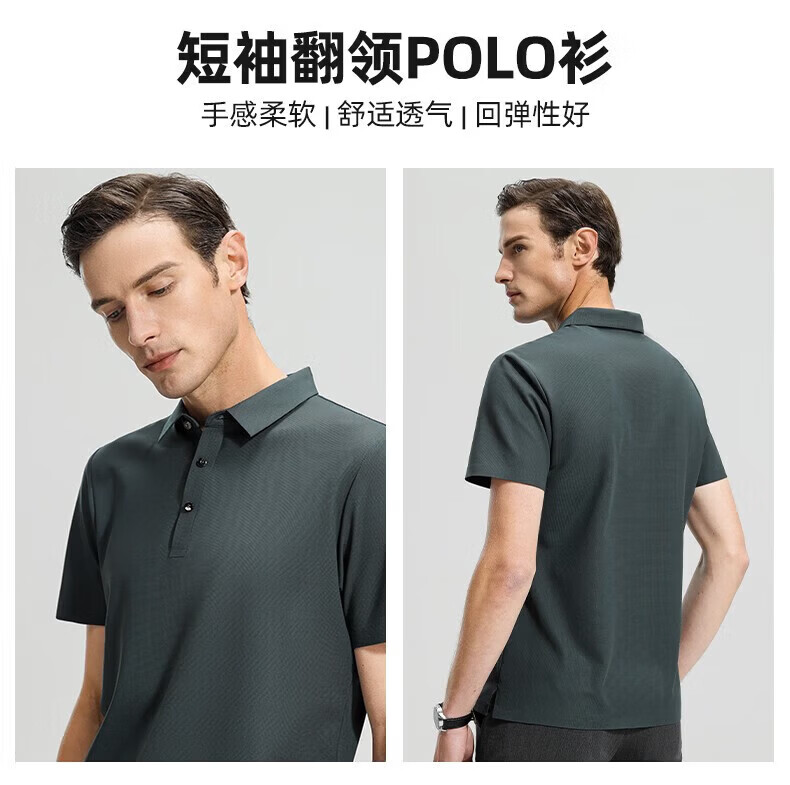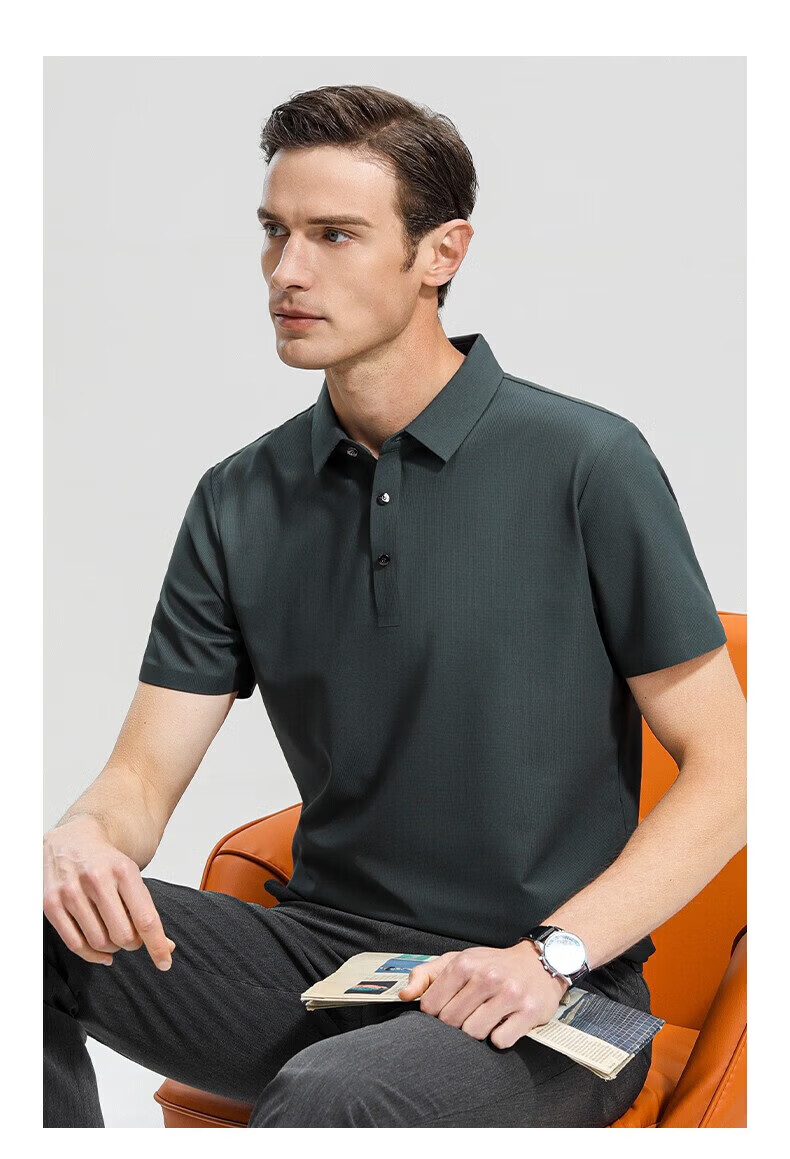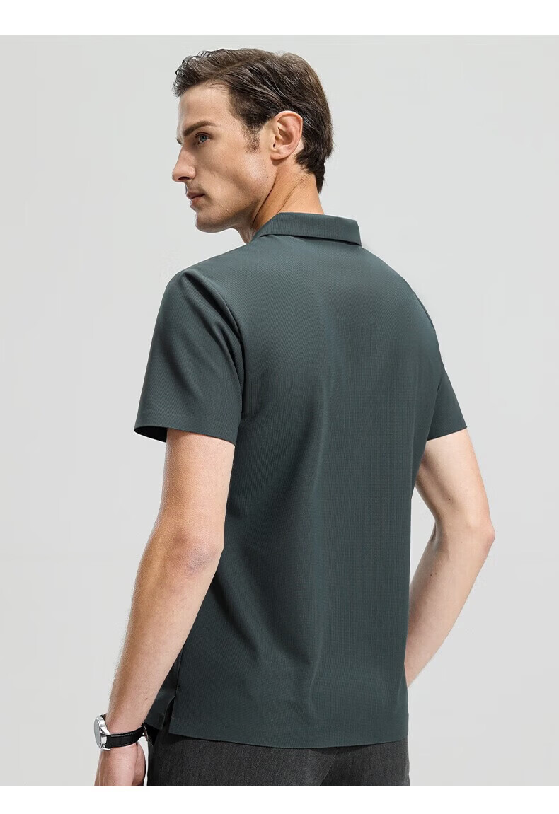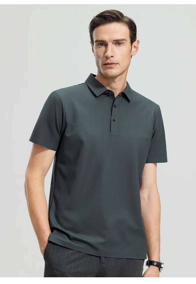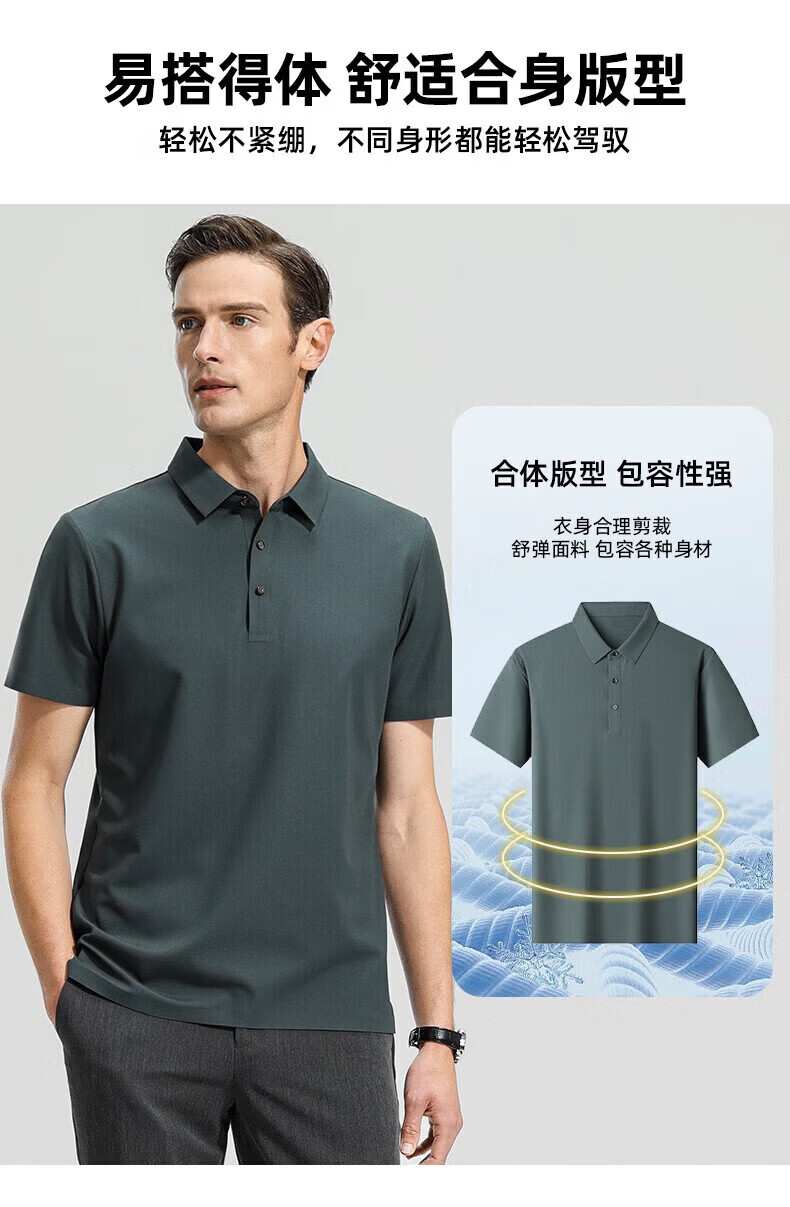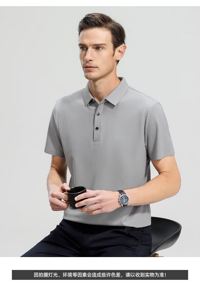 罗蒙(ROMON)高弹华夫格短袖t恤男夏季新款纯色易打理T恤衫中青年翻领上衣 藏青 M 170(建议90-115斤)