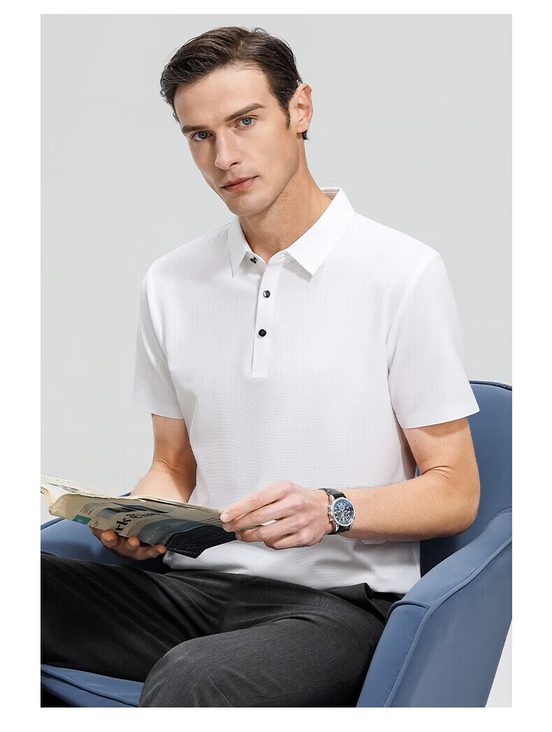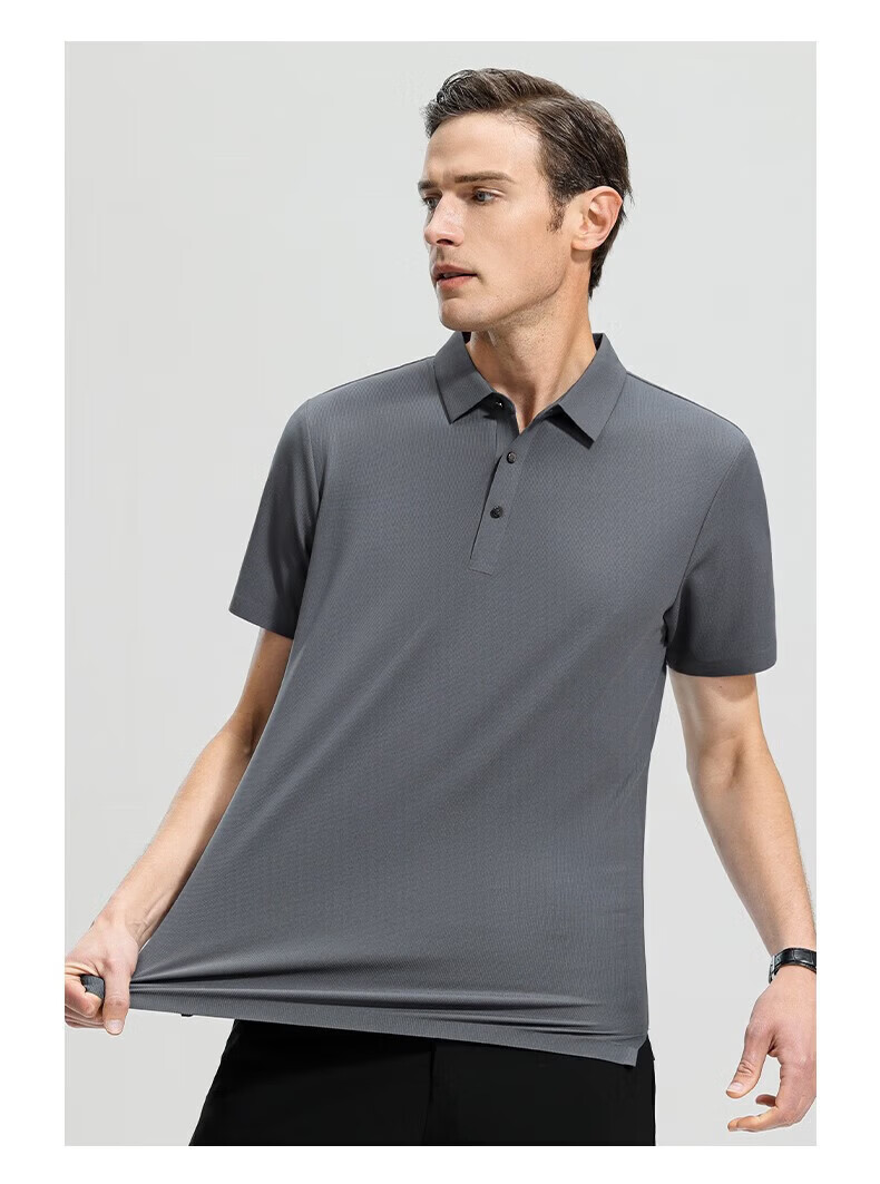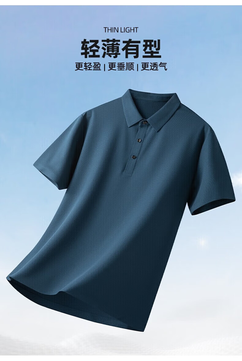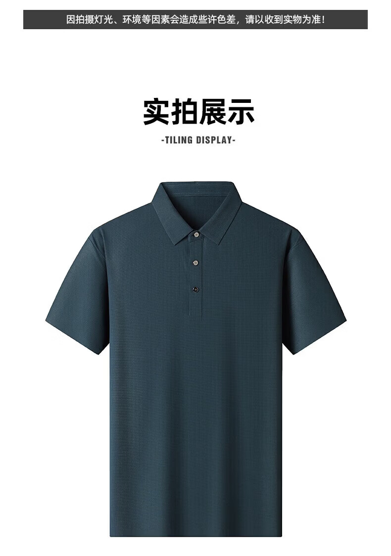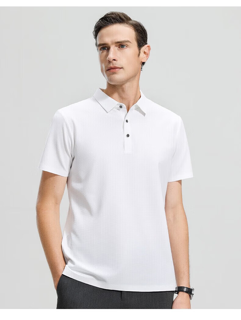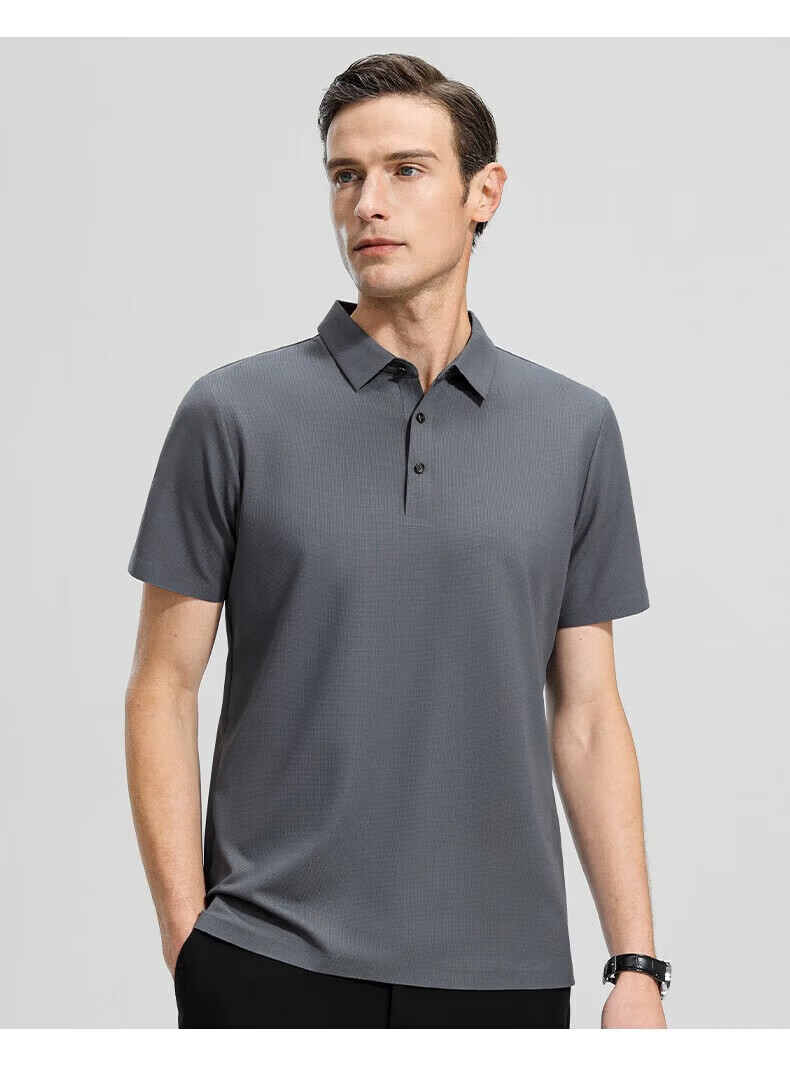 罗蒙(ROMON)高弹华夫格短袖t恤男夏季新款纯色易打理T恤衫中青年翻领上衣 藏青 M 170(建议90-115斤)