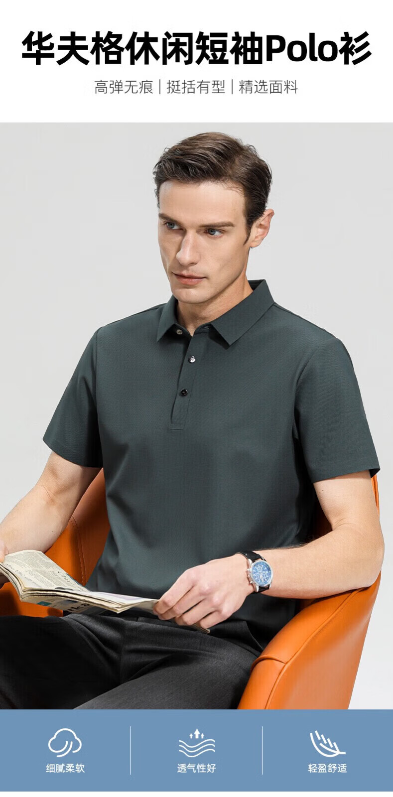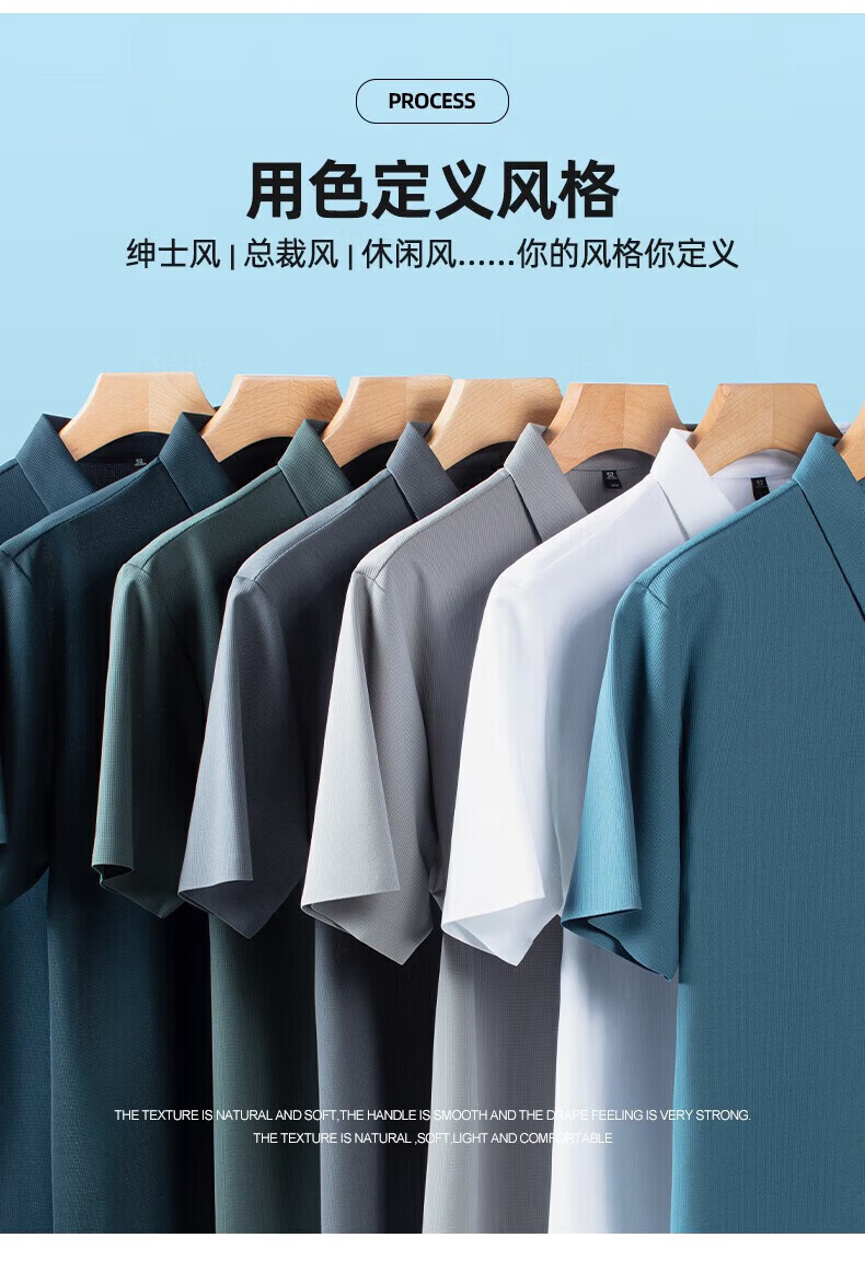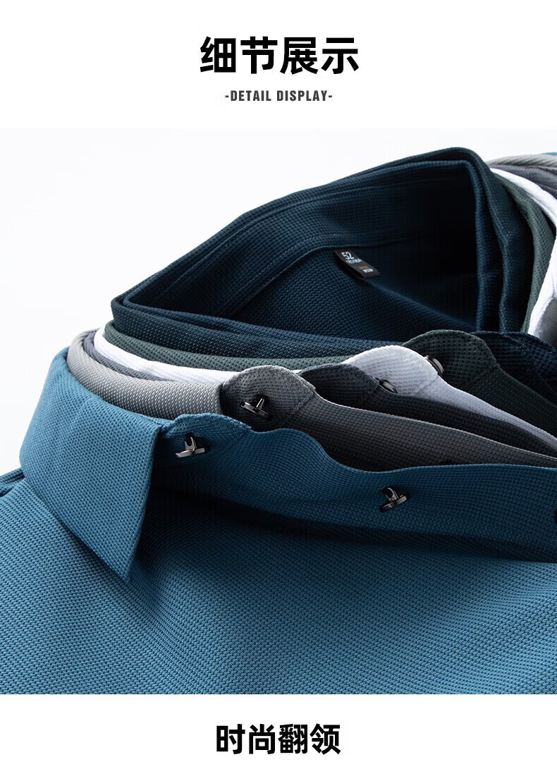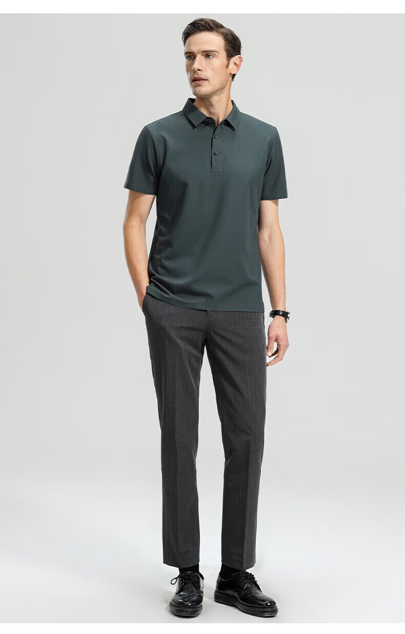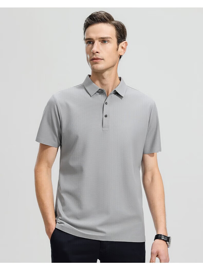 罗蒙(ROMON)高弹华夫格短袖t恤男夏季新款纯色易打理T恤衫中青年翻领上衣 藏青 M 170(建议90-115斤)