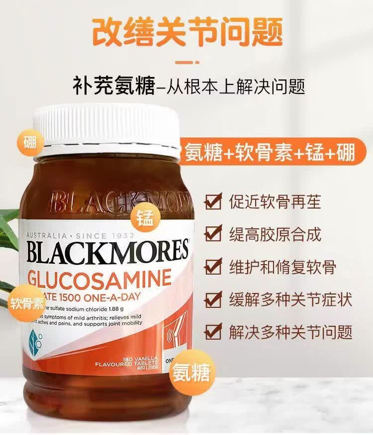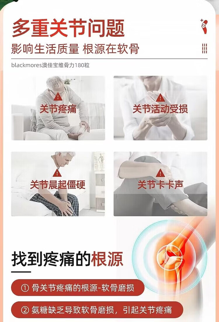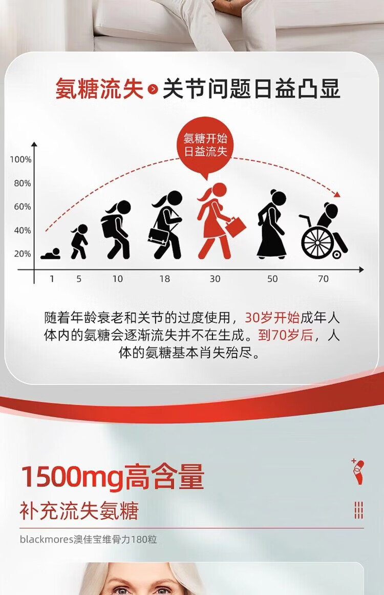 澳佳宝(Blackmores)澳洲氨糖软骨素维骨力中老年关节BM骨维力加强版180粒 加强版维骨力 180粒*1瓶