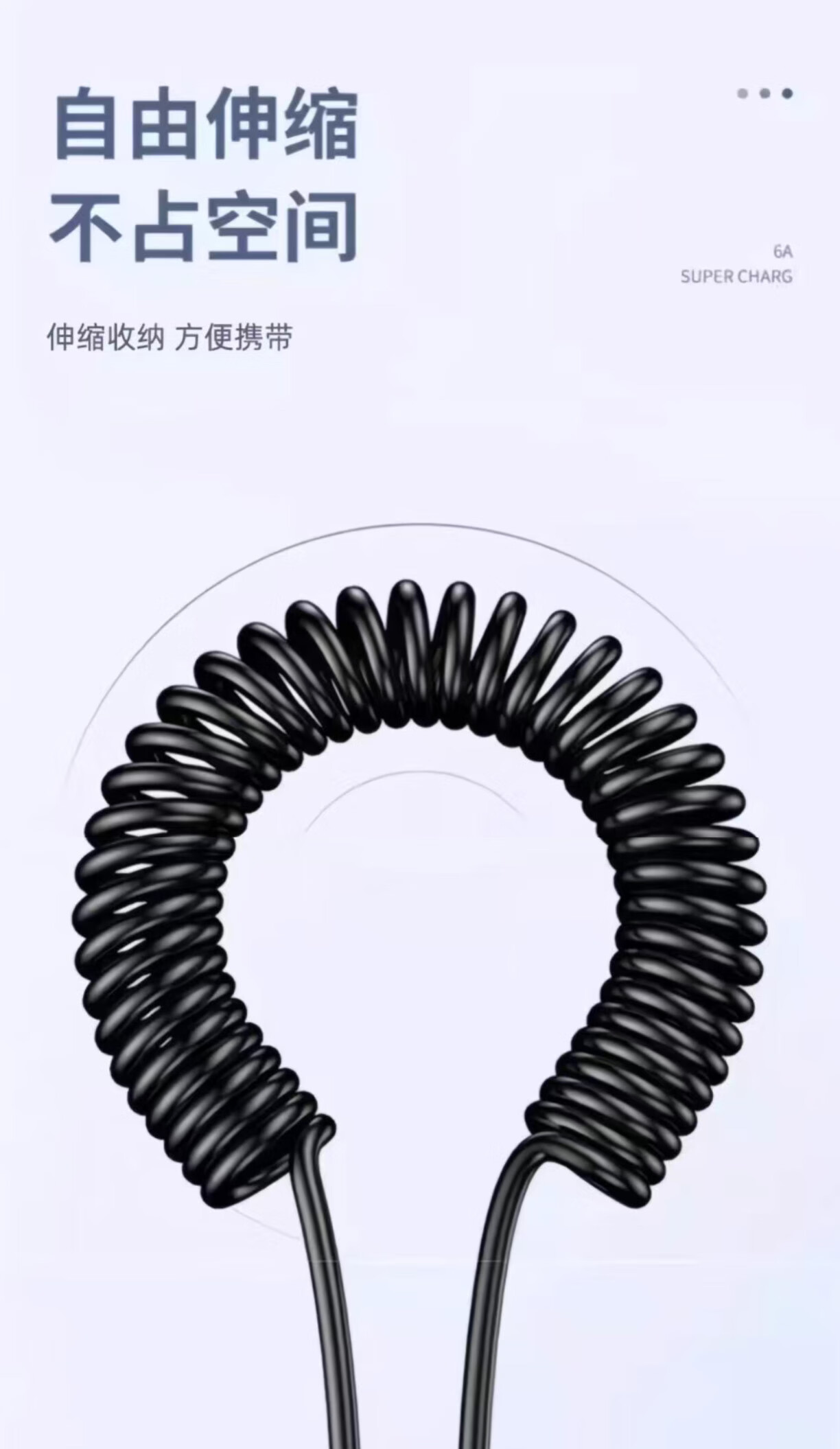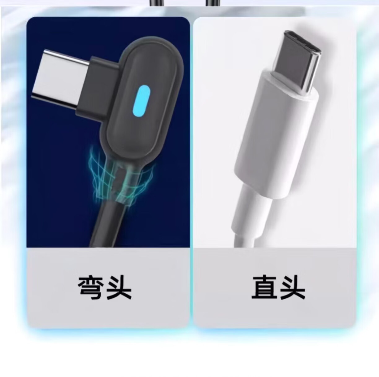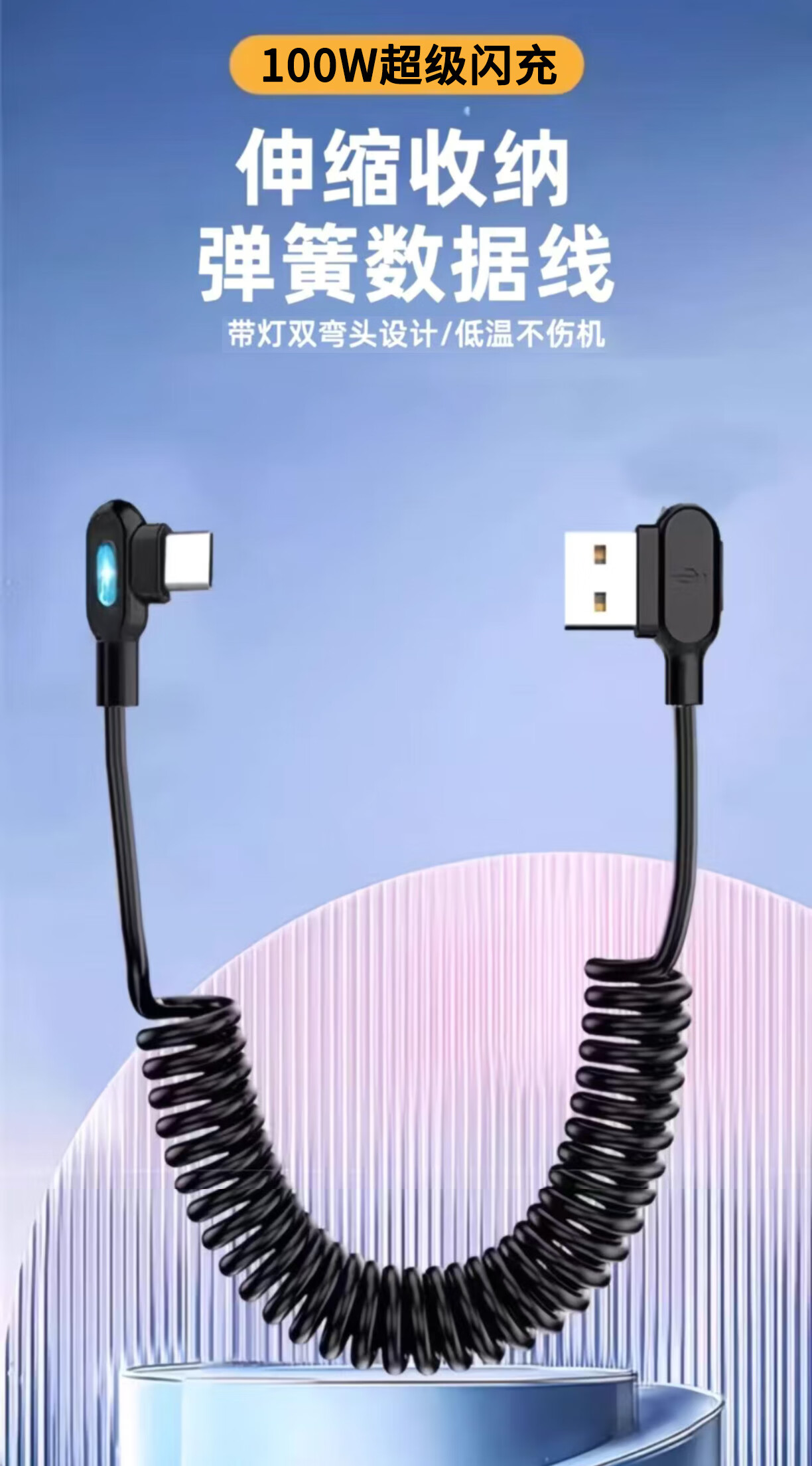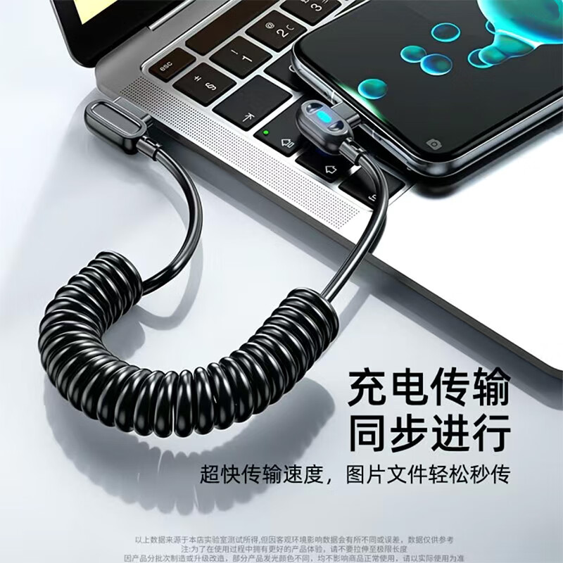 品奈优双弯头弹簧线Type-c手机数据线6A超级闪充适用华为p80荣耀Magic7/Nova13pro快充电线车载 【最长拉伸至1.8米】带灯光/弹簧快充线