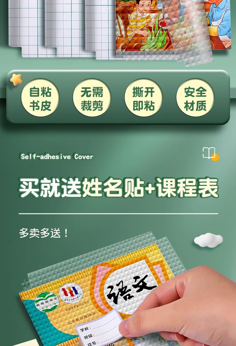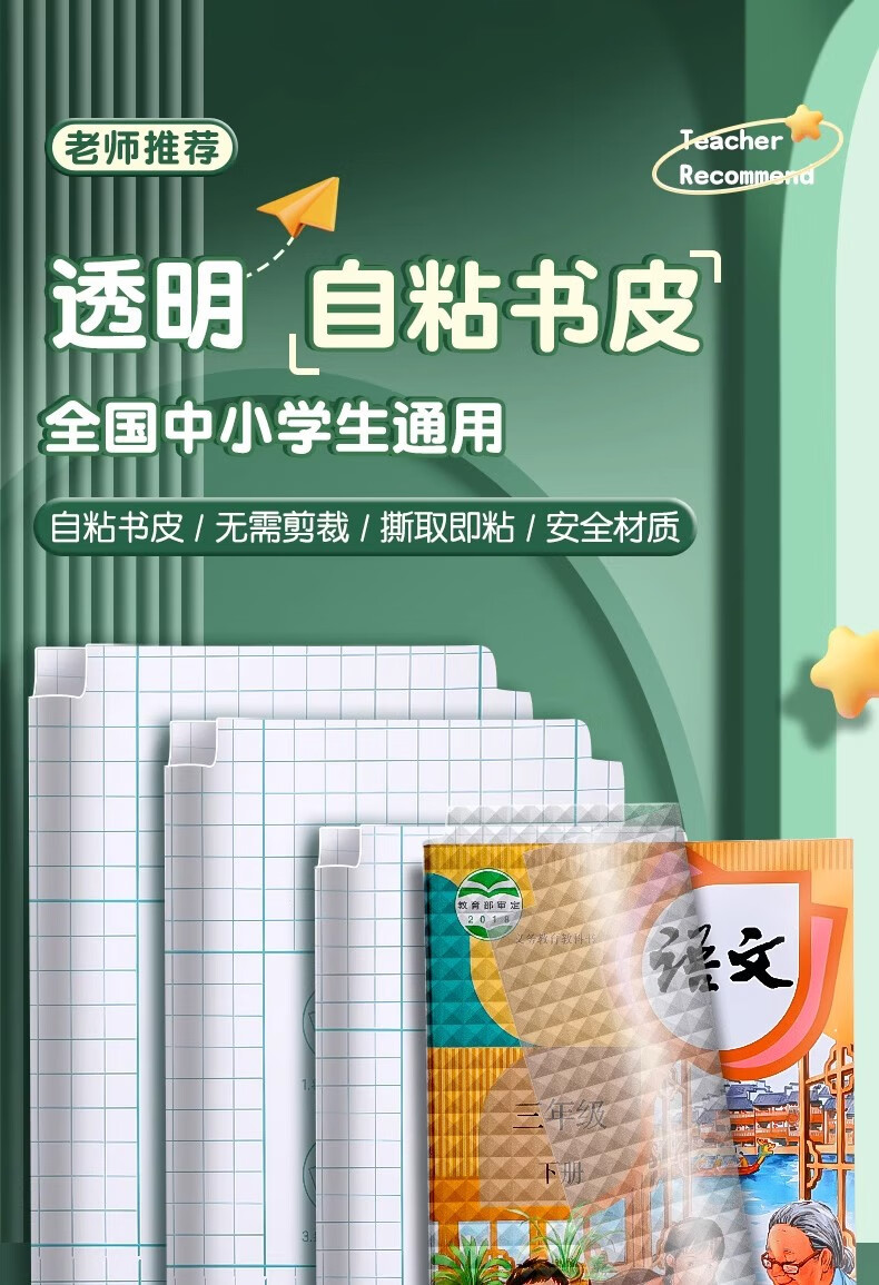 一树梨花 书皮自粘透明磨砂包书皮 小学生一年级包书膜二三年初中生a4书套16k课本保护套作业本书壳 【开学推荐】30张/大10中10小10/送姓名贴