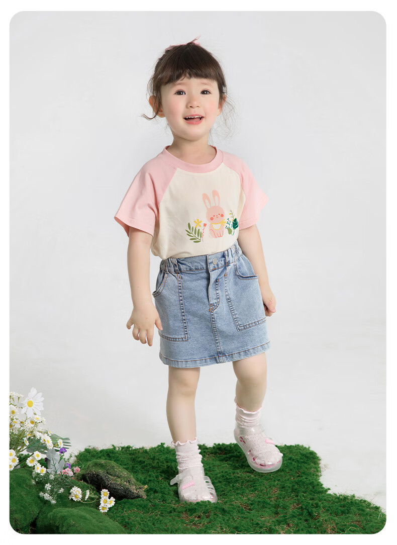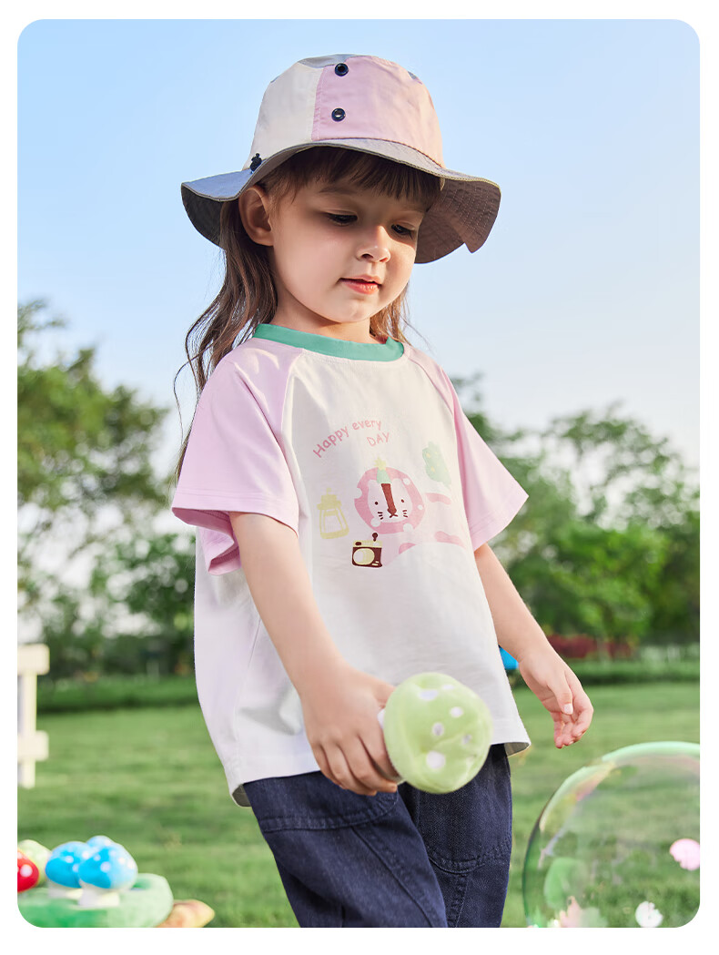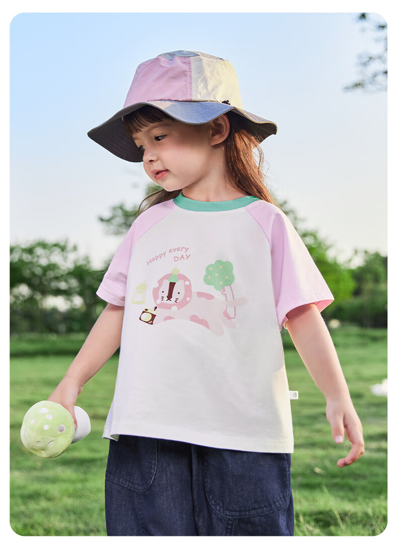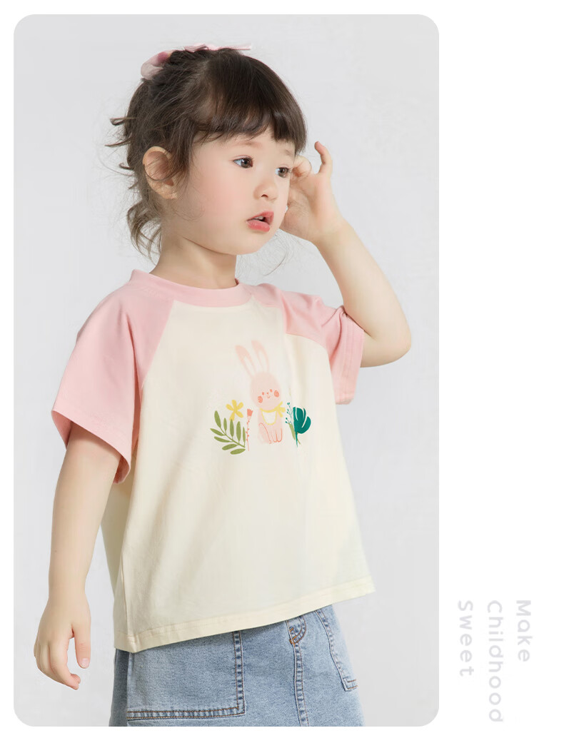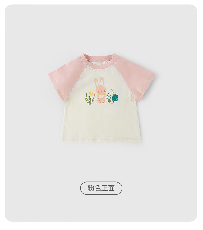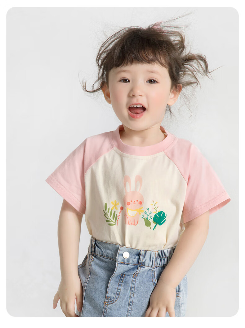 JELLYBABY儿童夏装短袖t恤男童夏季休闲卡通衣服女宝薄款童装6宝宝夏日上衣 粉色 100