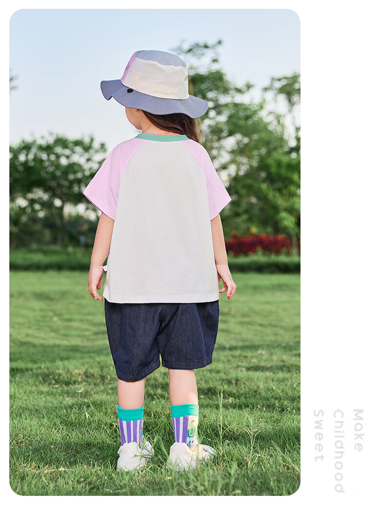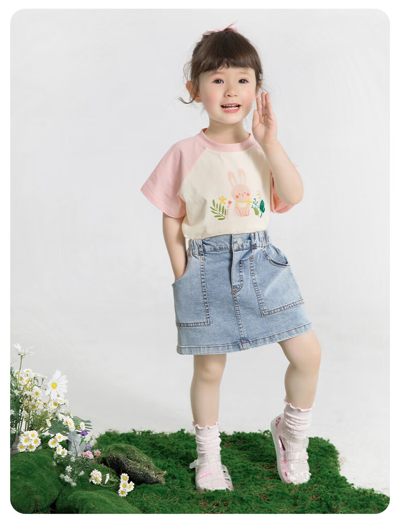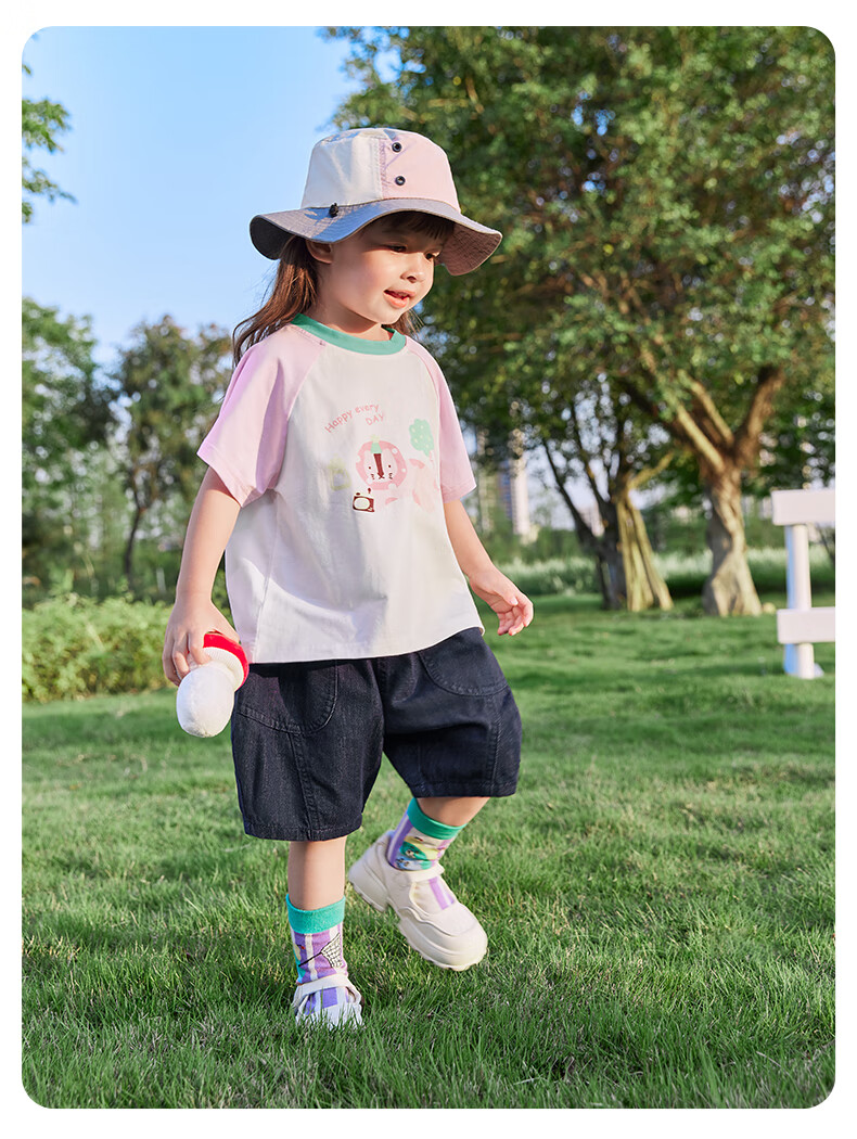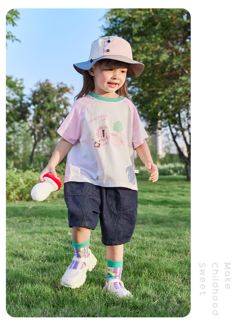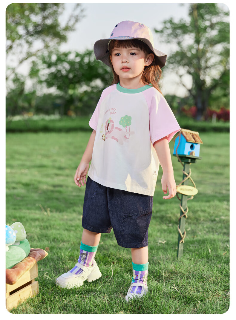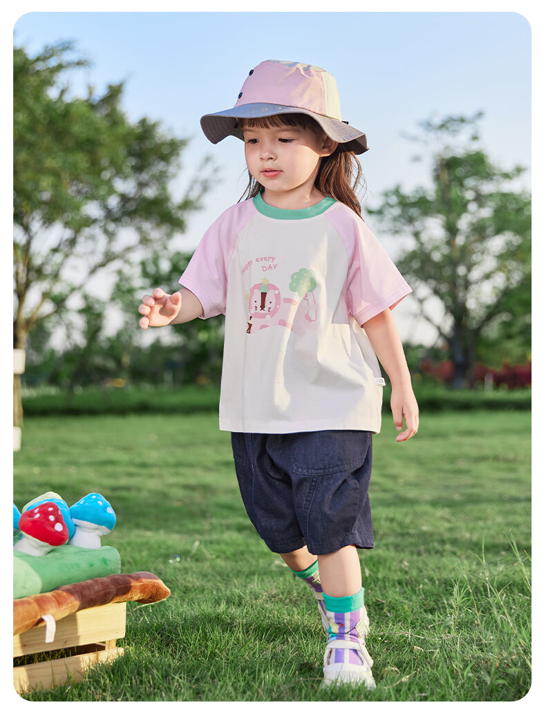 JELLYBABY儿童夏装短袖t恤男童夏季休闲卡通衣服女宝薄款童装6宝宝夏日上衣 粉色 100