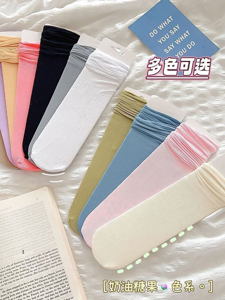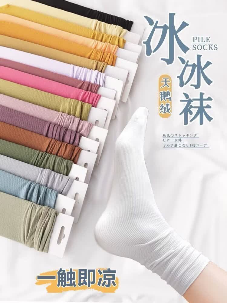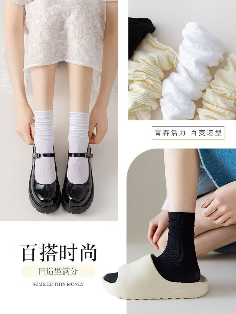 雅鹿白色堆堆袜女夏季薄款中筒袜子抗菌防臭冰冰袜日系百搭无骨月子袜 8白色+6米白+6黑色【20双】 均码 雅鹿 10A抑菌/高弹透气/抗起球
