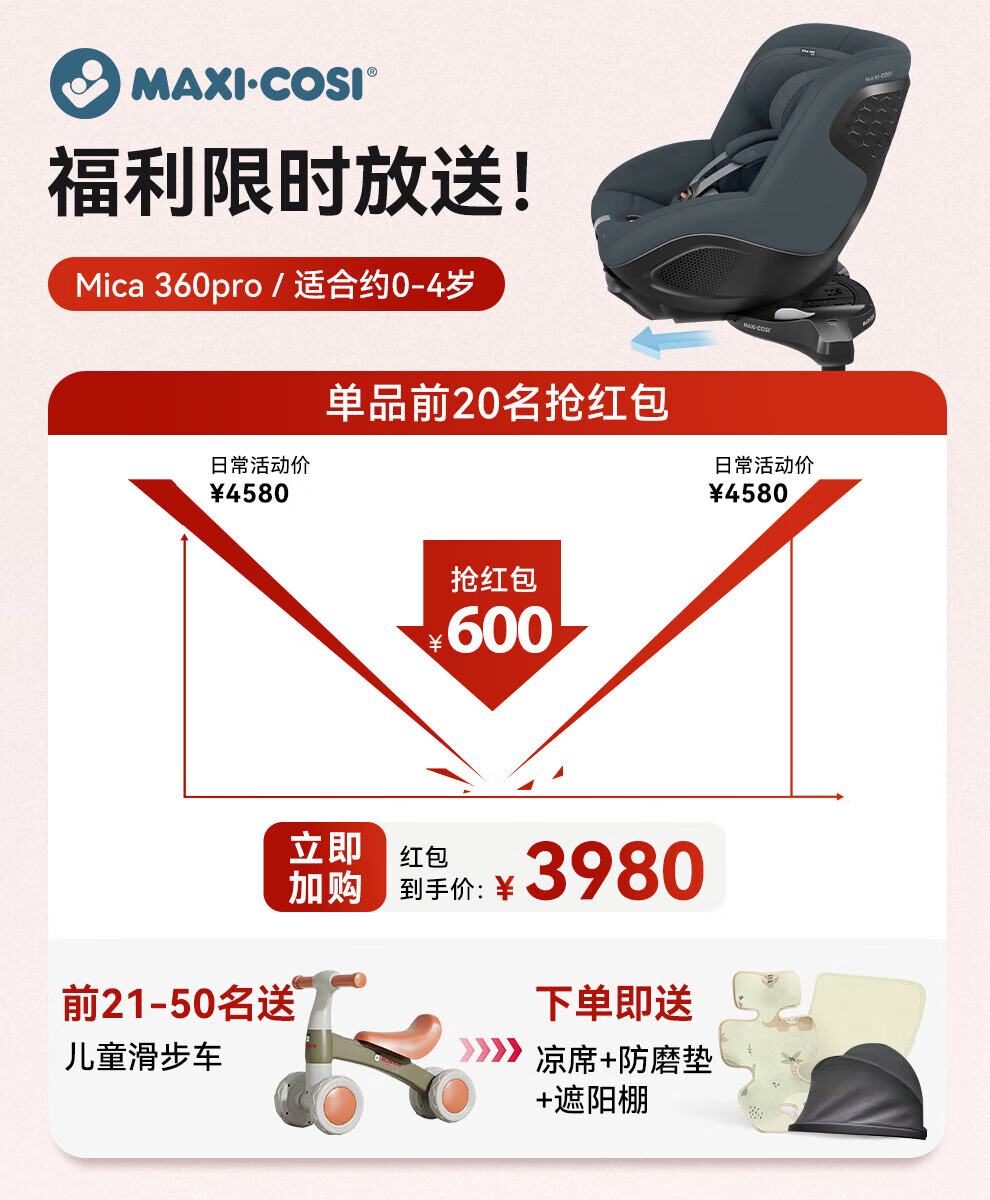 迈可适儿童汽车安全座椅0至4岁mica360pro宝宝婴儿车载可坐可躺maxicosi 月影棕【0-4岁/ADAC冠军 】Mica360Pro】