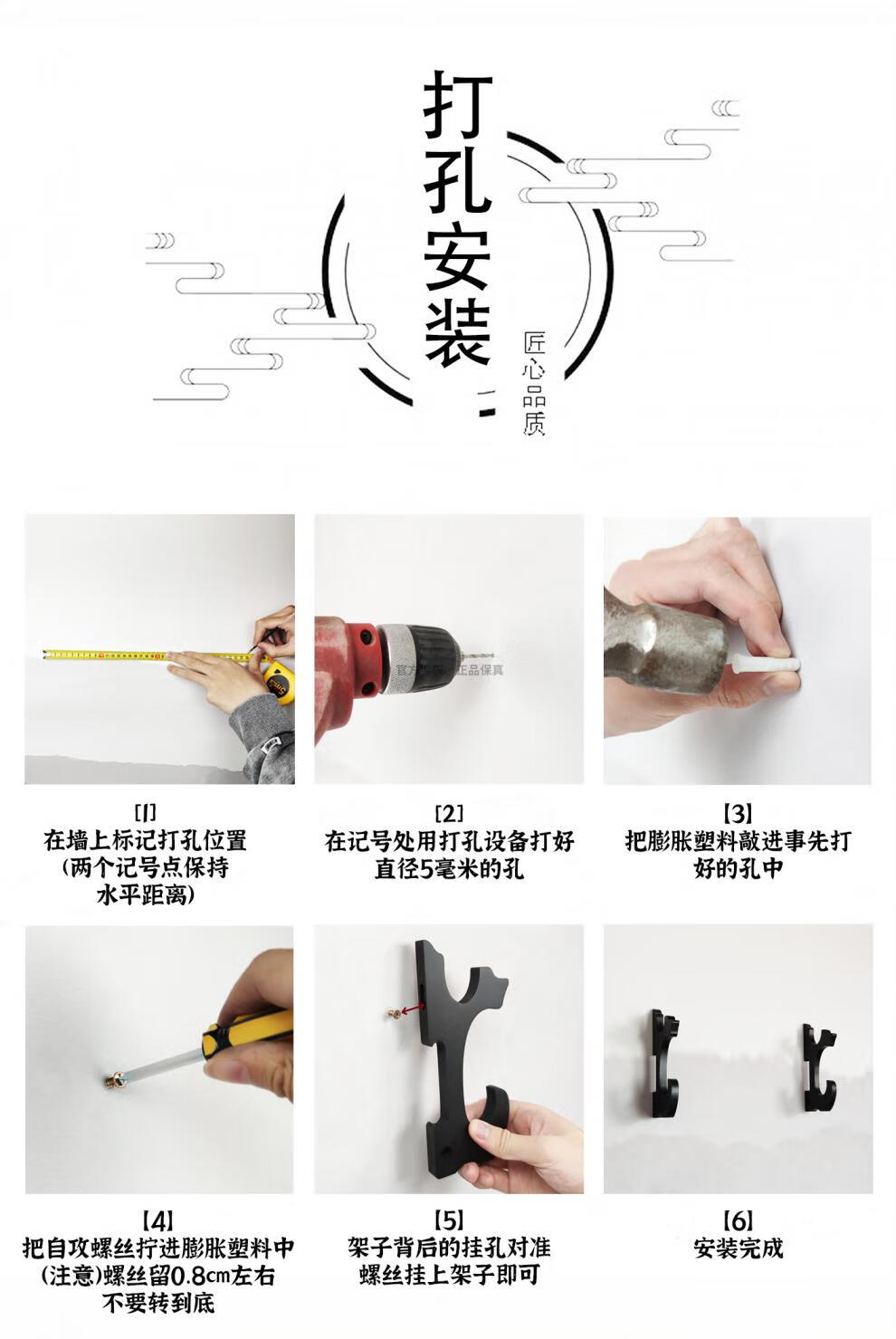 希格鲨分离式挂墙刀剑架可调节刀架剑架壁挂式兵器架子笛箫架挂钩款剑钩 胡桃色贴绒挂钩2层+免钉贴