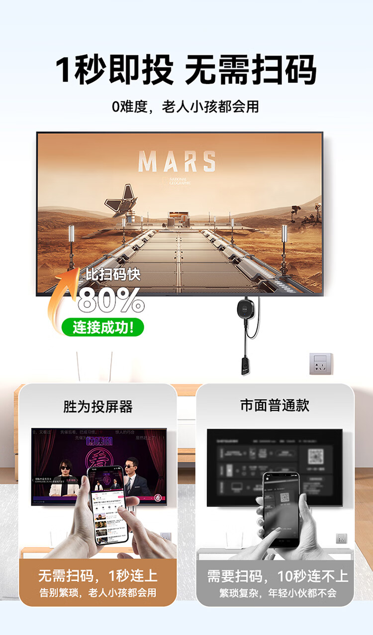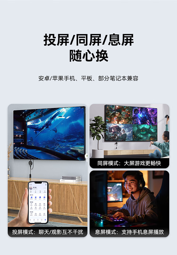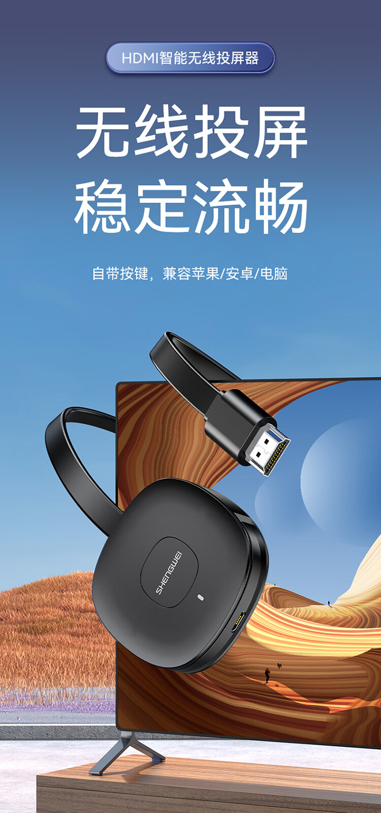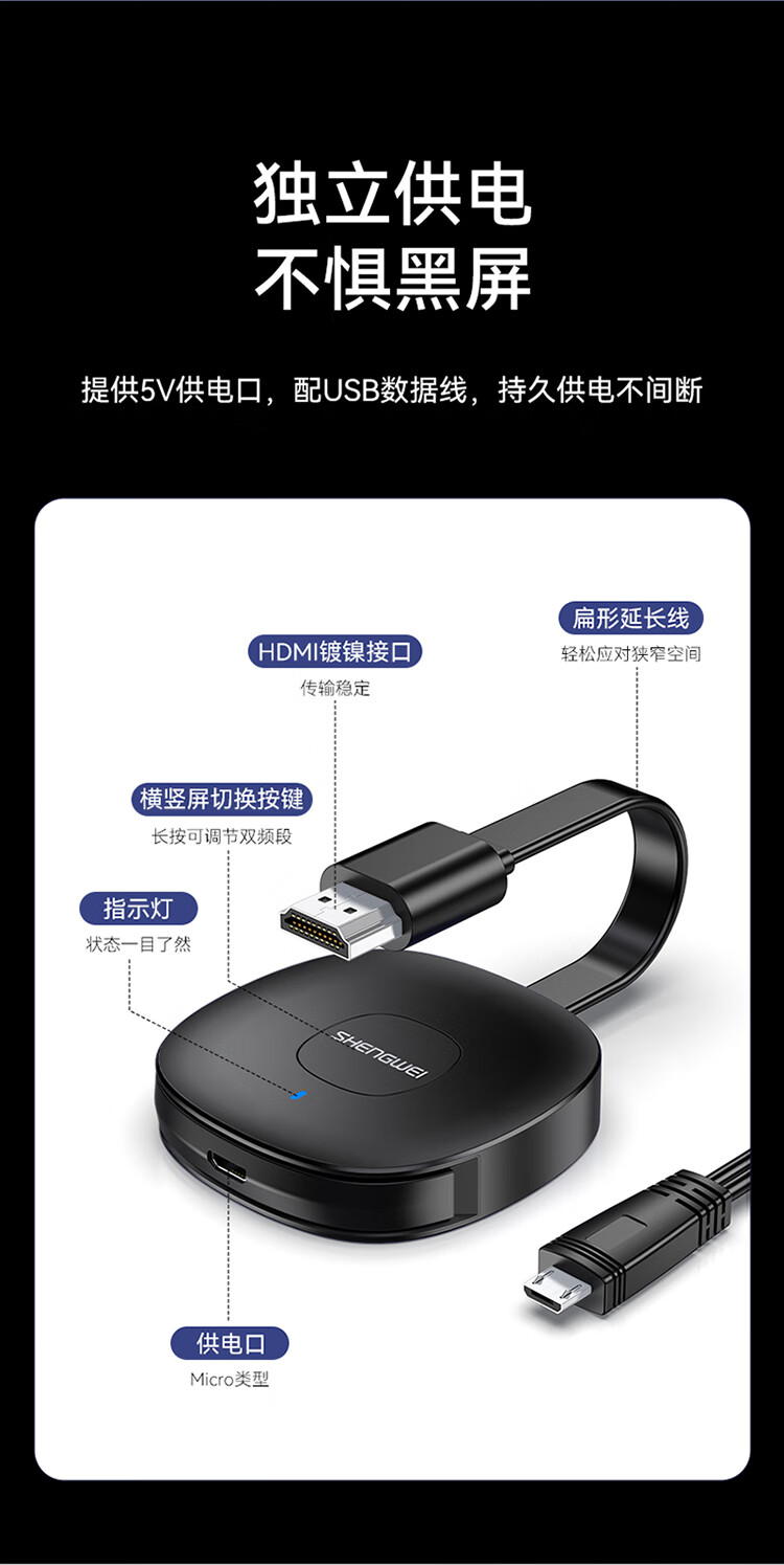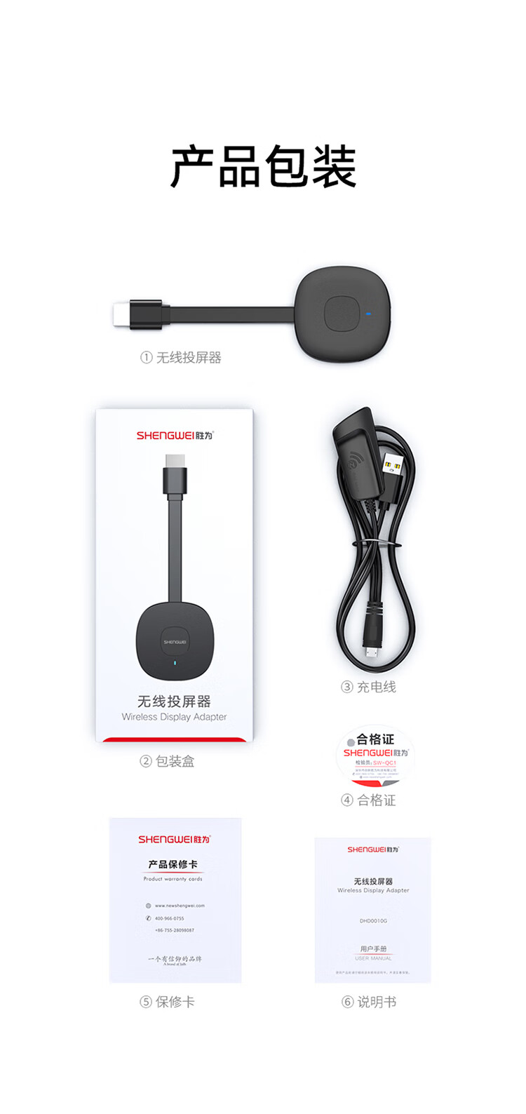 胜为手机无线投屏器 5G横竖屏音视频同屏万能神器 支持苹果安卓手机笔记本电脑连接电视 DHD0010G