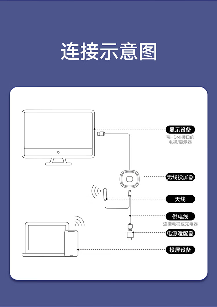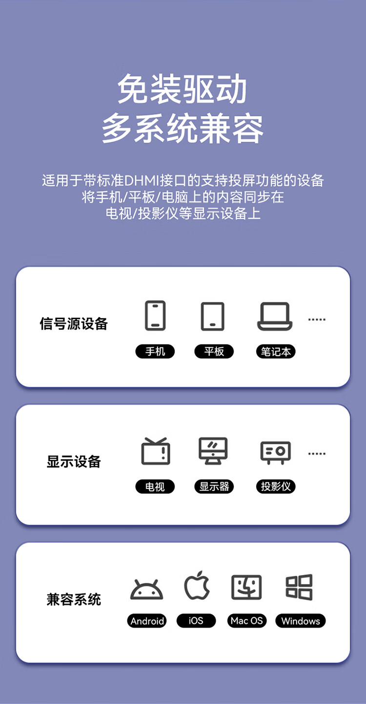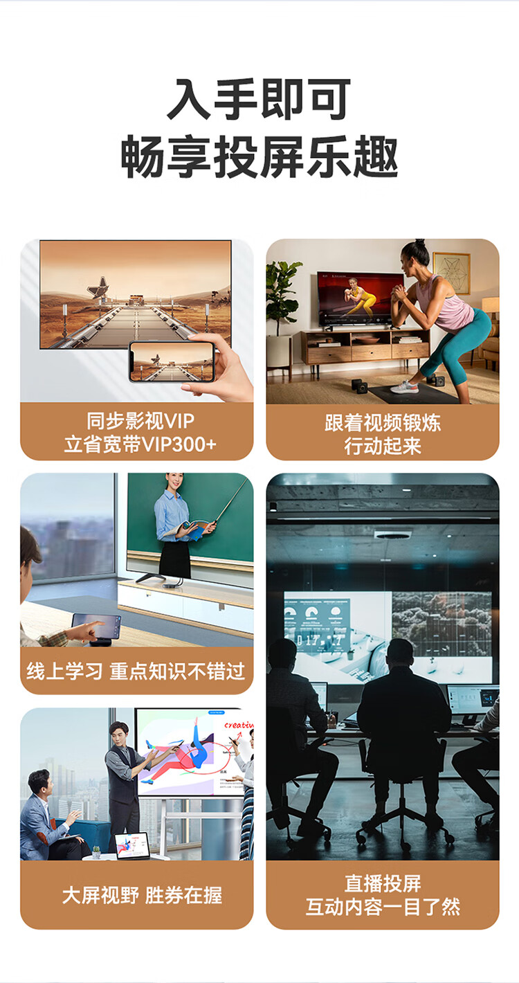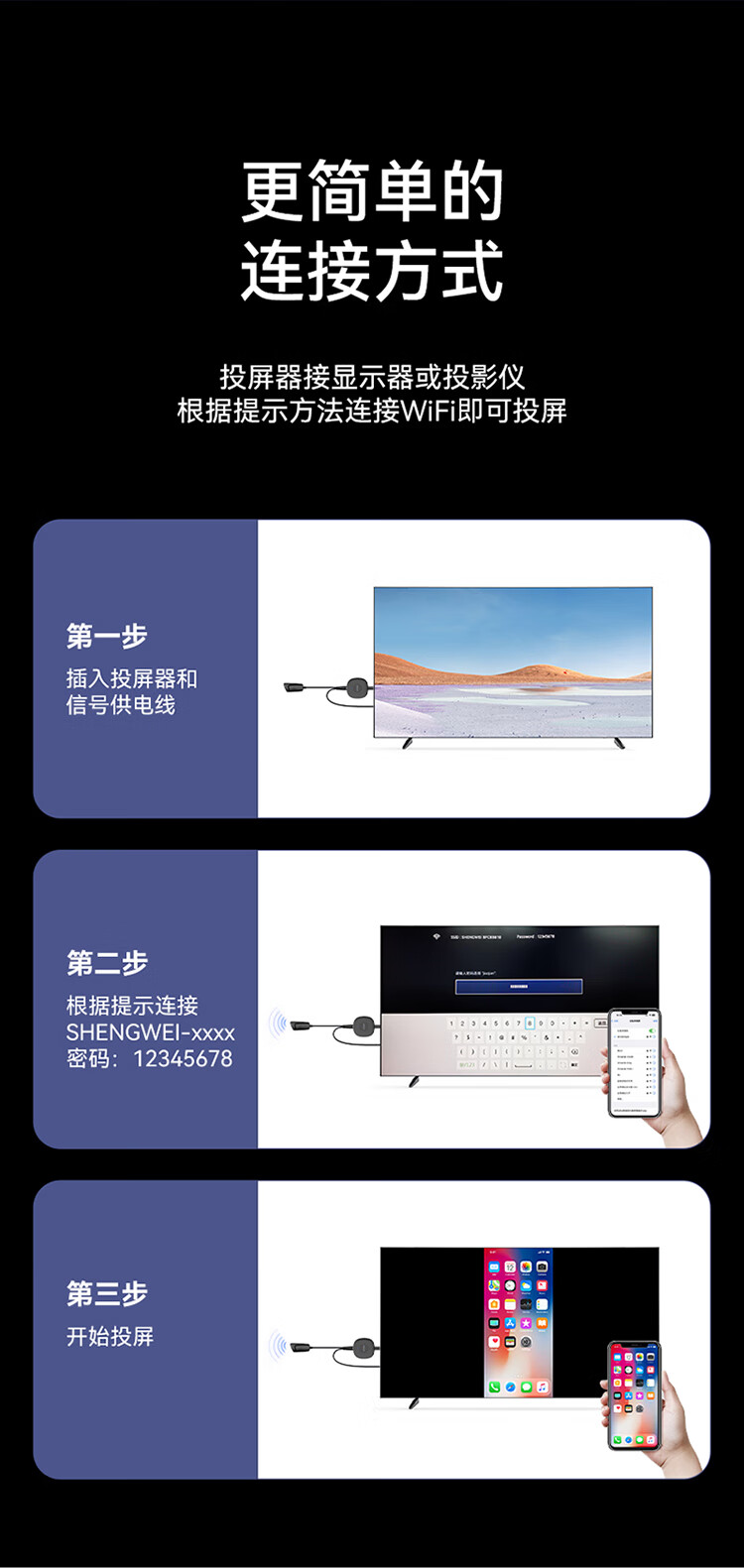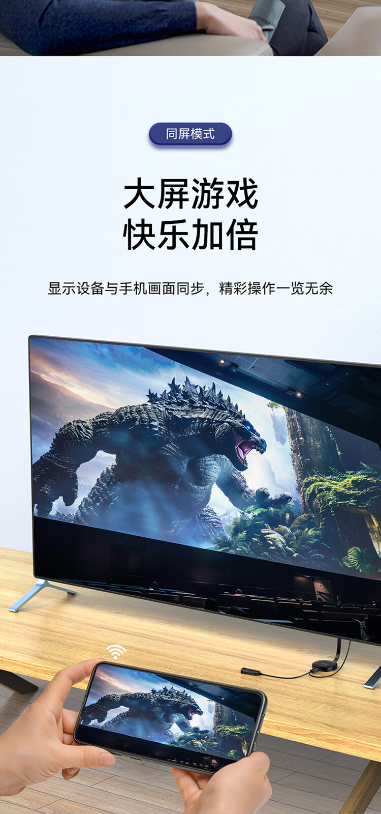 胜为手机无线投屏器 5G横竖屏音视频同屏万能神器 支持苹果安卓手机笔记本电脑连接电视 DHD0010G