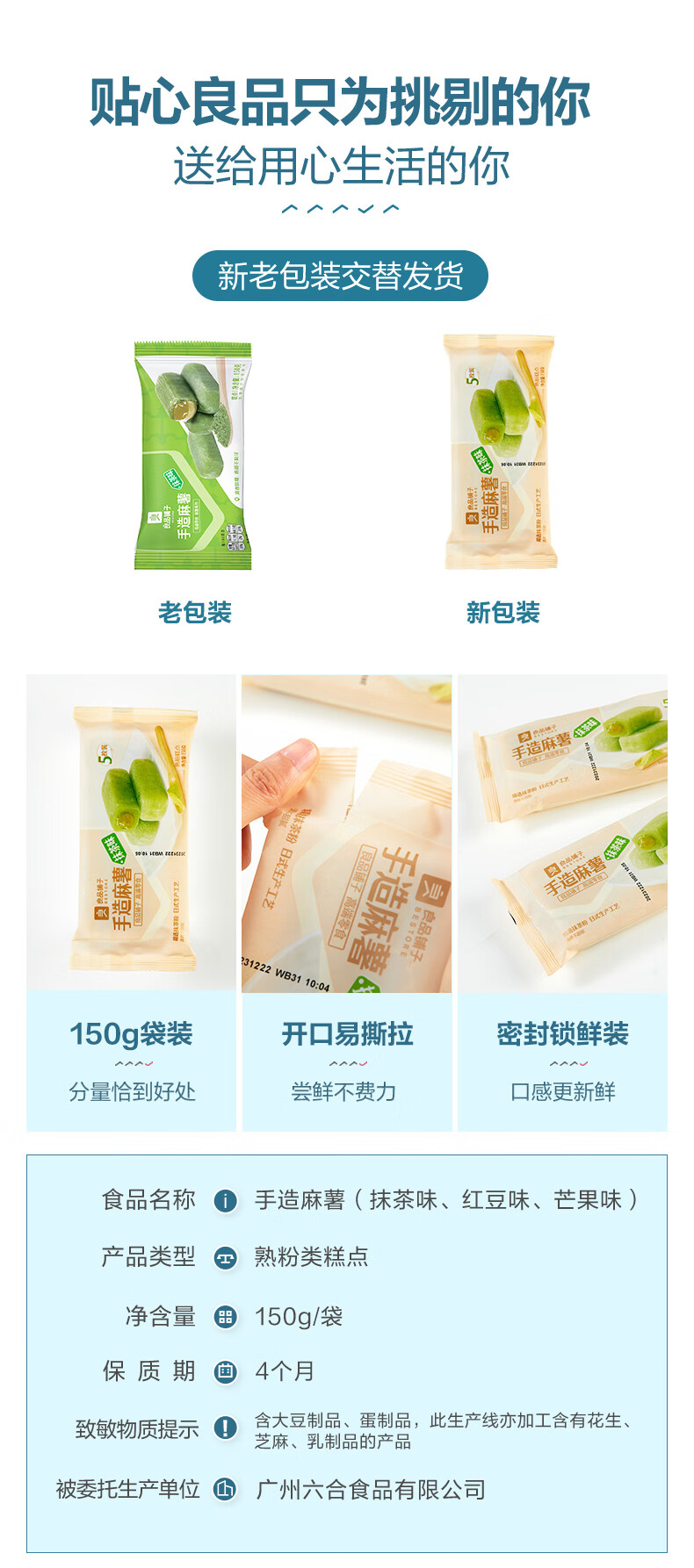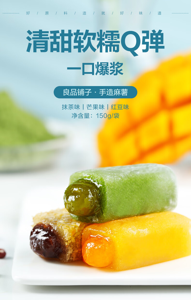 良品铺子 手造麻薯抹茶味手工点心糕点休闲零食传统糕点糯米糍早餐150g