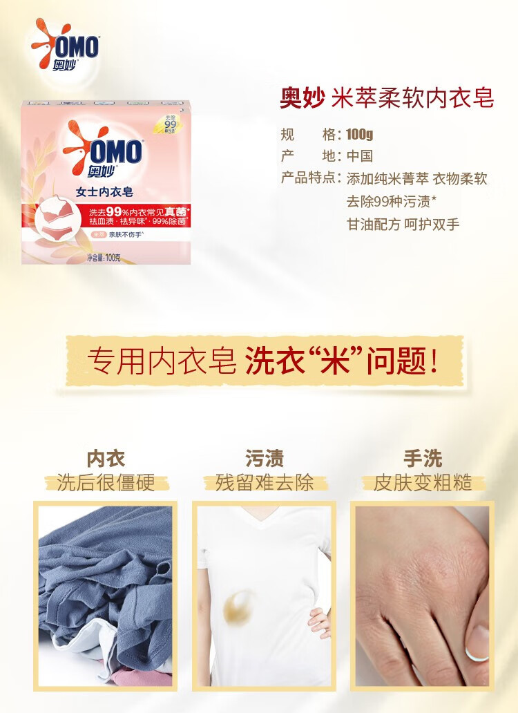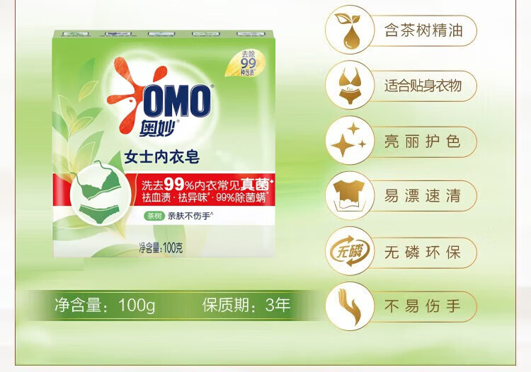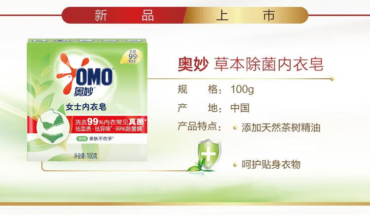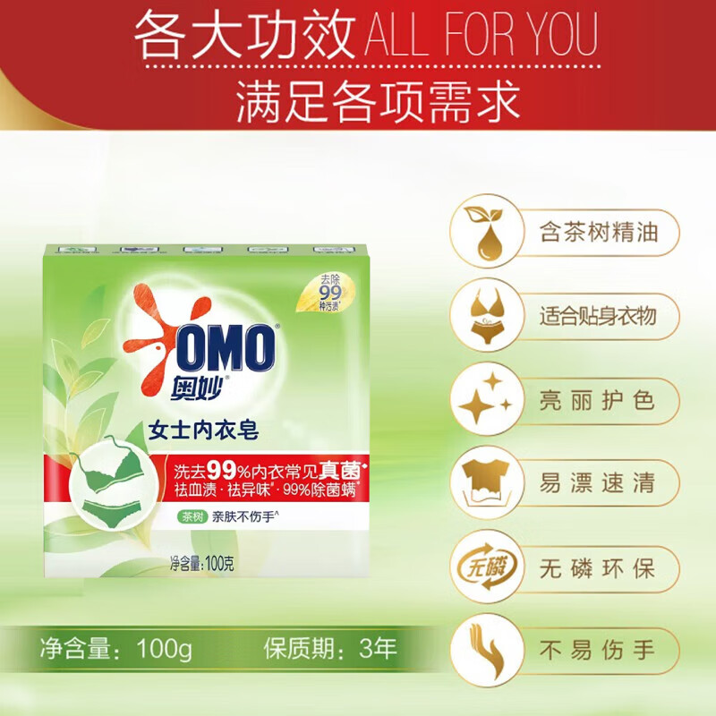 奥妙内衣皂女士内裤专用抑菌祛异味洗内裤专用皂肥皂 【超值2块】茶树100g+米萃100g