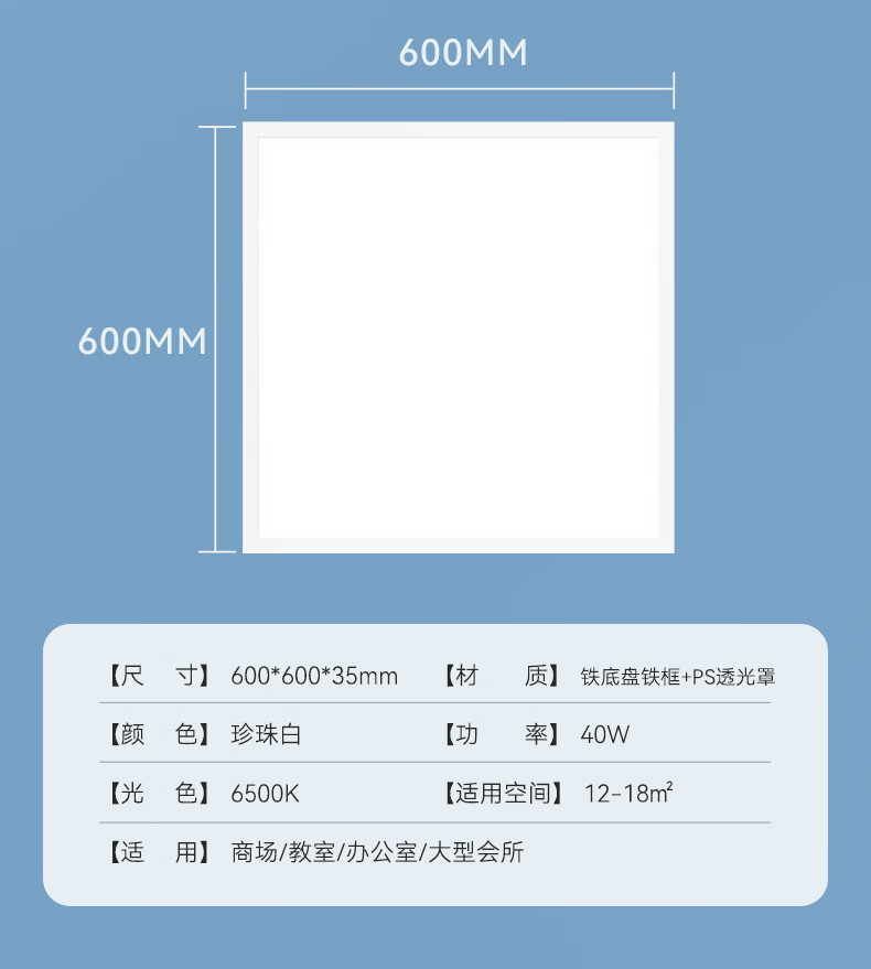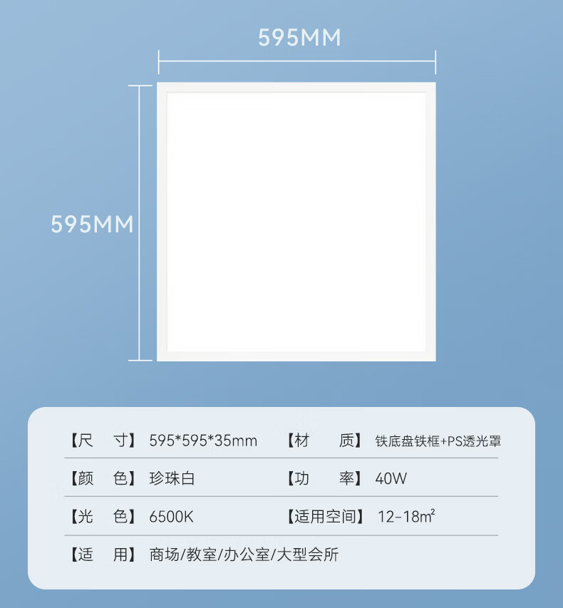 阳光照明 集成顶LED平板灯 600x600工程办公室面板灯 焕新补贴灯具 【6只起售 物流包装】595x595丨50w