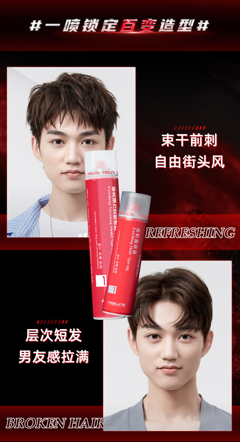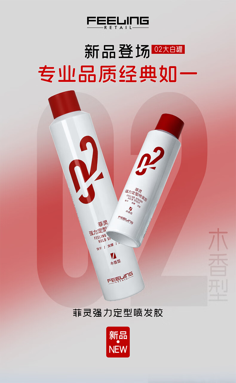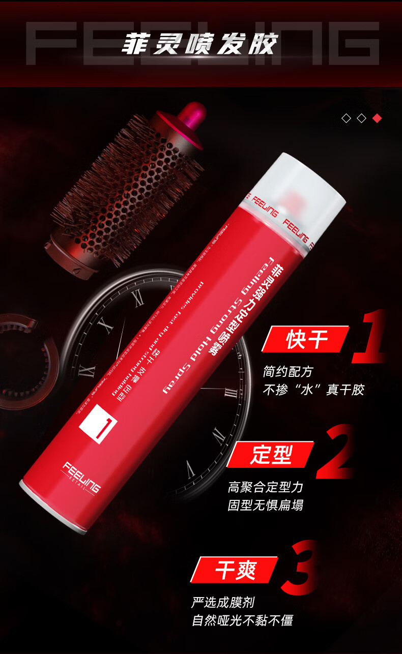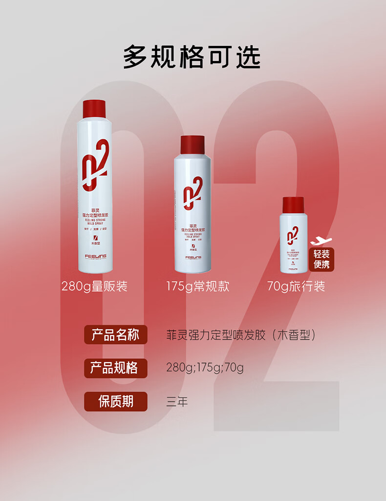 菲灵(FEELING)【小红帽】02强力定型喷发胶男女士自然蓬松持久清香头发造型干胶 【3瓶囤货装】发胶400ml*3