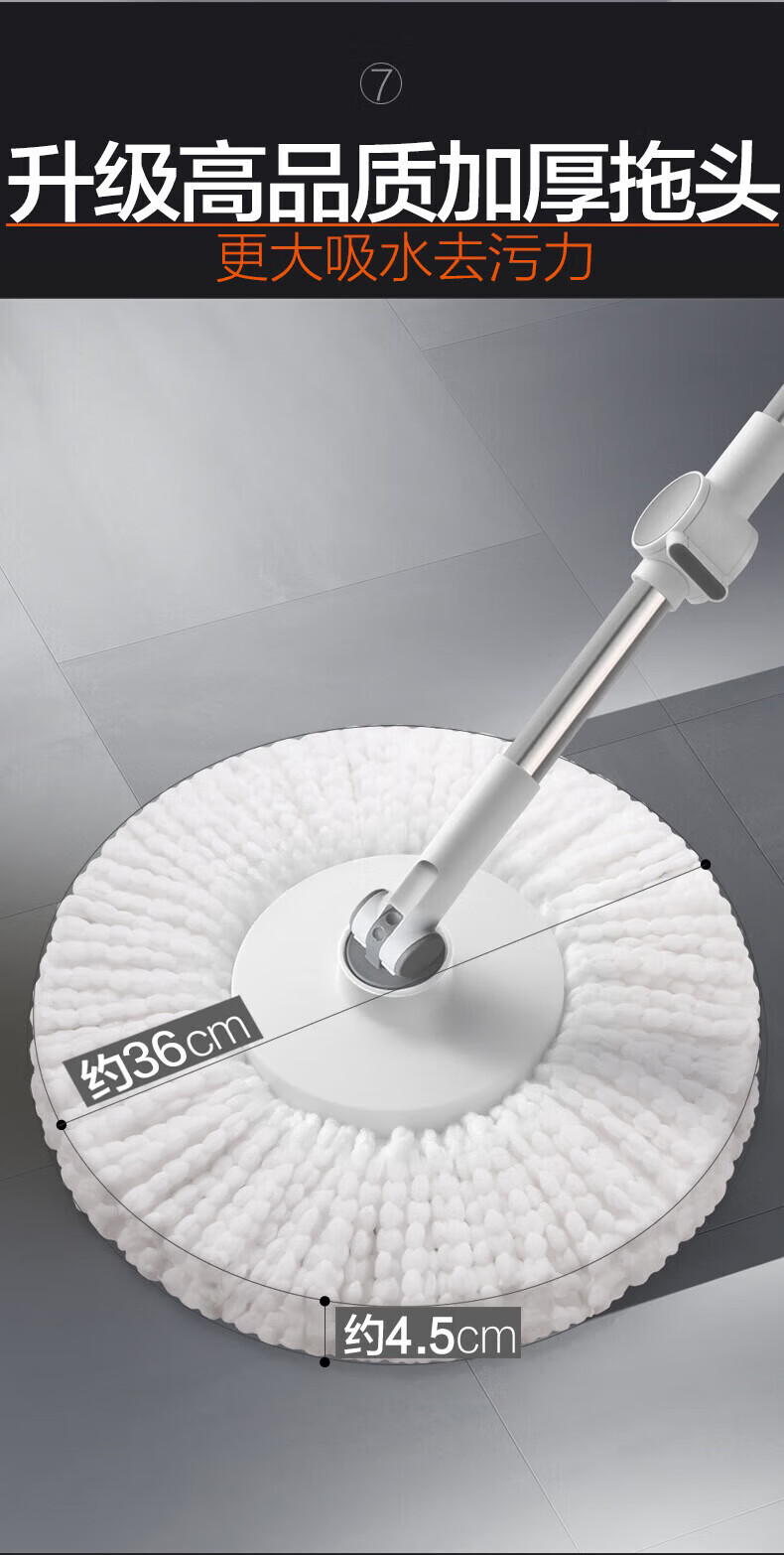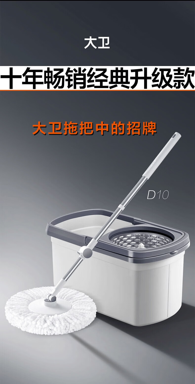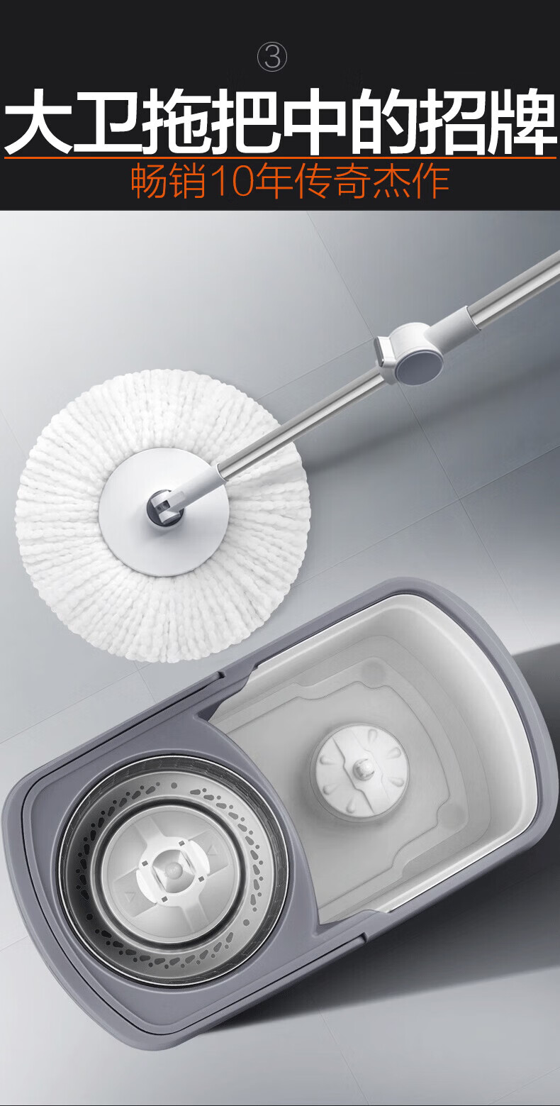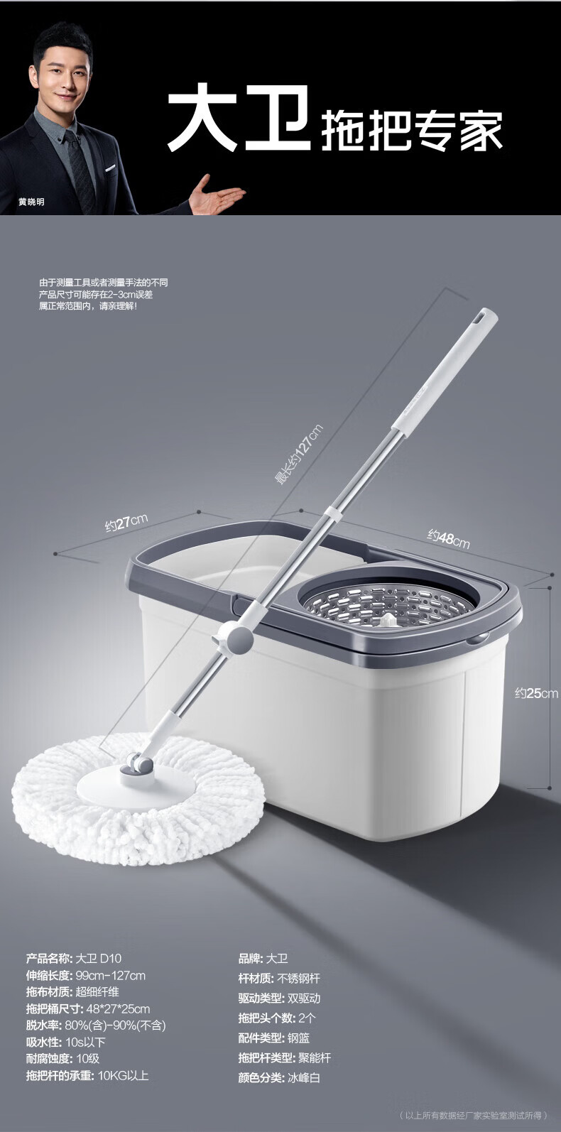 大卫旋转拖把36cm杆伸缩99-127cm 2头加厚拖布 D10双驱动免手洗