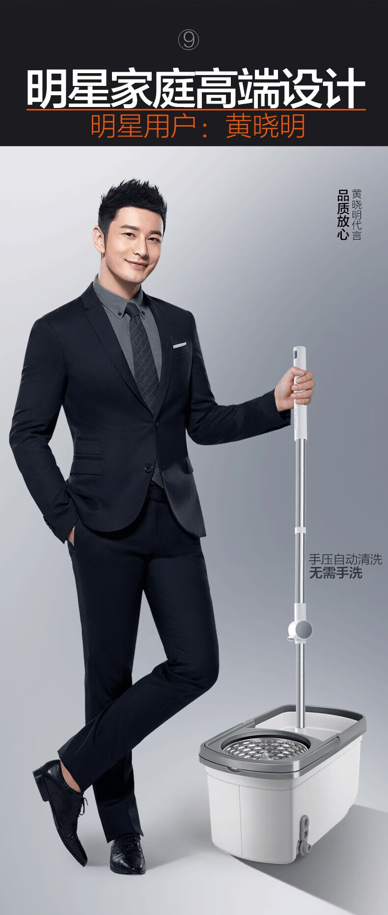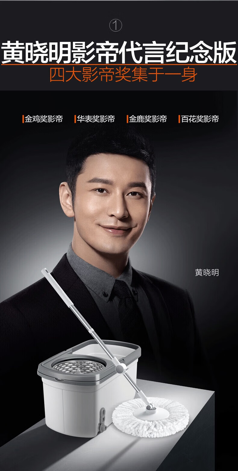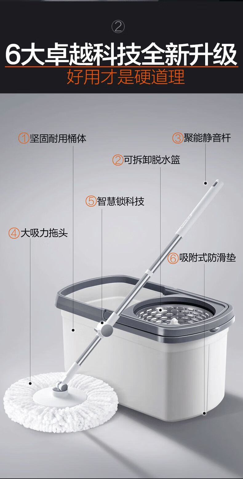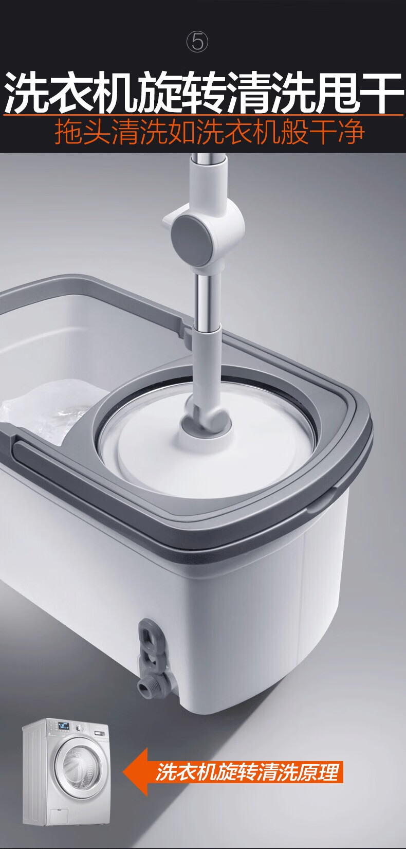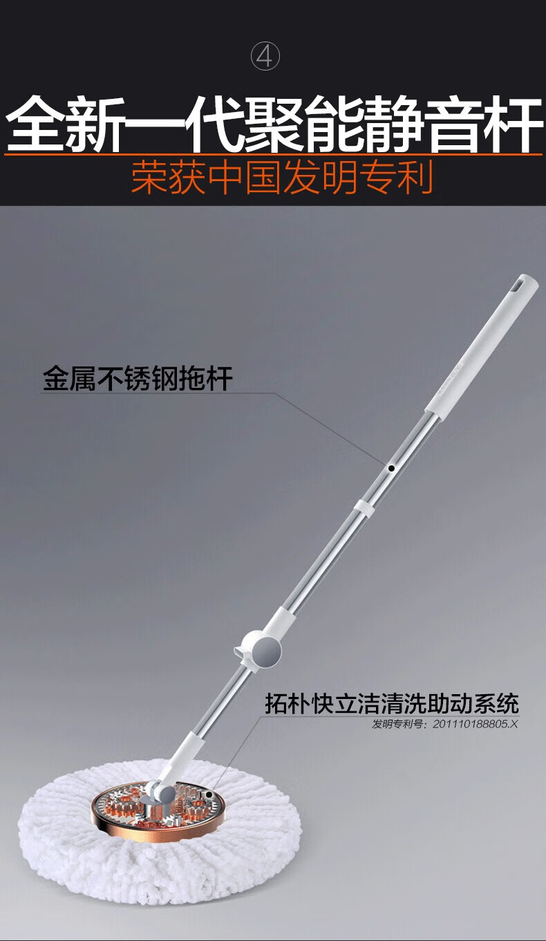 大卫旋转拖把36cm杆伸缩99-127cm 2头加厚拖布 D10双驱动免手洗