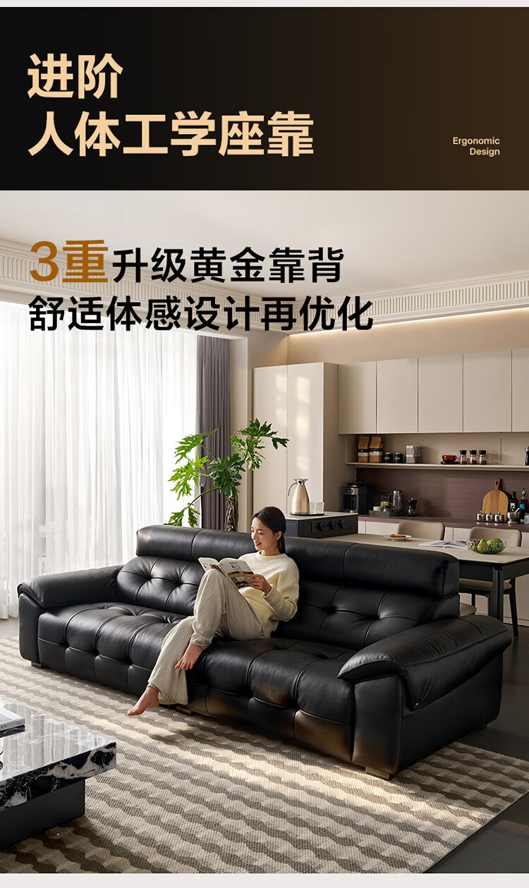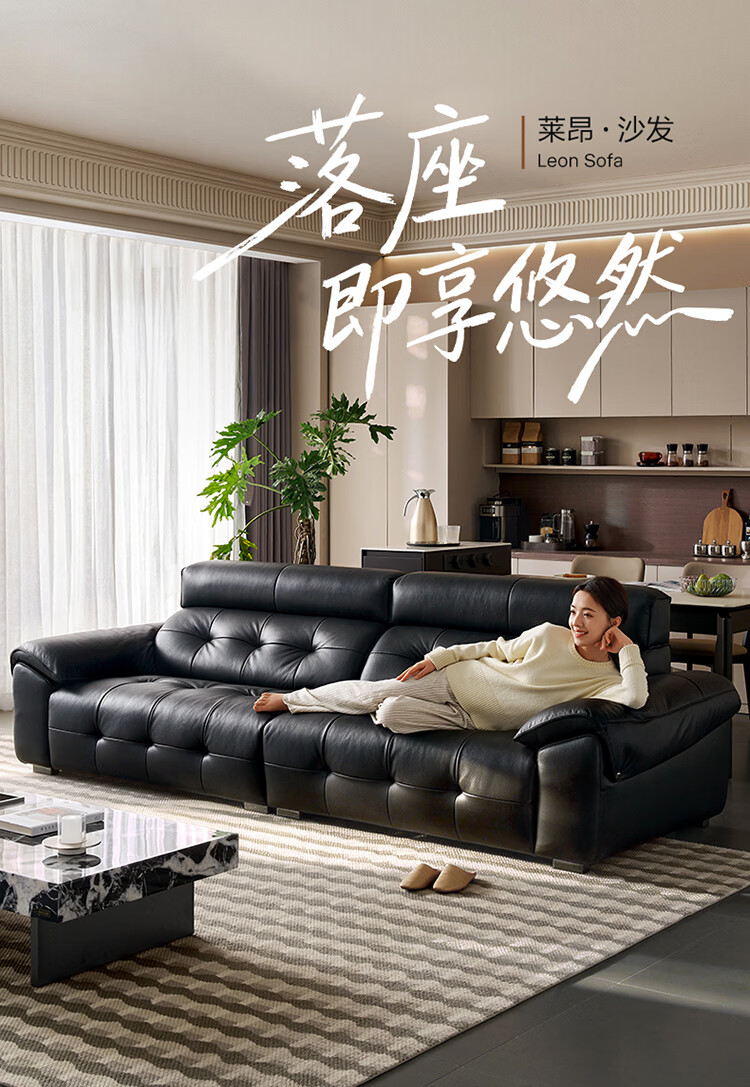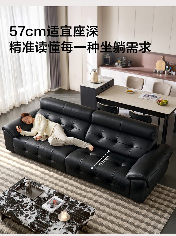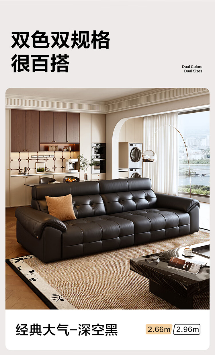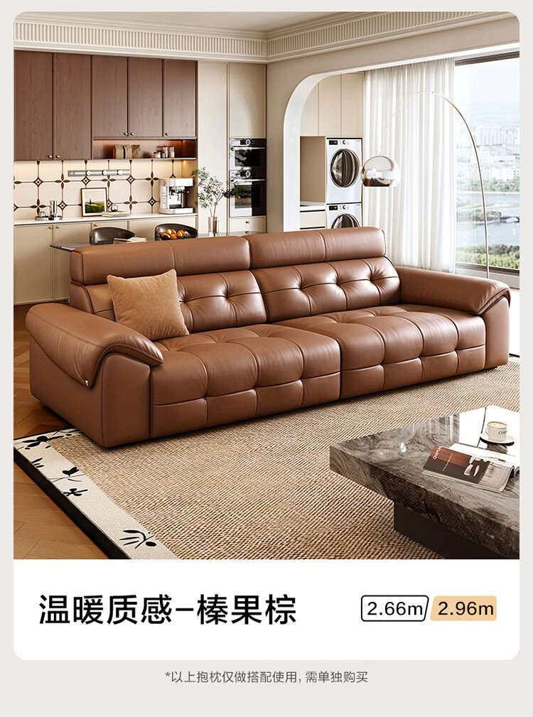 全友家居现代极简风真皮沙发客厅轻奢高级感2026新款头层牛皮直排沙发 【榛果棕|牛皮】2.66m沙发