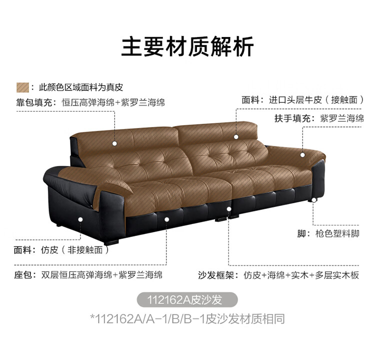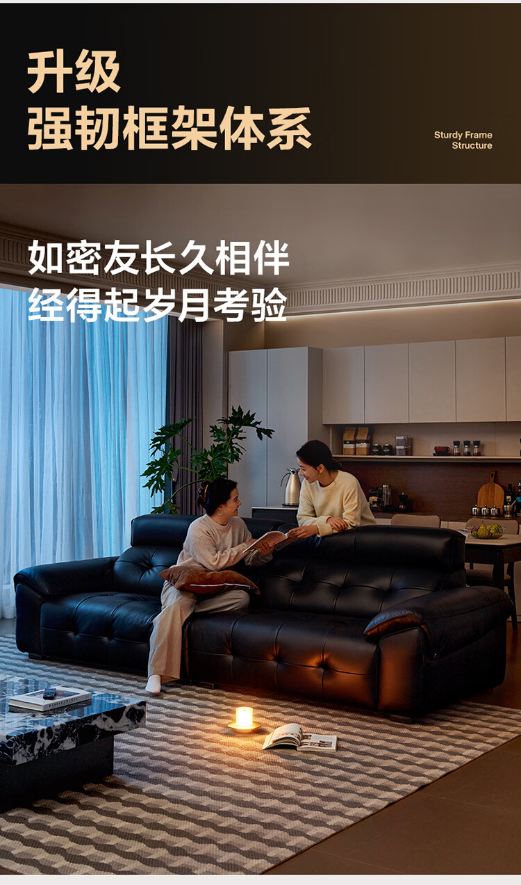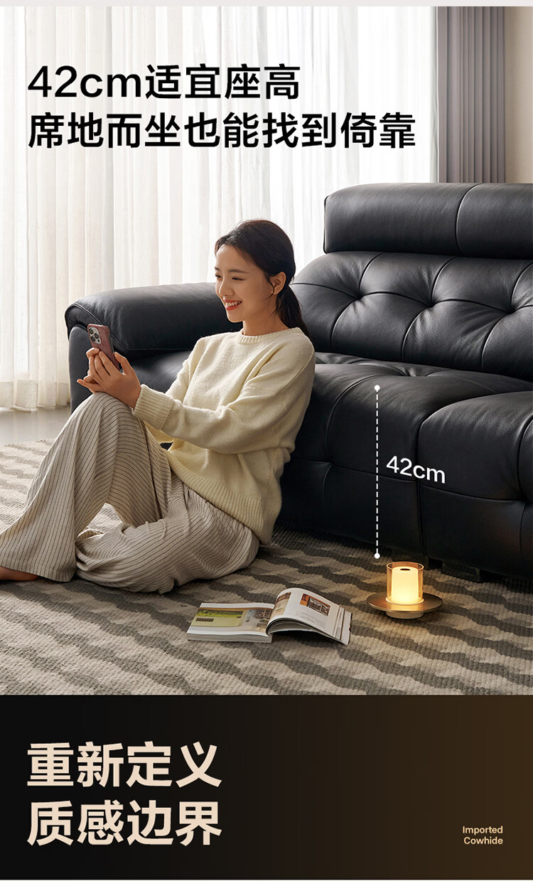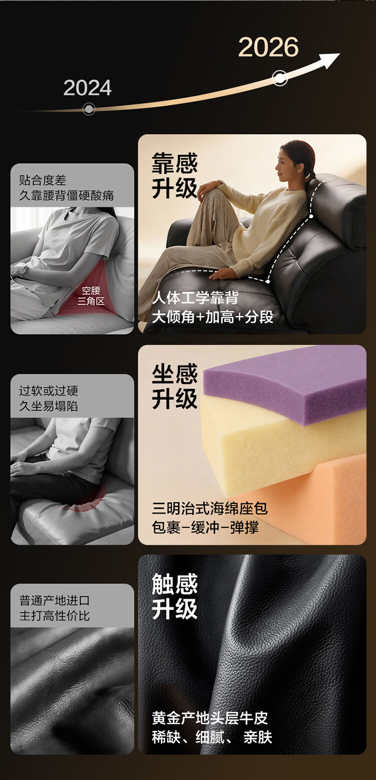 全友家居现代极简风真皮沙发客厅轻奢高级感2026新款头层牛皮直排沙发 【榛果棕|牛皮】2.66m沙发