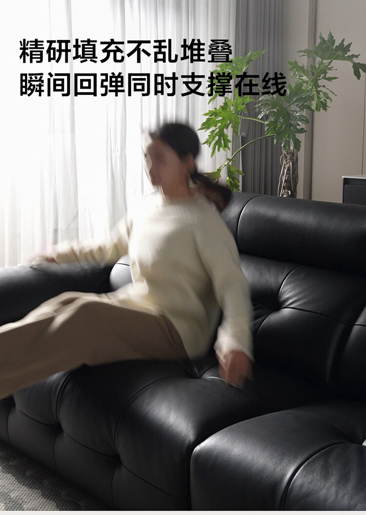 CBD家居现代简约真皮软包床双人主卧大床奶油风婚床头层牛皮甜心悬浮 甜心悬浮-水墨黑单床 卷帘排骨架 1800*2000