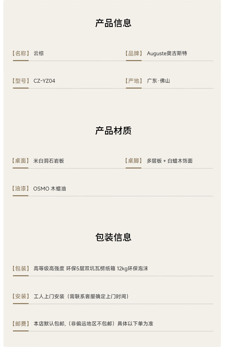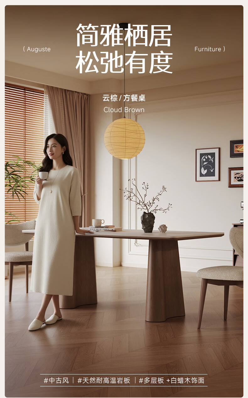 AUGUSTE奥古斯特长方形岩板餐桌洞石小户型2026新款中古风全托实木餐桌 1.8米+4椅(云棕餐桌)