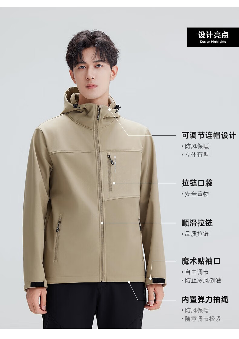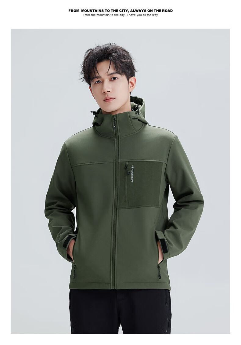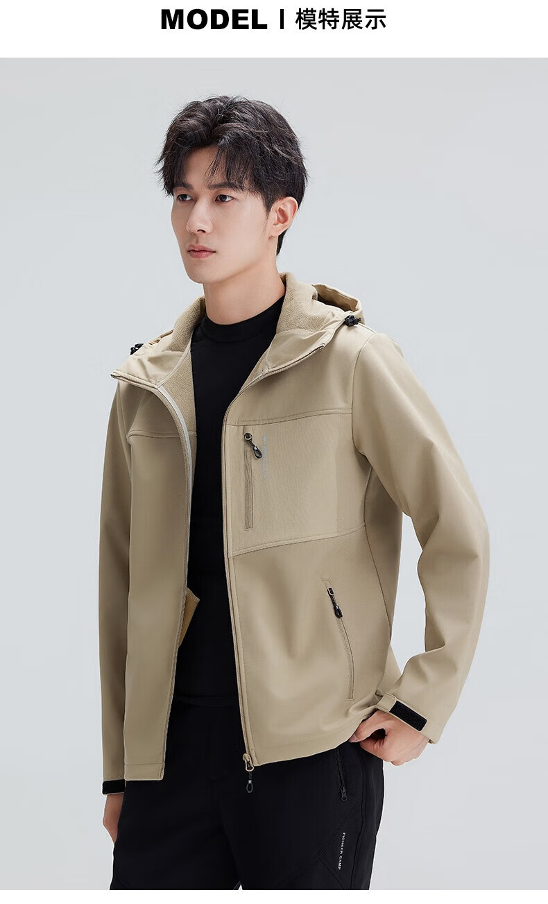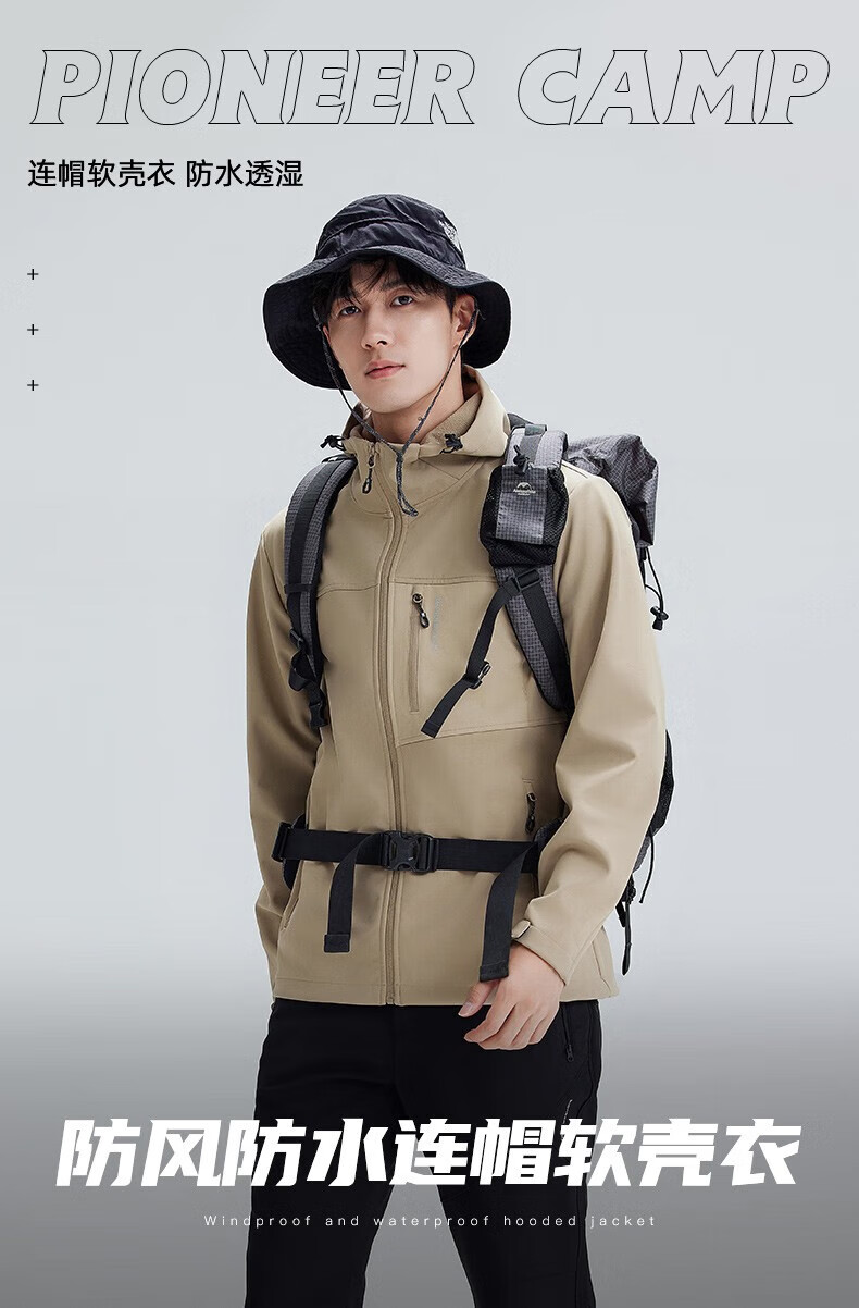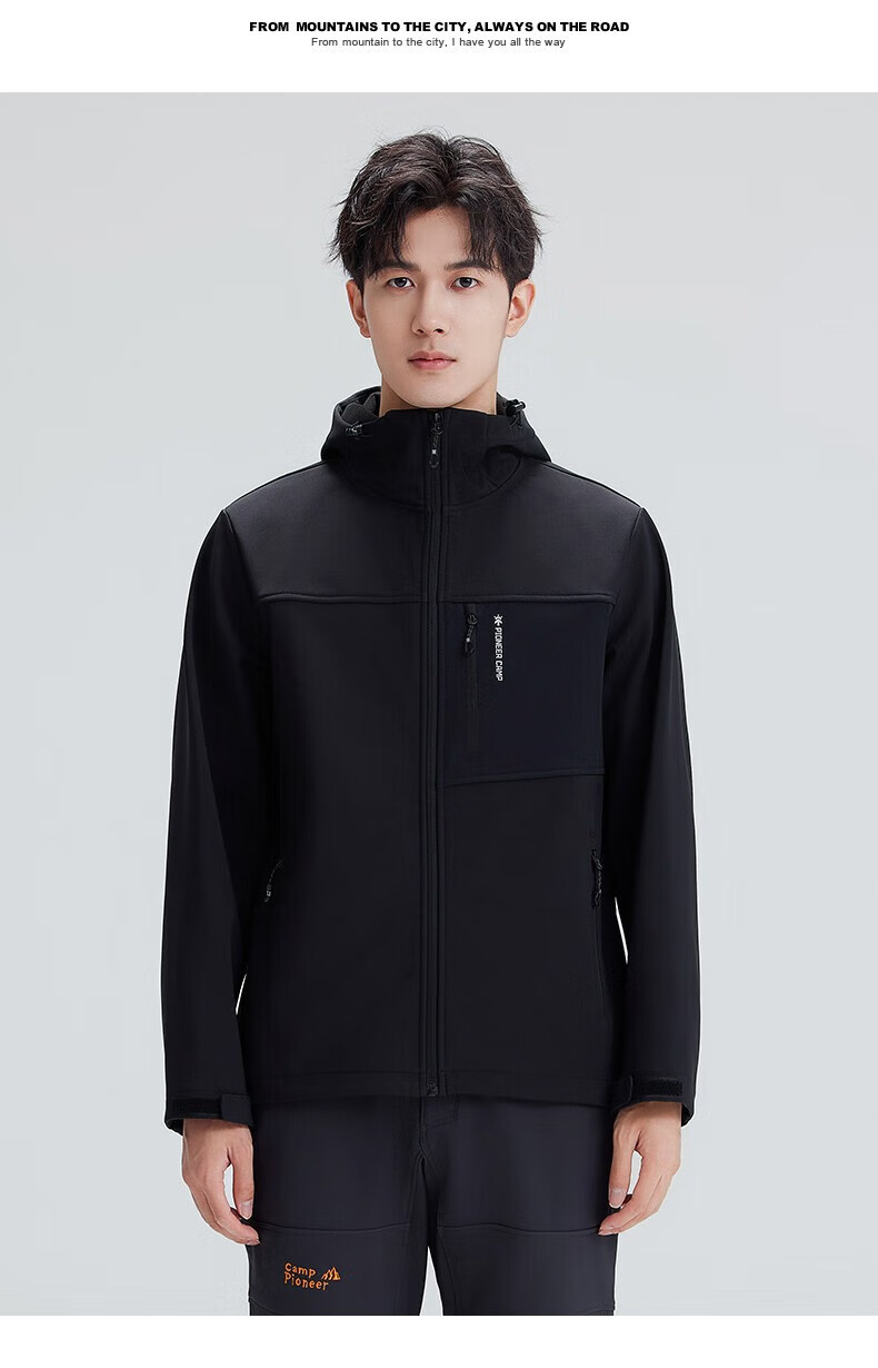 拓路者(Pioneer Camp)登山服男休闲夹克外套春季户外防风软壳衣加绒保 黑色 XL