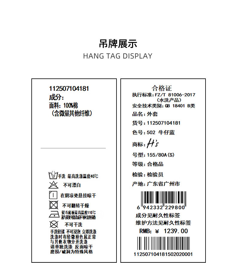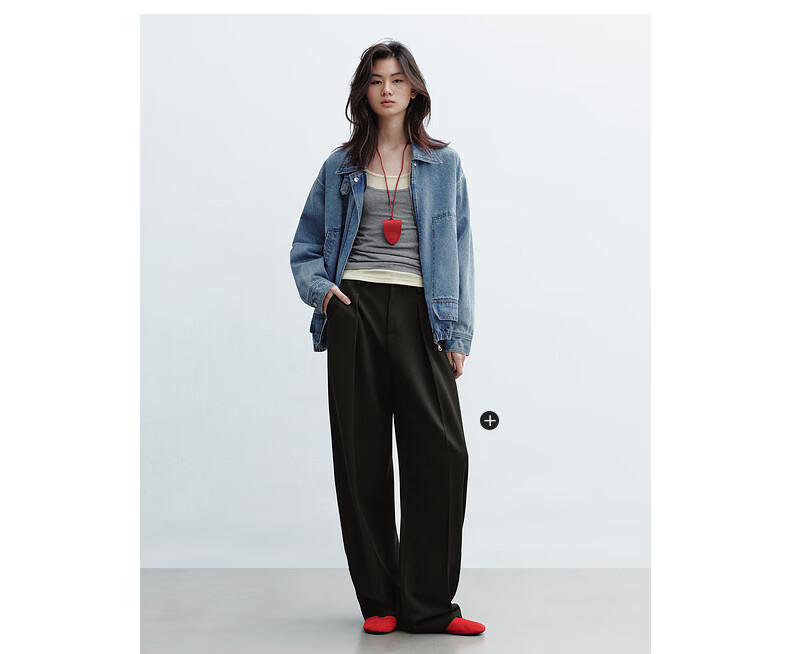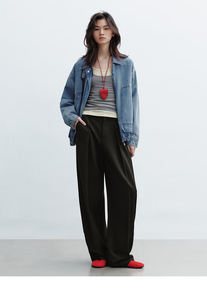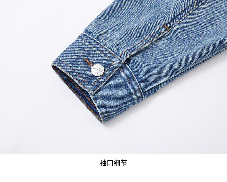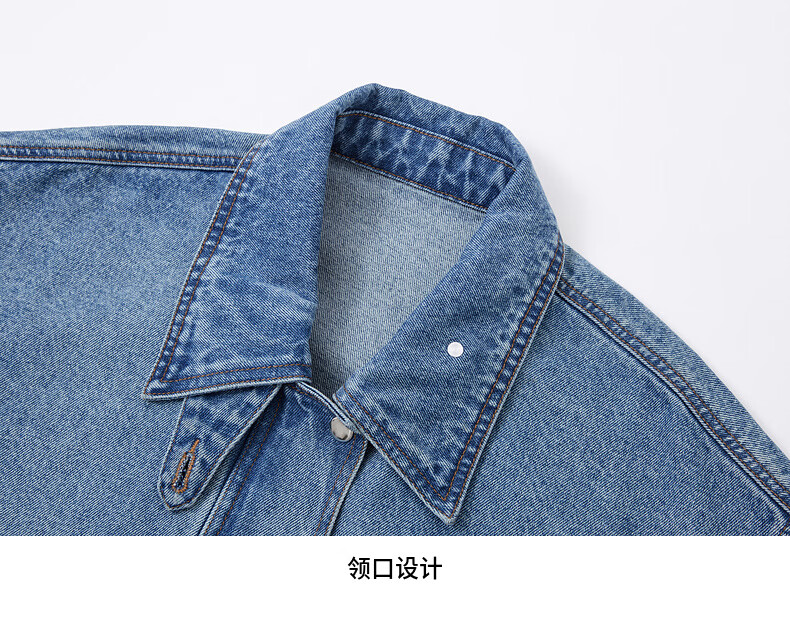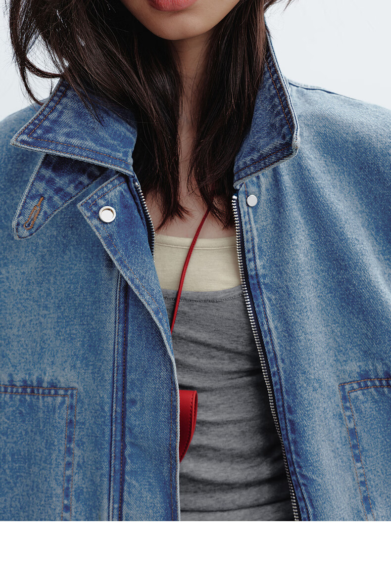 H's纯棉牛仔短外套女26春季新款高级设计宽松廓形双头拉链夹克上衣 牛仔蓝 S