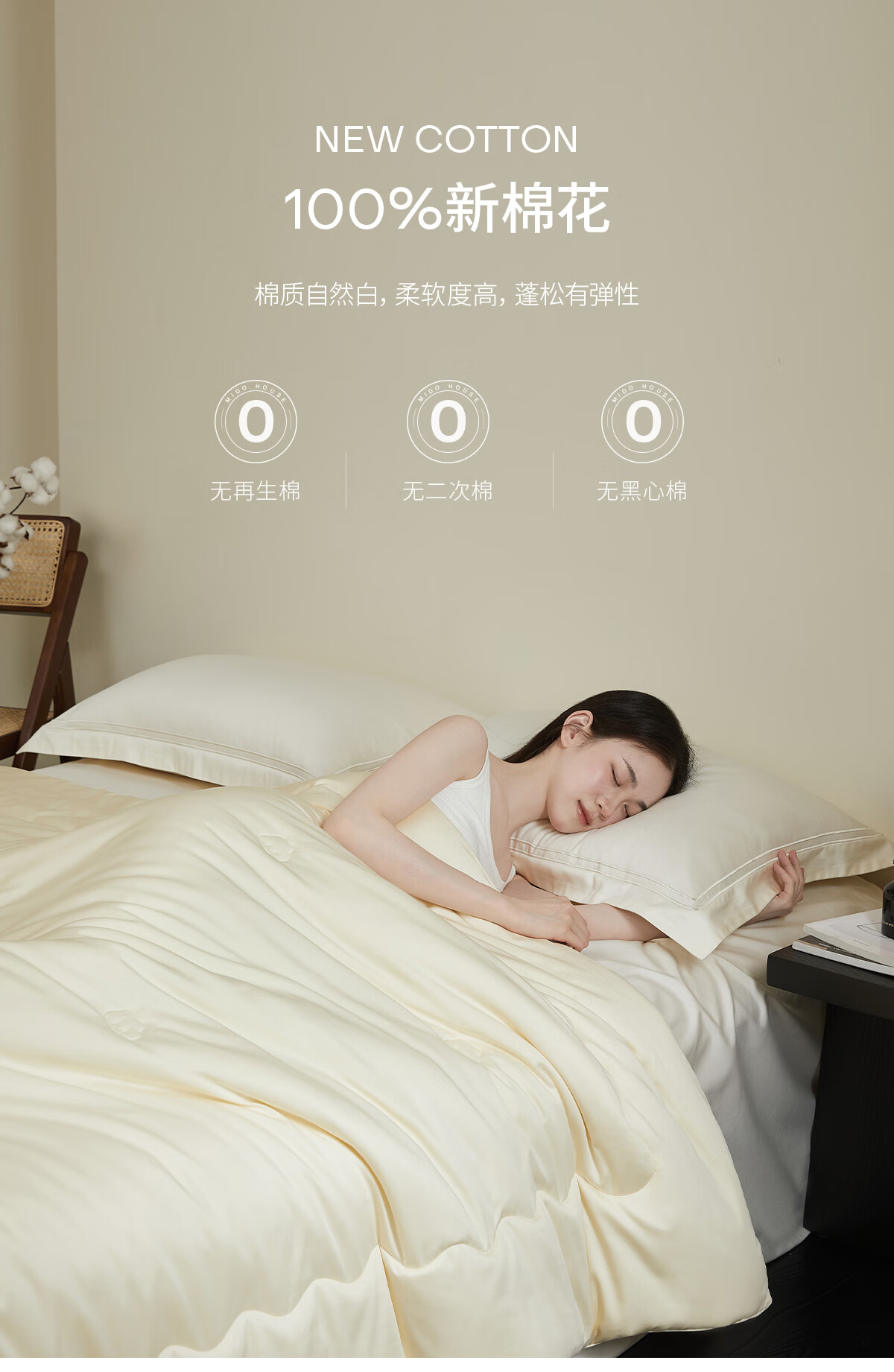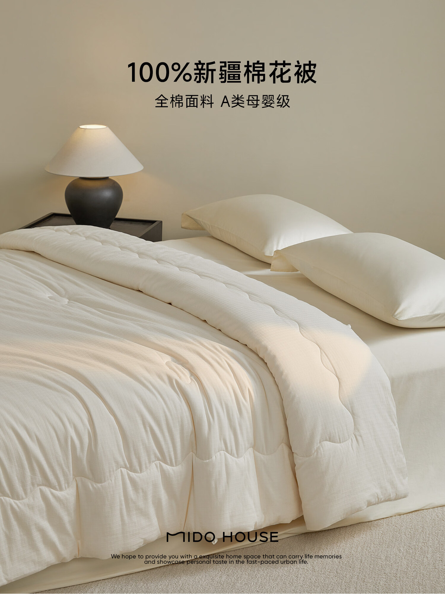 MIDO HOUSE棉被被芯100%纯棉被子冬被保暖新疆棉花被秋冬被天然亲肤棉花被 云柔全棉棉花被-粉玉色 冬被150*200cm【适宜10-17度】