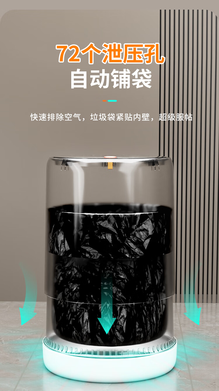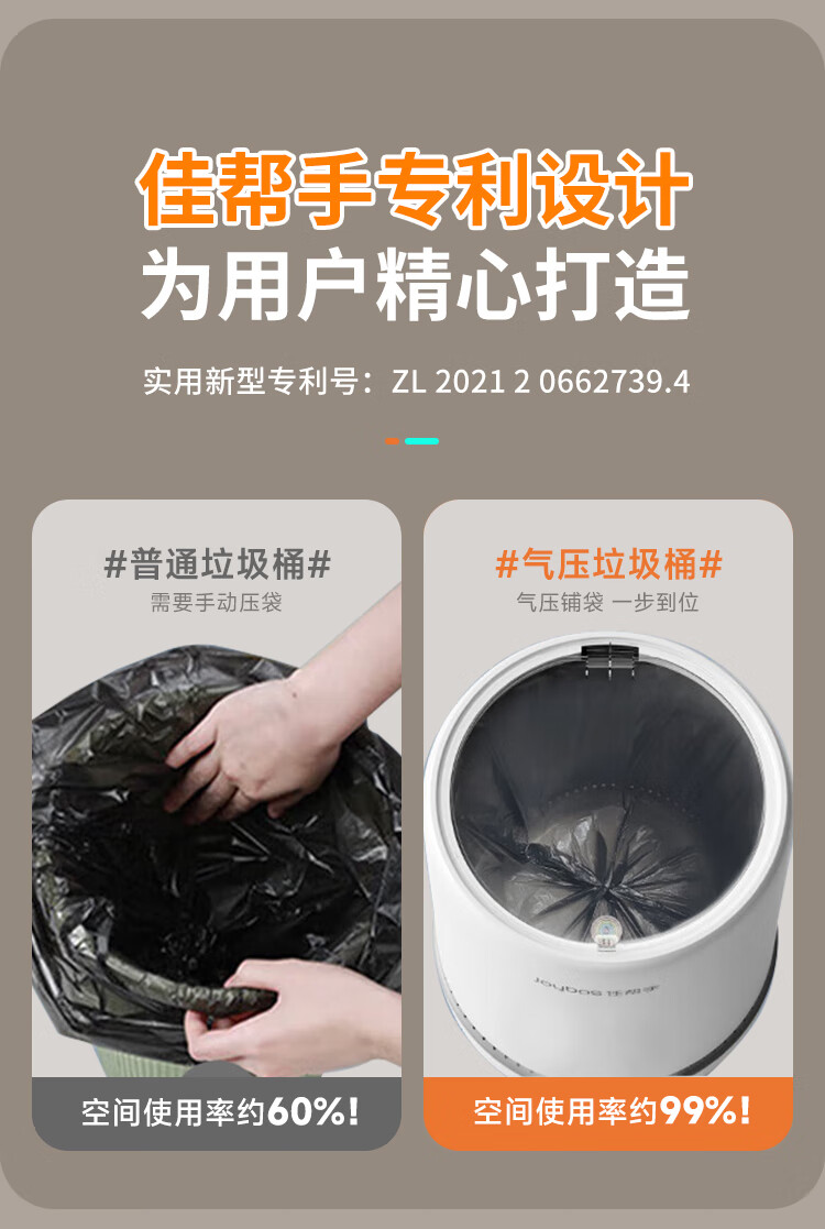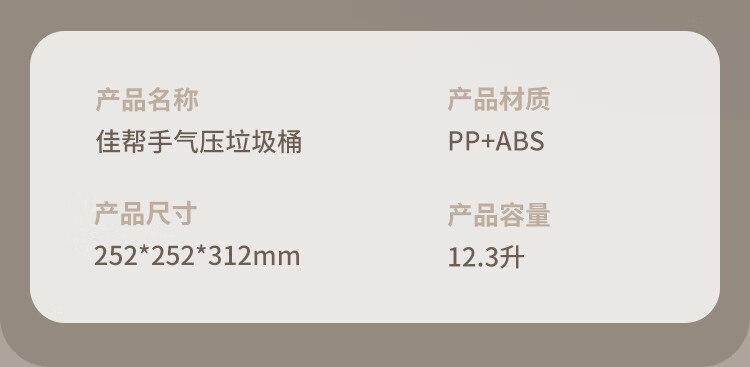 佳帮手垃圾桶12.3L客厅家用网红带盖大号厨房卫生间厕所卧室气压铺袋