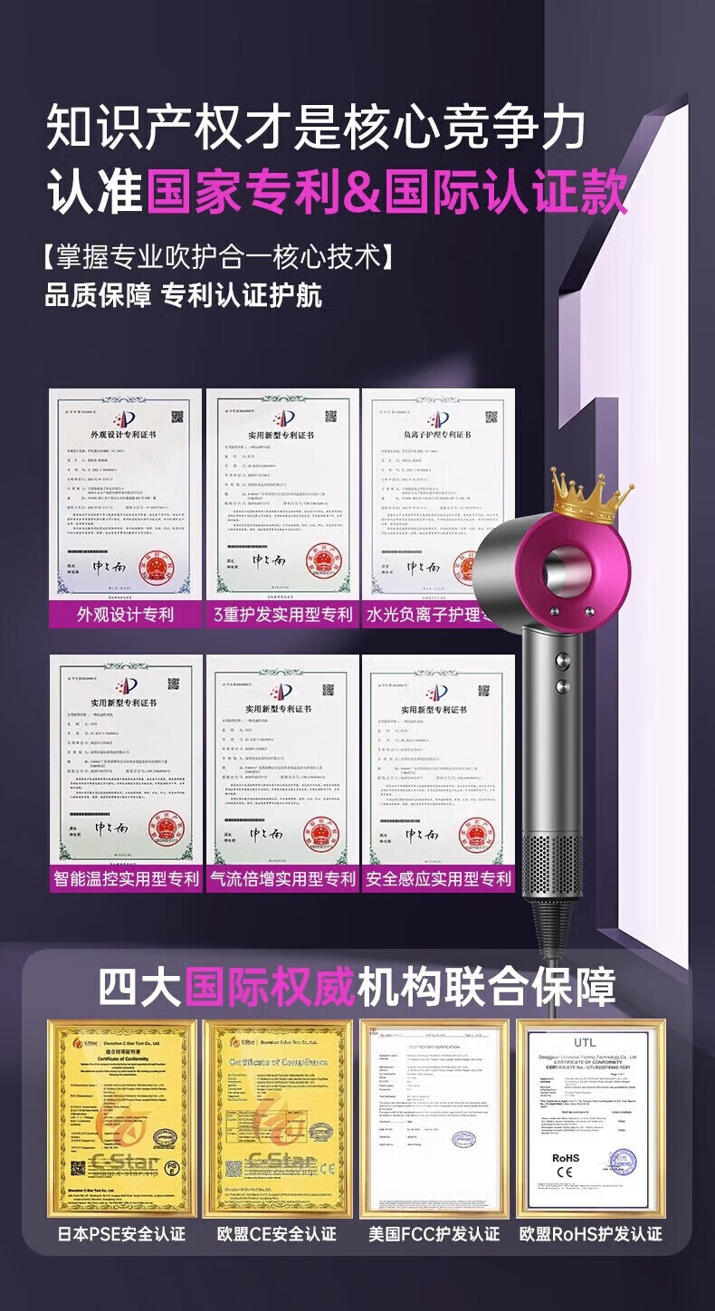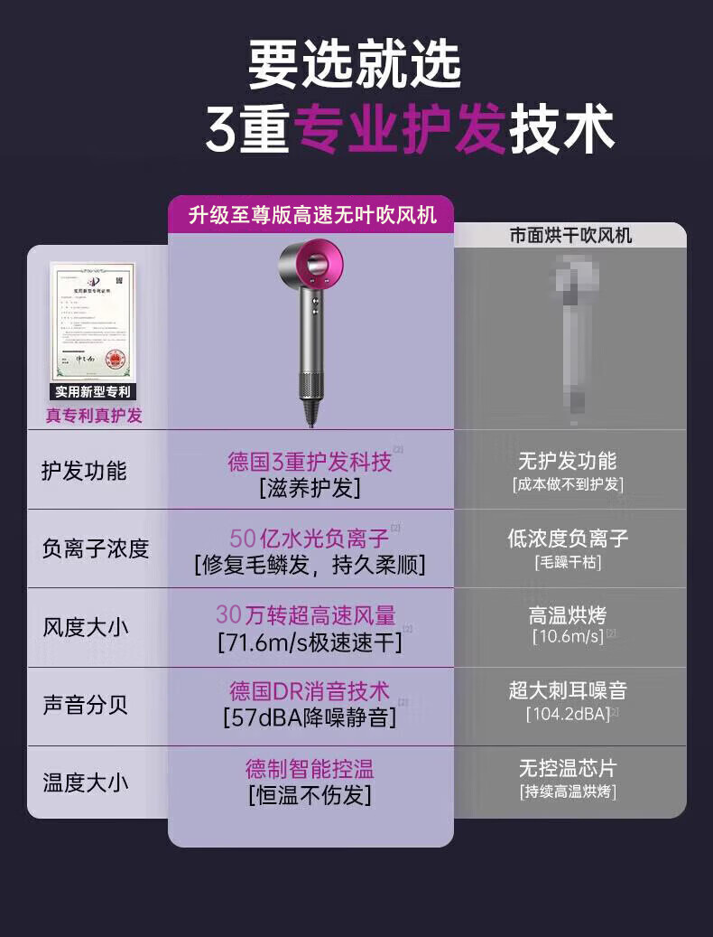 戴森德乐高速无叶吹风机家用负离子大功率不伤发电吹风筒轻音降噪 大风力高效速干护发风筒 男女专用 高级灰-磁吸五风嘴【80亿护发水润离子|中和静电】 【线长1.7米】新款至尊顶配版 | 礼盒装