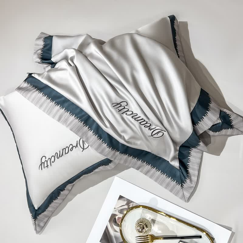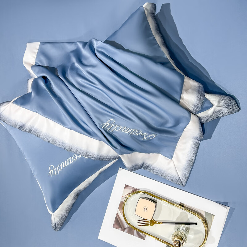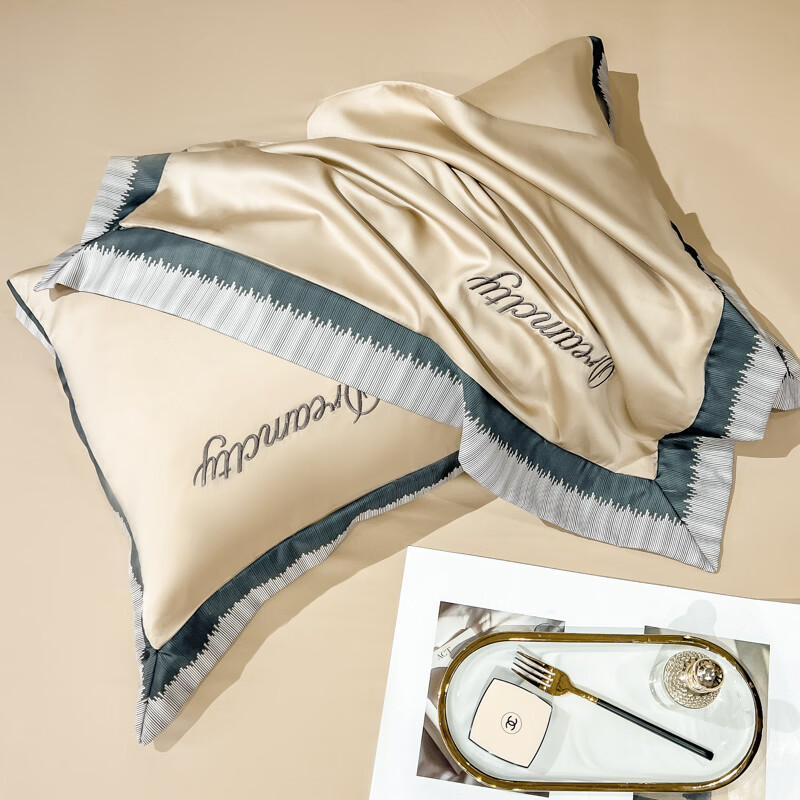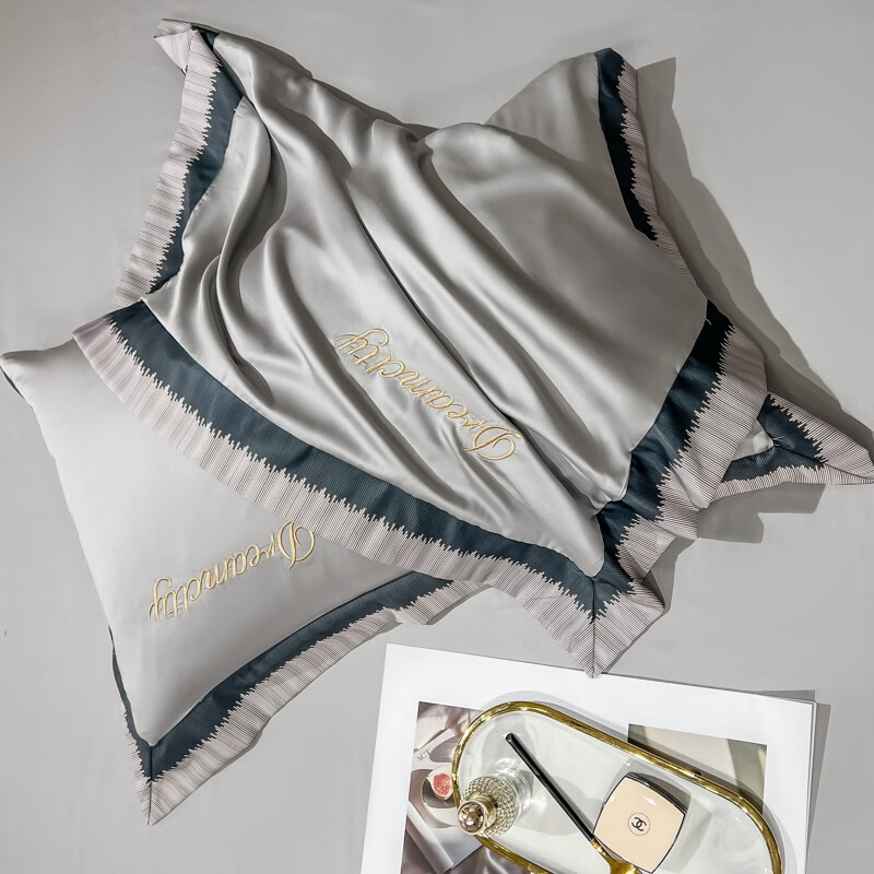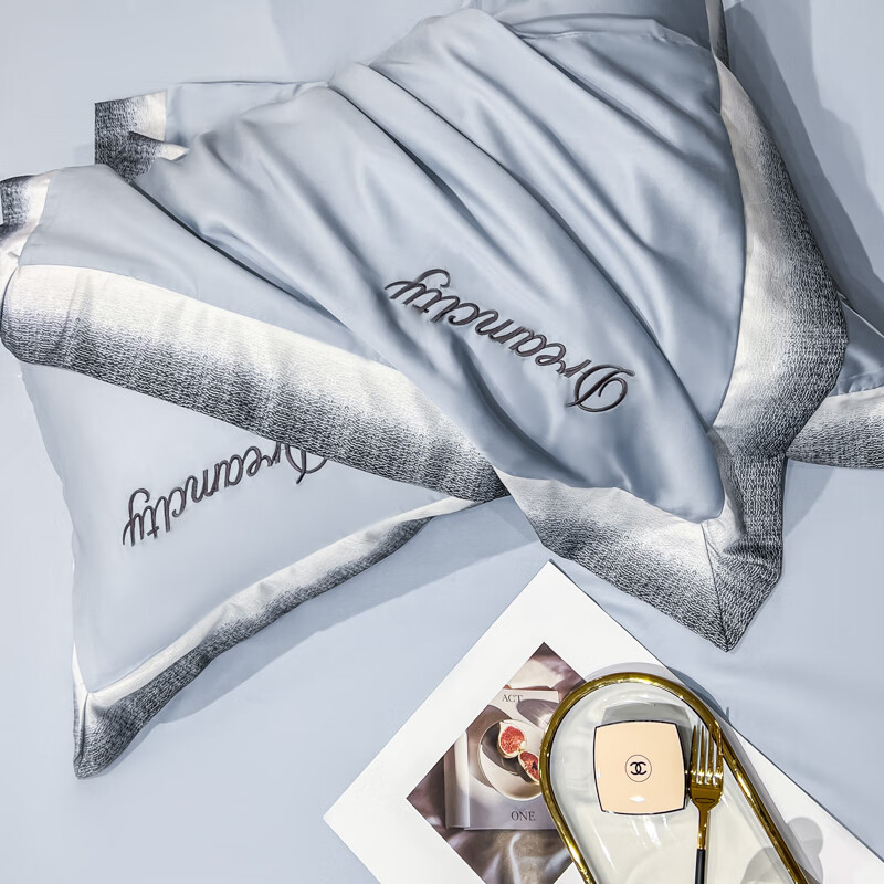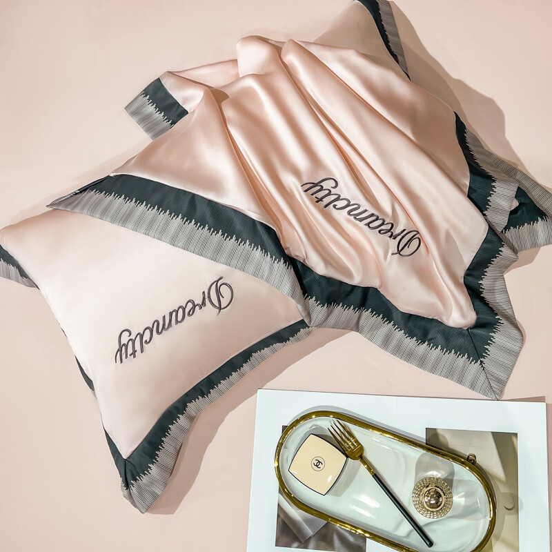 雅鹿水洗真丝拼角刺绣枕套 碧绿青【丝滑舒适 裸睡佳品】 48*74cm枕套一对
