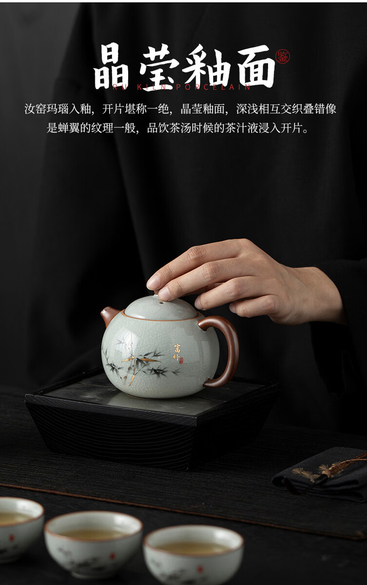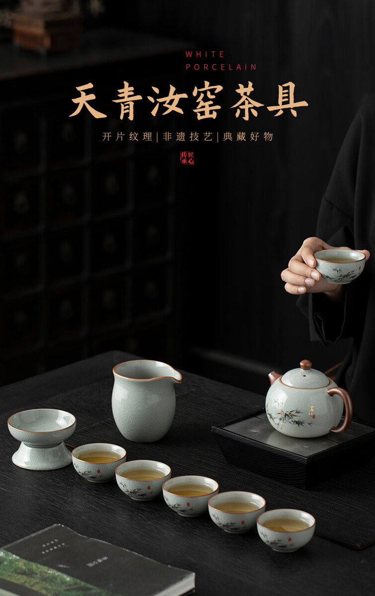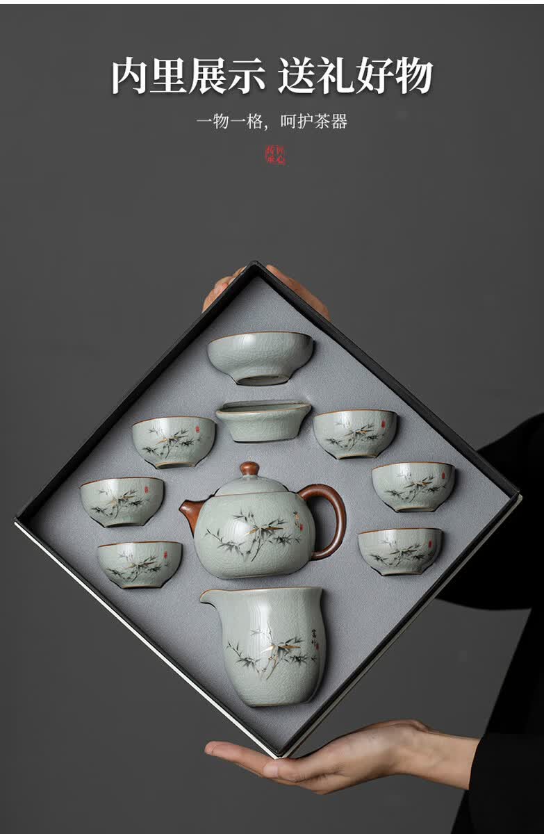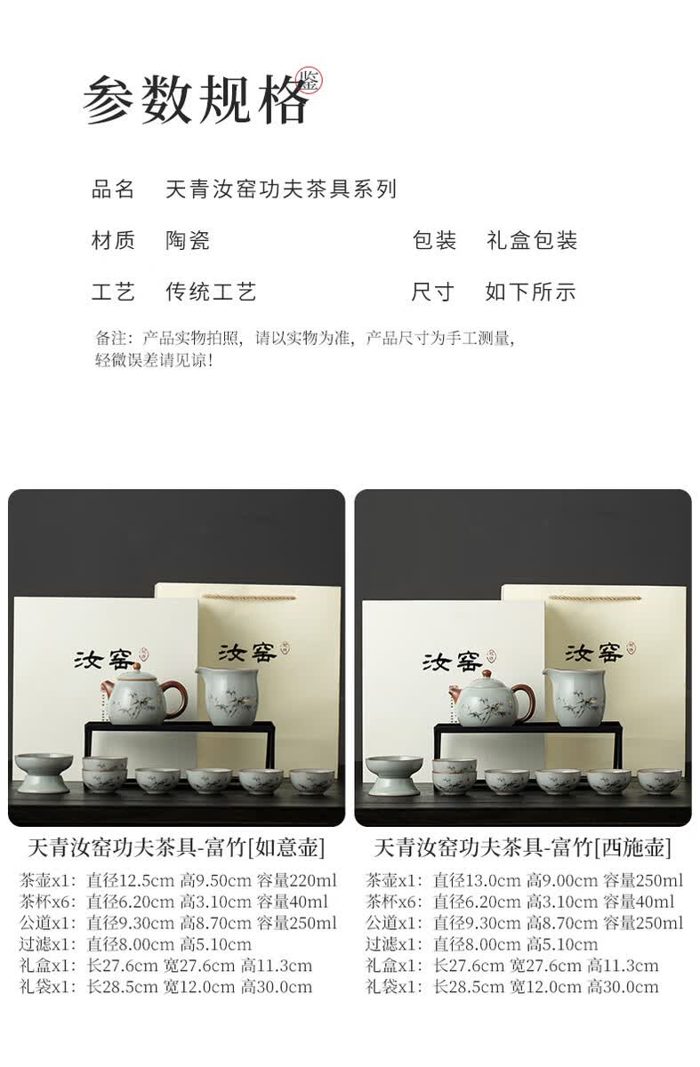 溥畔青花汝窑功夫茶具套装2026新款客厅会客泡茶壶茶杯礼盒装送礼 黄汝汝窑.西施壶10件米白盒