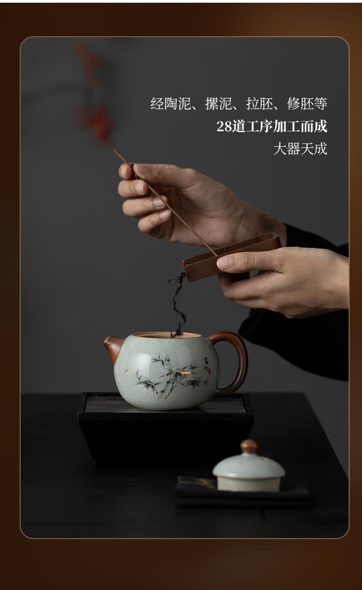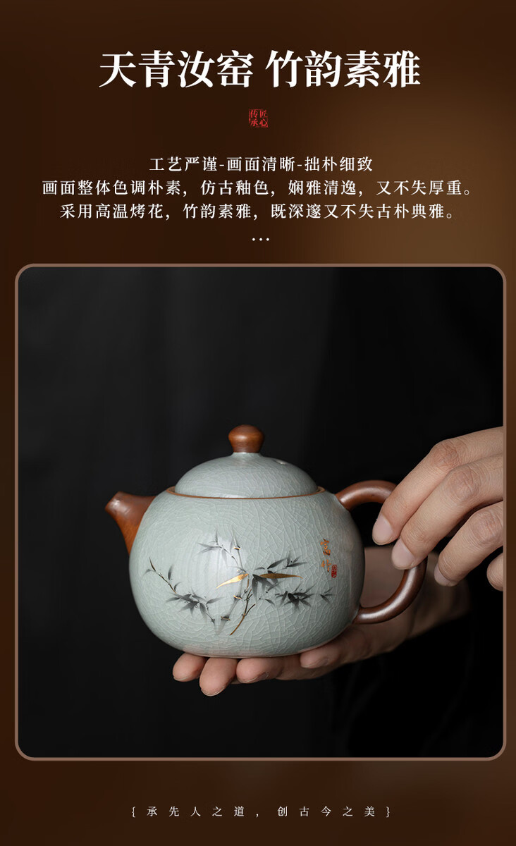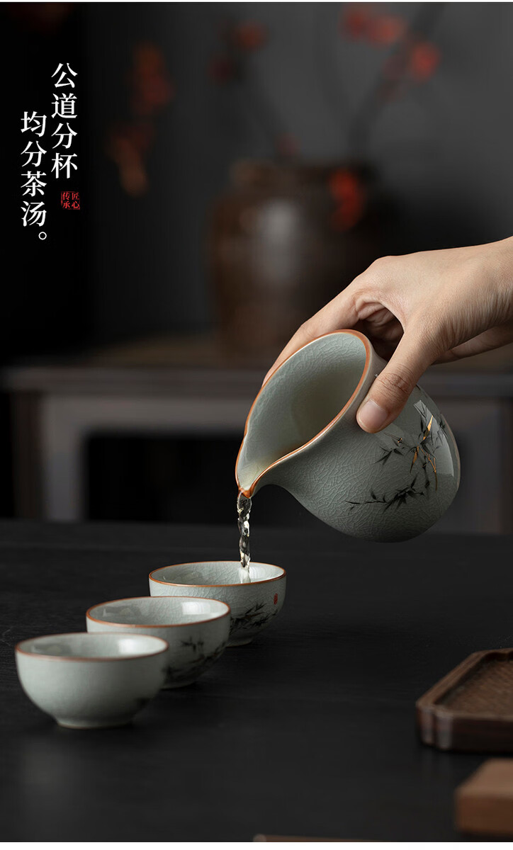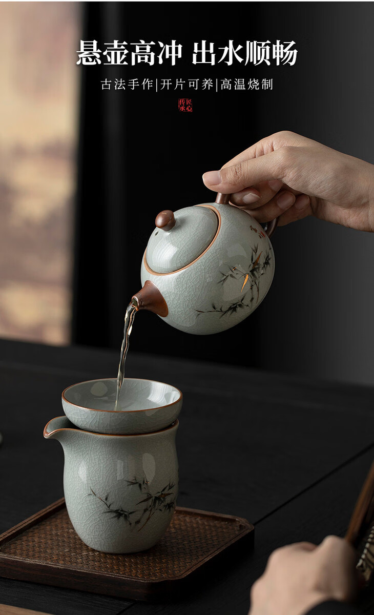 溥畔青花汝窑功夫茶具套装2026新款客厅会客泡茶壶茶杯礼盒装送礼 黄汝汝窑.西施壶10件米白盒